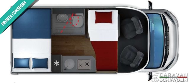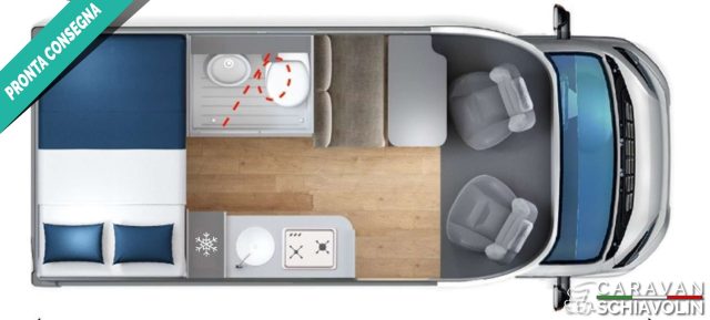 Letto basculante anteriore ? 1.000,00Truma Combi 4000 Diesel ? 610,00PACK PRIVILEGE COMPACT ? 1.500,00 (Paraurti verniciato, fari fendinebbia, Radio con schermo da 6,8' AppleCarPlay e AndroidAuto, Retrocamera HD, Foderine cabina in tessuto coordinato, Porta a 2 punti XL con finestra e chiusura centralizzata)PACK SPORT ? 1.000,00 (Cerchi in lega 16', Volante e pomello cambio in pelle, inserti del volante in alluminio)DI SERIE sui COMPACT STANDARD : Telaio da 35Qli. 140cv, Climatizzatore cabina, Pneumatic M+S 4 Stagioni,Airbag guidatore e passeggero, Esp, Traction Plus, Hill holder, Hill descent, Start & Stop, Cruise control, Predisposizione radio Dab, Specchietti retrovisori elettrici e riscaldati, Cambio manuale 6 marce, Serbatoio acque grigie riscaldato, Comando Truma CP Plus, Gradino esterno elettrico, Attacchi isofix, Cerchi da 15 in acciaio, Porta cellula XL con un punto di chiusura, KIT Oscurante isolante interno cabina, Finestre con telaio a filo carrozzeria, Predisposizione pannello solare, Predisposizione antenna tv digitale/sat, Zanzariera porta cellula, Luce esterna a led, Tapezzeria di serie DANTE e a richiesta senza sovrapprezzo RAFFAELLO e MICHELANGELO. n.b. altro optional a richiesta = Letto supplementare dinette , ,Il camper perfetto per chi cerca maneggevolezza e comfort in meno di 6 metri, , ,offre ambienti ben progettati con letto matrimoniale trasversale posteriore, bagno compatto e ,funzionale ,con la parete specchio lavello che ruota creando un grande ,box doccia, presente anche un grande frigo e una zona giorno pratica e luminosa. La dinette si trasforma in un ulteriore posto letto, mentre il letto basculante anteriore elettrico consente di ospitare comodamente fino a quattro persone. Il garage posteriore, accessibile da entrambi i lati, offre uno spazio di carico sorprendente. , ,CAMPER COMPATTO MADE IN ITALY, SOLO 5.99 MT DI LUNGHEZZA CON LETTO BASCULANTE ANTERIORE ELETTRICO, FRIGORIFERO GRANDE, GARAGE POSTERIORE CON PORTATA 300KG. , ,NOVITA', 2026 , ,IN PRONTA CONSEGNA , , , , , , , , , , , , ,.