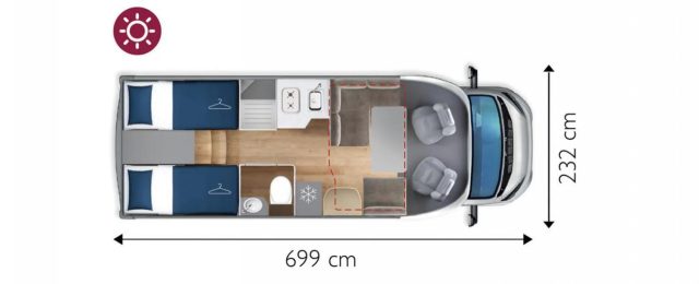 Letto basculante ? 1.000,005° posto omologato e Letto supplementare in dinette ? 458,00Truma Combi 6000 Diesel ? 610,00PACK SECURITY ? 1.464,00 (Cruise control adattativo, Sensore pioggia e luci, Frenata automatica di emergenza con rilevamento pedoni, Segnalazione cartelli stradali e riconoscimento con Intelligent speed assist, Mantenimento linea di corsia, Rilevatore sonnolenza conducente) INCLUSO NELLA VERSIONE PREMIERE EDITION:Cambio automatico 8 marce, Radio 9',', (AppleCarPlay e AndroidAuto) + comandi al volante, Tappezzeria 'Elsa', Duocontrol, Tappeto moquette cellula, Tappeto moquette cabinaPACK PRIVILEGE: Cerchi 16',', in lega + volante in pelle, Radio 6,8',', (AppleCarPlay e AndroidAuto) + comandi al volante, Retrocamera HD, Maxi oblò posteriore 700x500, Finestra elettrica per porta cellula, Stufa Truma Combi 6000 gas, Oscuranti cabina plissettati, Rail garageINOLTRE DI SERIE NELLA VERSIONE TOSCAN:140cv, Climatizzatore cabina manuale, Sospensioni rinforzate bilama posteriori, Pneumatici M+S, 4 stagioni, Airbag guidatore e passeggero, ESP, traction +, Hill holder, Hill descent, Start & Stop, Cruise control, Predisposizione radio DAB, Specchietti retrovisori elettrici e riscaldati, Cambio manuale 6 marce, Serbatoio acque grigie riscaldato, Comando Truma CP + , Luci posteriori a led, Attacchi ISOFIX (non disponibile per 74NF), Cerchi 15',', in acciaio, Porta cellula XL con 2 punti di chiusura, Oscurante cabina standard, Maxi SkiView apribile in vetro a doppia camera, Predisposizione pannello solare, Predisposizione tv digitale/sat, Zanzariera porta cellula, Luce esterna a led, Paraurti verniciato in tinta + fari fendinebbia, Foderine cabina in tinta, Coperchio lavello cucina, Materasso memory foam, Tappezzeria 'Arno' CAMPER SEMINTEGRALE IN VETRORESINA DA 6.99 MT CON 140CV E CAMBIO AUTOMATICO, CON LETTI GEMELLI SOPRA A GRANDE GARAGE E BAGNO E DOCCIA SEPARATINOVITA', 2026 ,IN ARRIVO ,.