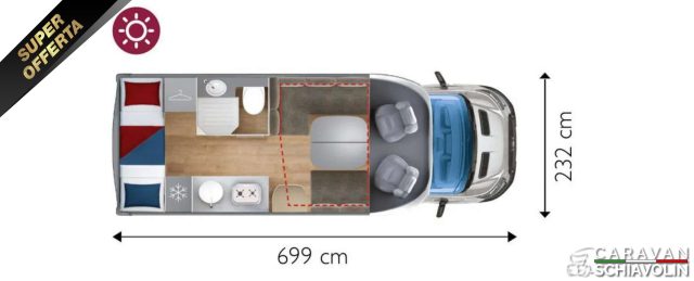6° Posto aggiuntivo omologato e letto supplementare in dinette ? 458,00Porta ingresso 2 punti con finestra e chiusura centralizzata ? 600,00DI SERIE su questo veicolo: Airbag passeggero, Climatizzatore cabina automatico (Ford), Esp, Traction Plus, Hill holder e Hill descent, Start & Stop, Cruise control, Cerchi in acciaio da 15 (Stellantis), Cerchi da 16 in acciaio (Ford), Radio 12' con Apple Carplay e Android Auto(Ford), Predisposizione radio con comandi al volante, Volante in pelle (Ford), Sensori parcheggio anteriori (Ford), Drl led (Ford), Freno a mano elettrico(Ford), Sospensioni rinforzate (Stellantis) Fendinebbia, Paraurti verniciato in tinta, Maxi oblò skyview (su semintegrali), Porta cellula xl, Retrocamera, Foderine cabina in tinta, Serbatoio acque grigie riscaldato, Zanzariera porta cellula, Luce esterna a led, Comando Truma CP Plus con pred. I-Net, Rear style con fari a led, Attacchi isofix (non disponibili con dinette face to face) CAMPER SEMINTEGRALE CON LETTI A CASTELLO IN CODA, LETTO BASCULANTE MATRIMONIALE SOPRA DINETTE, 6 POSTI OMOLOGATI, IDEALE PER FAMIGLIE ITINERANTIIN PRONTA CONSEGNAIN OFFERTA ,.