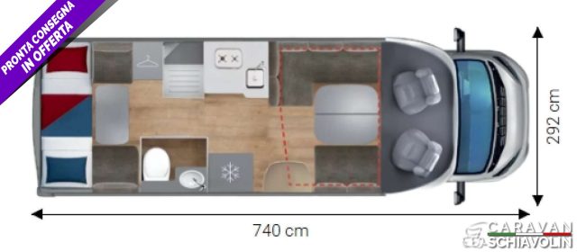 Letto basculante elettrico ? 0,005° posto omologato e Letto supplementare in dinette ? 0,00Truma Combi 4000 Diesel ? 610,00PACK PRIVILEGE ? 1.500,00 (Paraurti verniciato, Fari fendinebbia, Porta a 2 punti XL con chiusura centralizzata, Radio 6,8' Apple Car Play e Android auto, Comandi radio al volante, Retrocamera HD, Foderine cabina in tessuto coordinato)PACK SPORT ? 1.000,00 (Cerchi in lega 16' bicolore, Volante e pomello cambio in pelle e Inserti al volante in alluminio) INOLTRE DI SERIE sui SIENA : Telaio da 35Qli. 140cv, Climatizzatore cabina, Sospensioni rinforzate bilama posteriori, Pneumatic M+S 4 Stagioni,Airbag guidatore e passeggero, Esp, Traction Plus, Hill holder, Hill descent, Start & Stop, Cruise control, Predisposizione radio Dab, Specchietti retrovisori elettrici e riscaldati, Cambio manuale 6 marce, Serbatoio acque grigie riscaldato, Comando Truma CP Plus, Luci posteriori a Led, Attacchi isofix (non disponibili con dinette face to face) Cerchi da 15 in acciaio, Porta cellula XL con un punto di chiusura, Oscurante isolante interno cabina, Maxi oblò sky View (solo profilati), Predisposizione pannello solare, Predisposizione antenna tv digitale/sat, Zanzariera porta cellula, Luce esterna a led, Tapezzeria Giglio e Pianosa, Letto elettrico anteriose (di serie solo 350e 396) CAMPER SEMINTEGRALE IN VETRORESINA CON LETTI GEMELLI POSTERIORI ,FRIGO GRANDE GRANDE SOGGIORNO E LETTO MATRIMONIALE ELETTRICO A SCOMPARSA E BAGNO E DOCCIA SEPARATI ,DI SERIE ATTACCHI ISOFIX SU SEDUTE DINETTENOVITA', 2026IN PRONTA CONSEGNA.