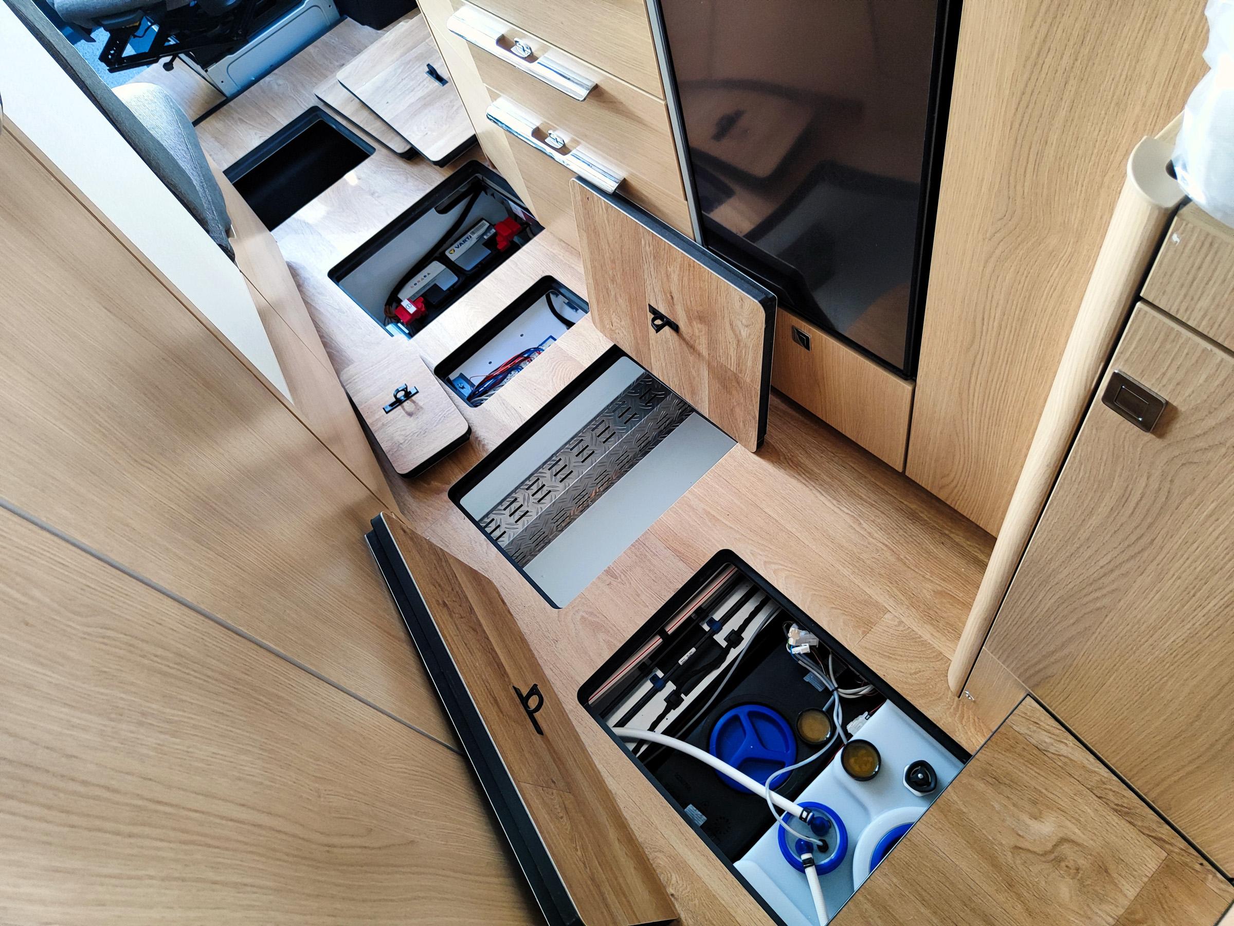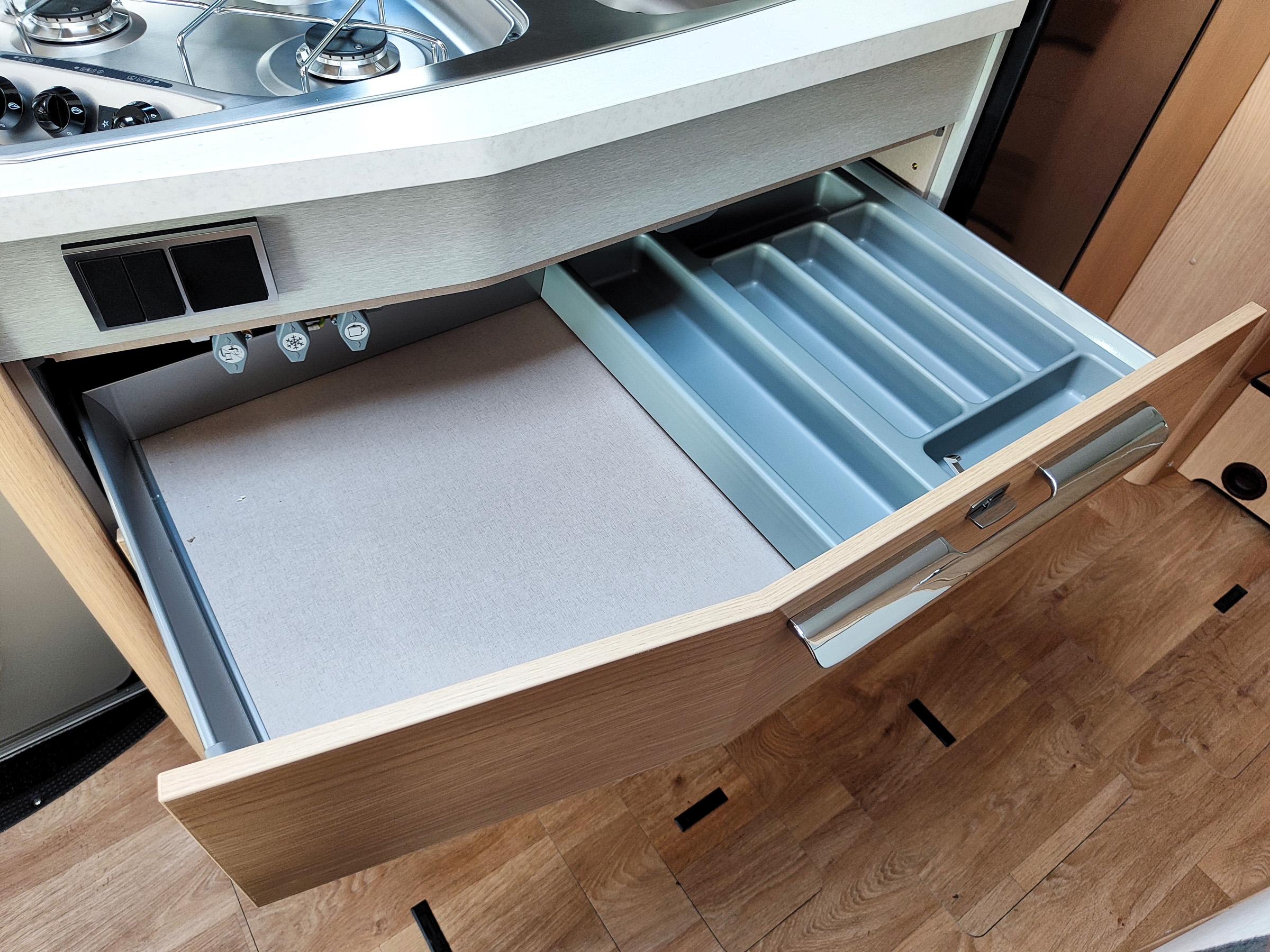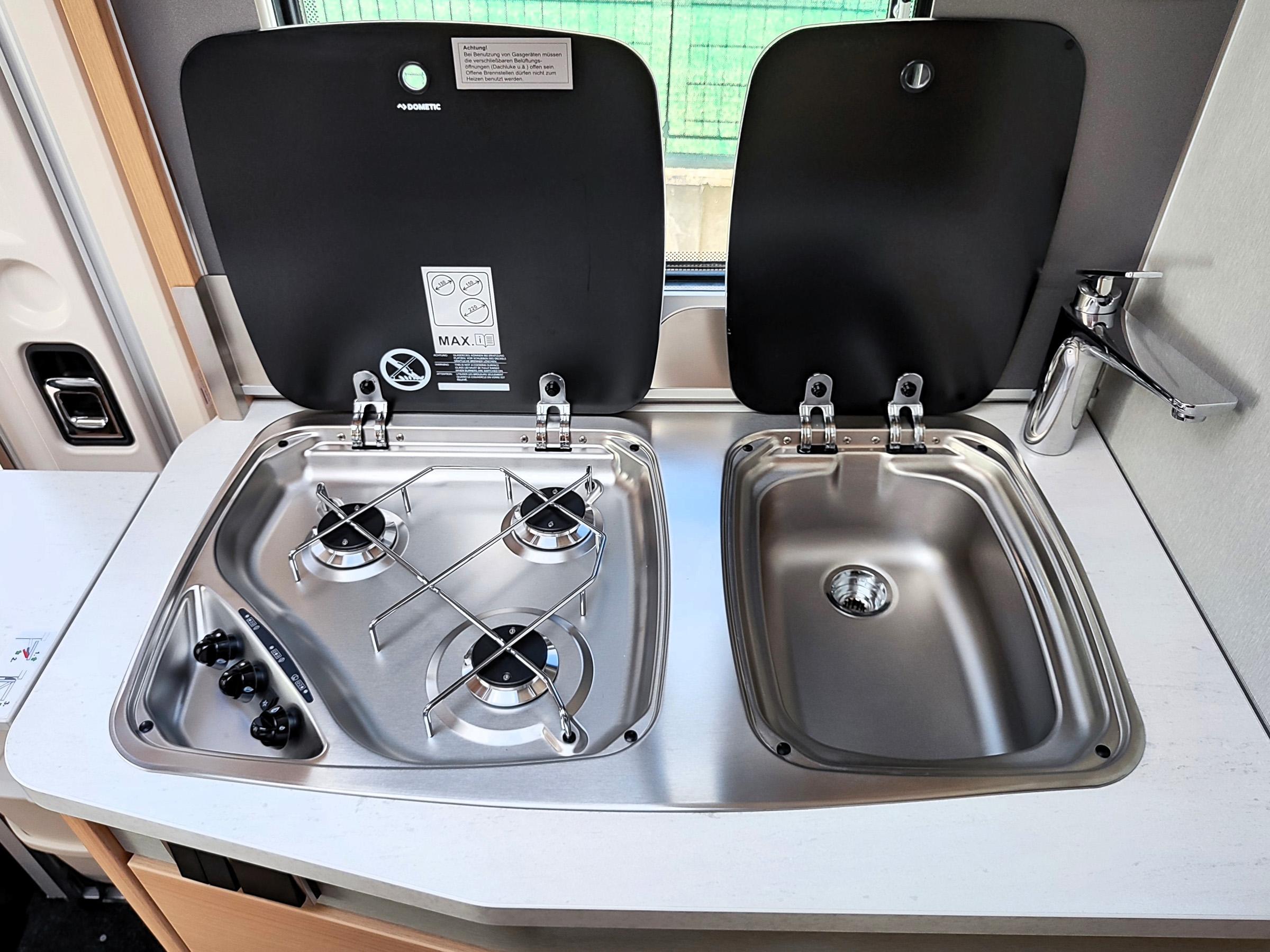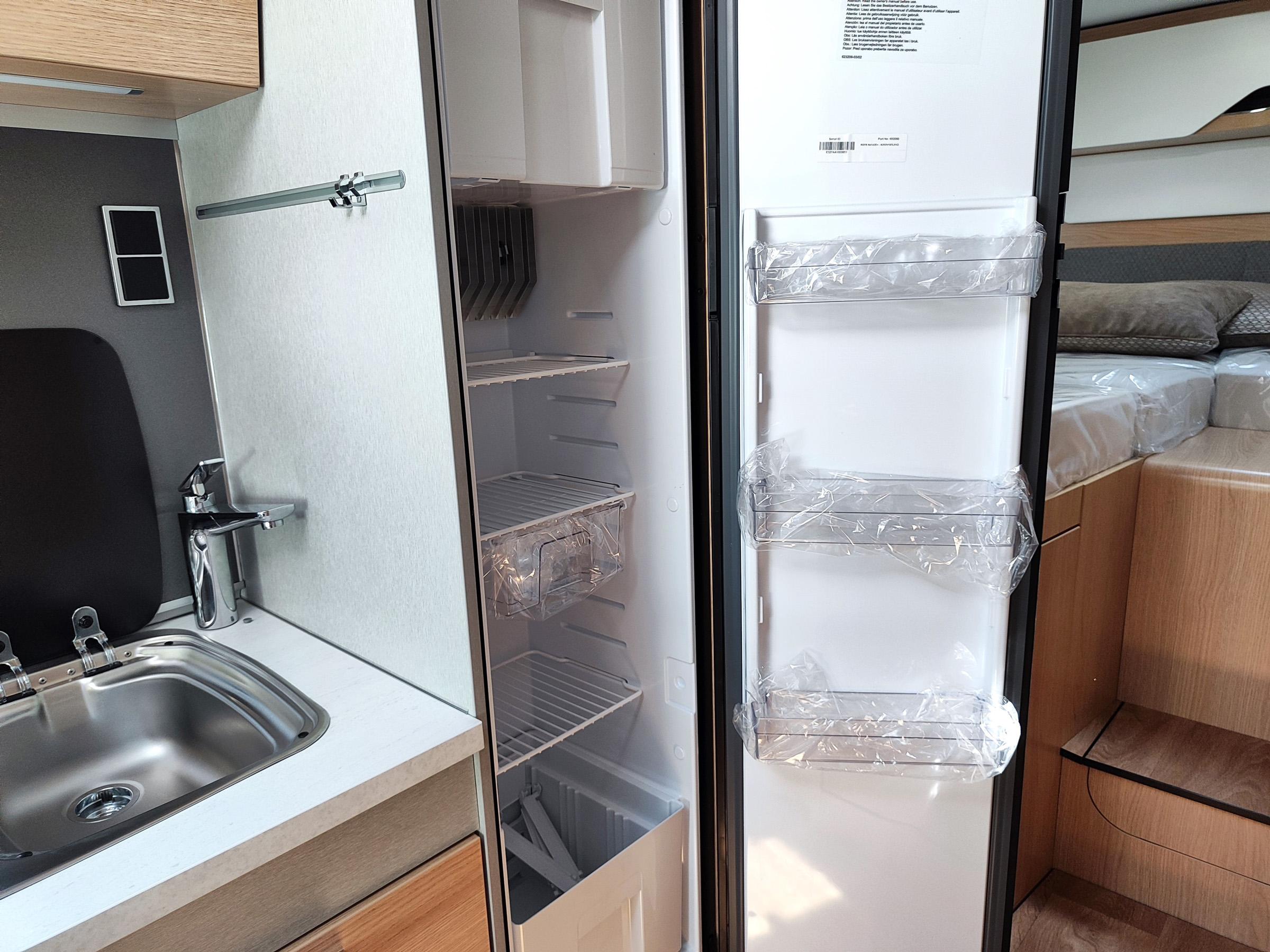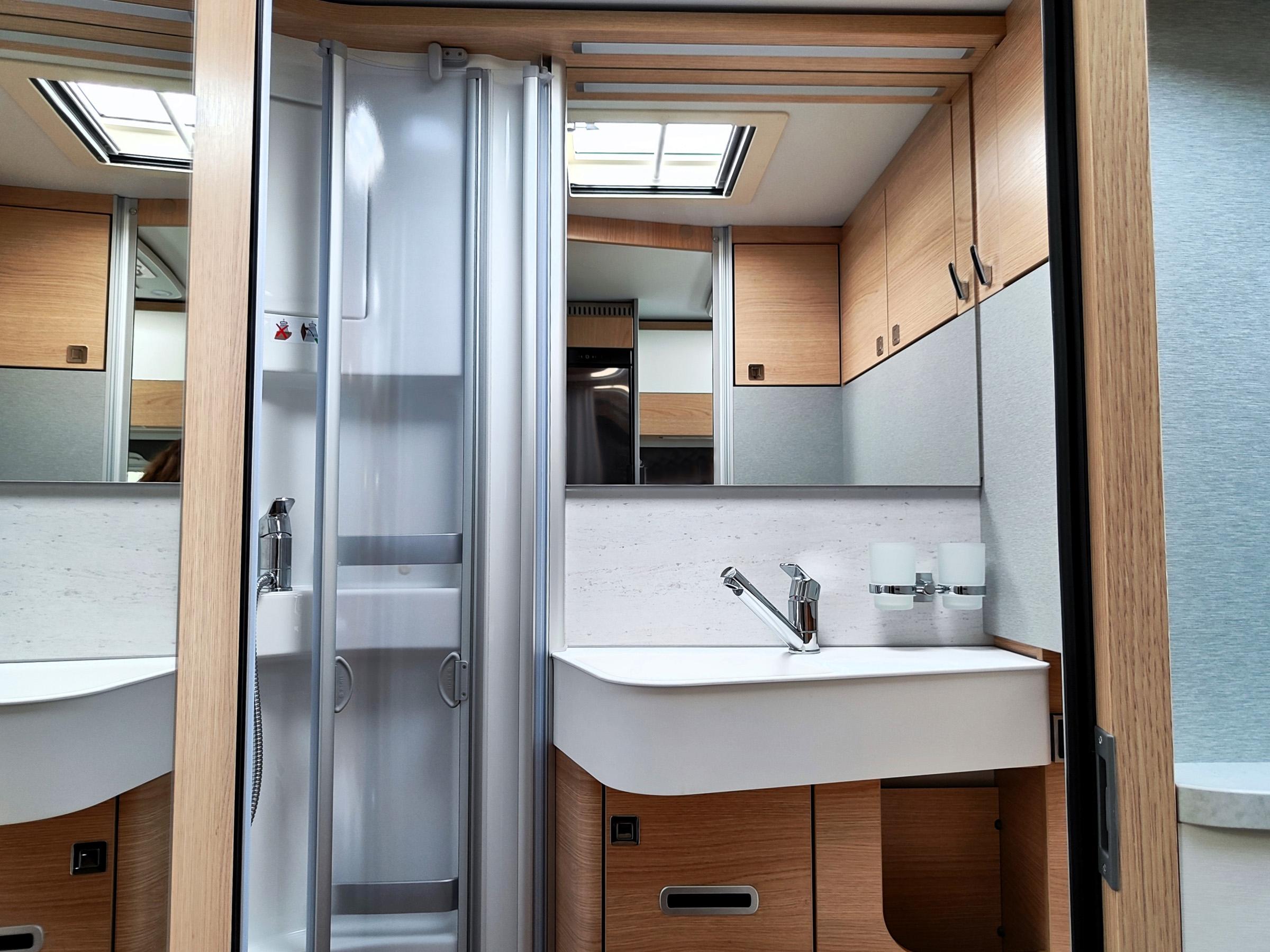 Camper nuovo con letti gemelli e dinette a L trasformabile in letto aggiuntivo. Garage con doppie porte. Su Mercedes-Benz 170 CV, con cambio automatico.