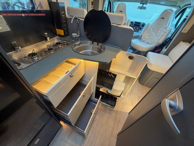 Cambio Manuale PREZZO CHIAVI IN MANO - Pacchetto Chassis - Pacchetto Confort - Letto Basculante Elettrico Sopra il Soggiorno - Trasformazione Letti Gemelli in Matrimoniale - Cerchi in Lega 16' - Oscuranti Plissettati in Cabina - Volante e Pomello del Cambio in Pelle - Tappezzeria Ecopelle Firenze - Cuscini Decorativi Aggiuntivi in Ecopelle Firenze - Predisposizione Pannello Solare - Predisposizione Retrocamera - Pedana in Legno per la Doccia