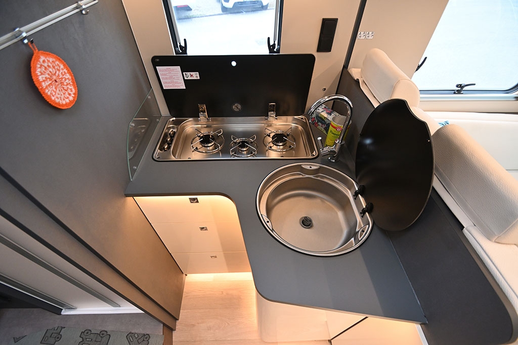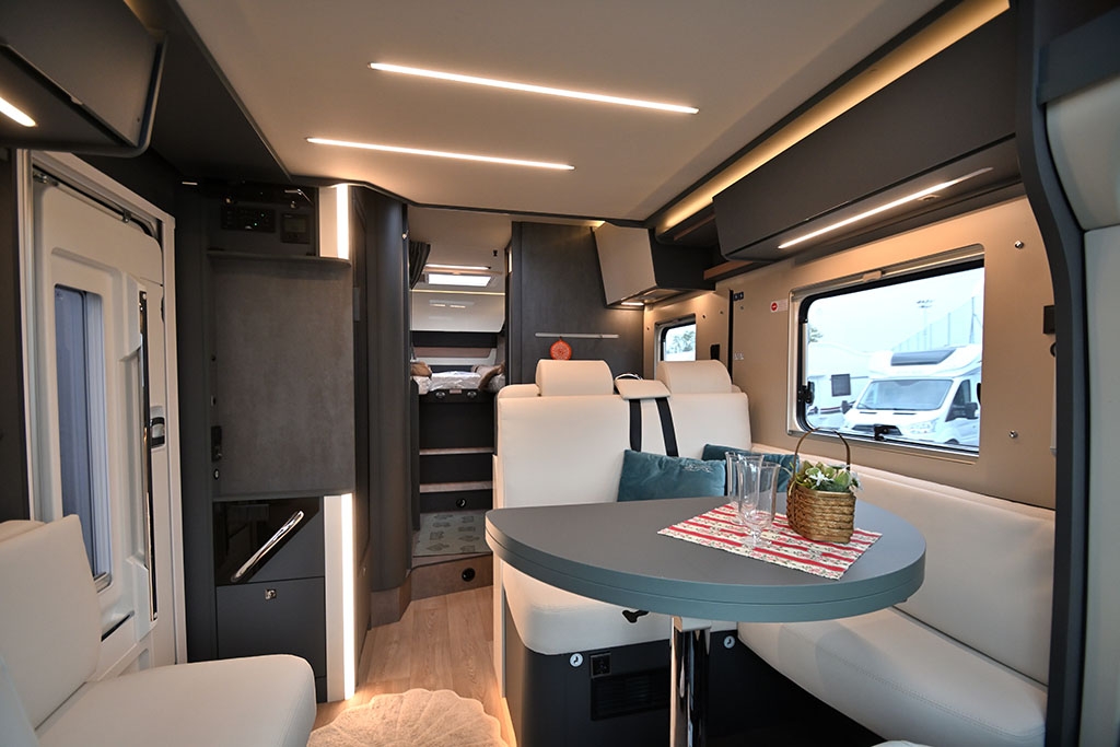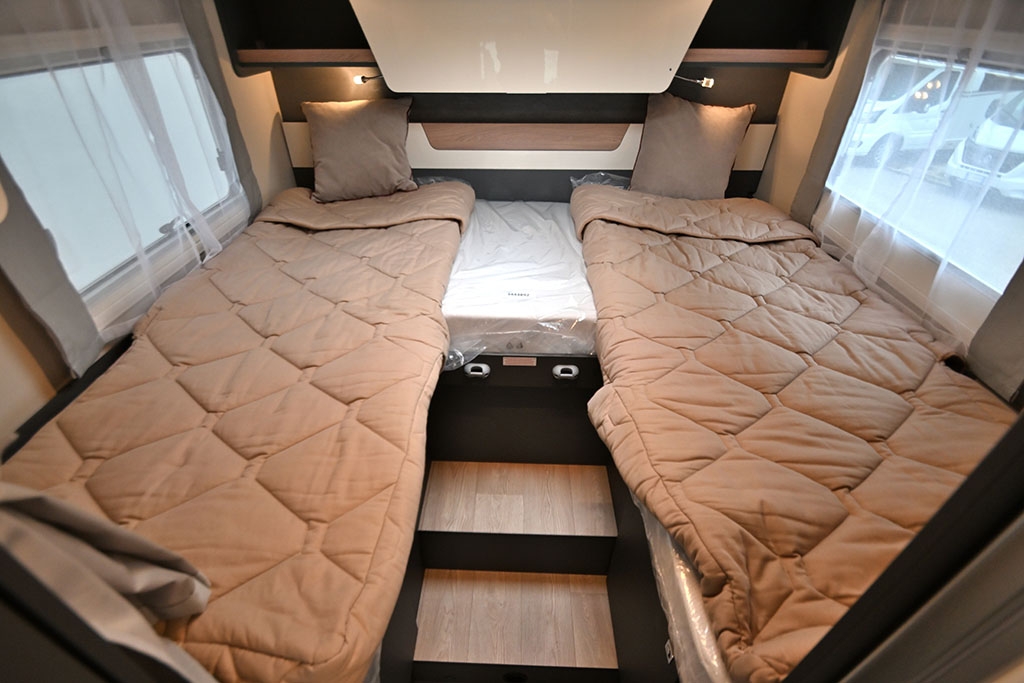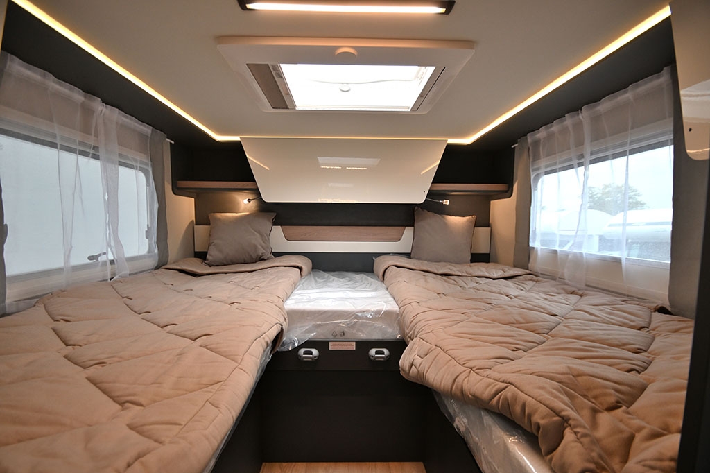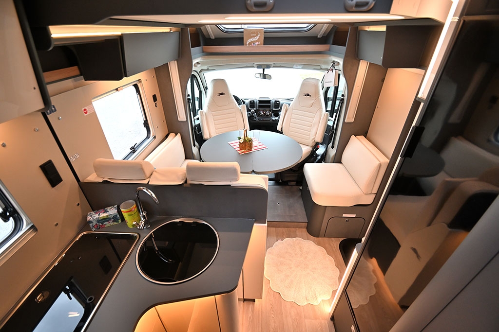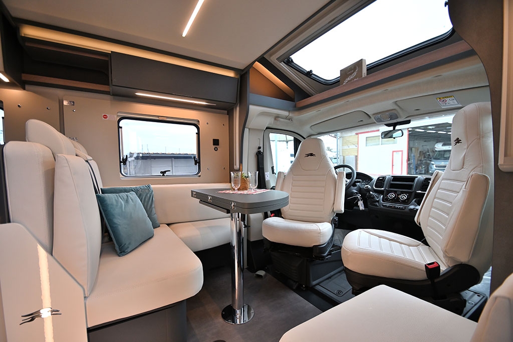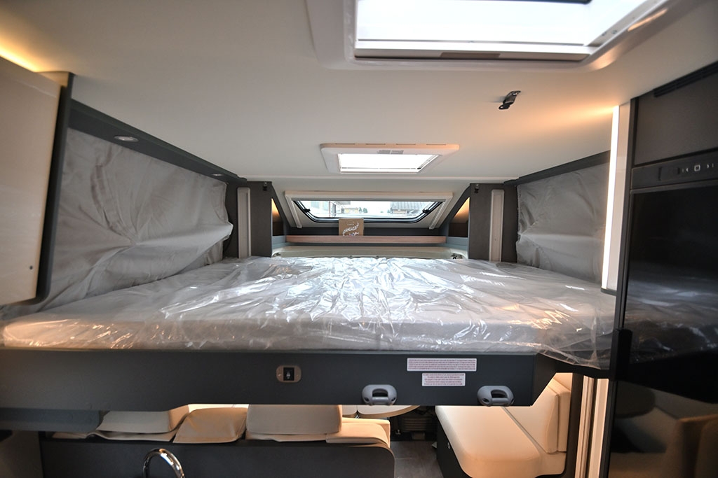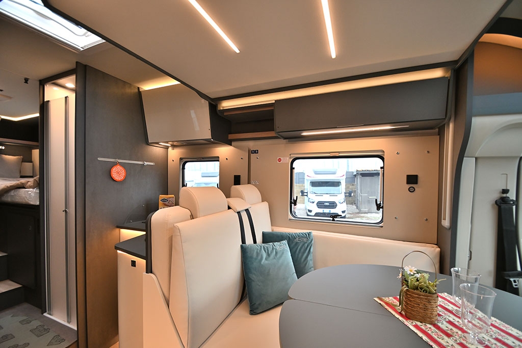 ESC, ASR, Hill Holder, Traction+, Hill Descent Control, Crosswind Assist, Climatizzatore manuale in cabina, Cruise Control, Airbag passeggero, Specchietti retrovisori elettrici e riscaldabili, Eco Pack con Start&Stop, Cerchi in lega da 16, Volante e pomello del cambio rivestiti in pelle, Comandi radio al volante, Pack One (Porta cellula XL con finestra, zanzariera e chiusura centralizzata, sky-roof nel cupolino anteriore, letto basculante matrimoniale elettrico, cappa aspirante in cucina, serbatoio di recupero riscaldato, oscuranti plissettati in cabina, pedana in legno a protezione del piatto doccia, oblò panoramico in camera da letto, fodere sedili cabina in coordinato con tappezzeria, predisposizione retrocamera, predisposizione pannello solare, moquette in cabina di guida, cestelli e portabottiglie estraibili in cucina)