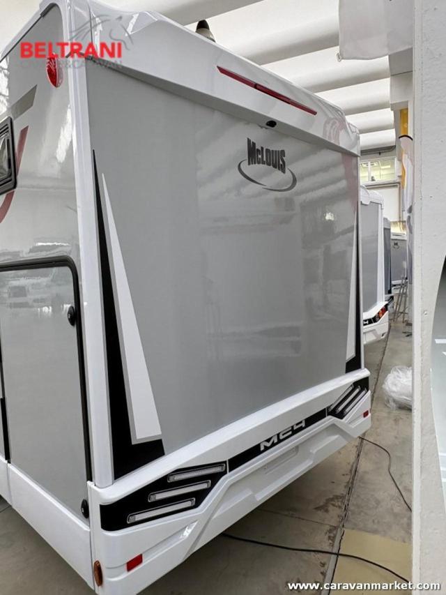 Il McLouis MC4 860 2026 è un semintegrale sotto i 7 metri che unisce comodità, design moderno e ampia praticità. La disposizione interna offre una dinette living capiente e luminosa, con sedili cabina girevoli e tavolo centrale regolabile: un vero salotto su ruote. Nella zona posteriore trovi un ampio letto matrimoniale trasversale, comodo e ben accessibile, mentre il letto basculante elettrico anteriore permette di ricavare altri posti letto senza rinunciare allo spazio abitativo.