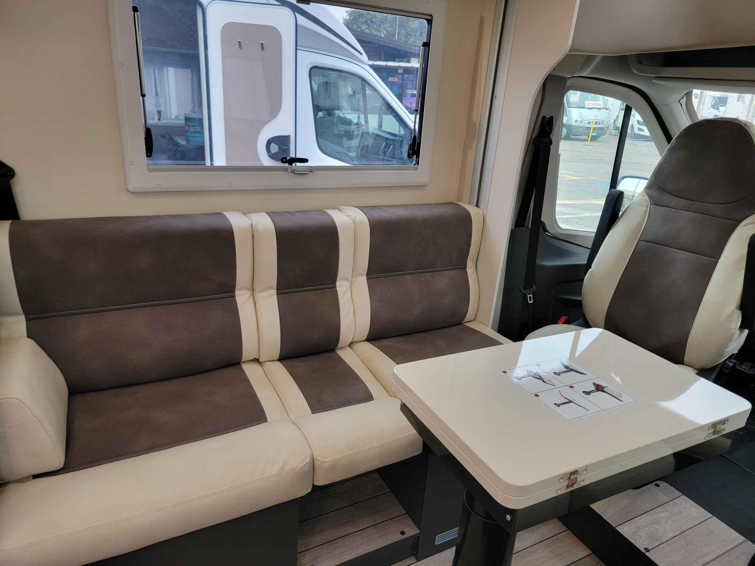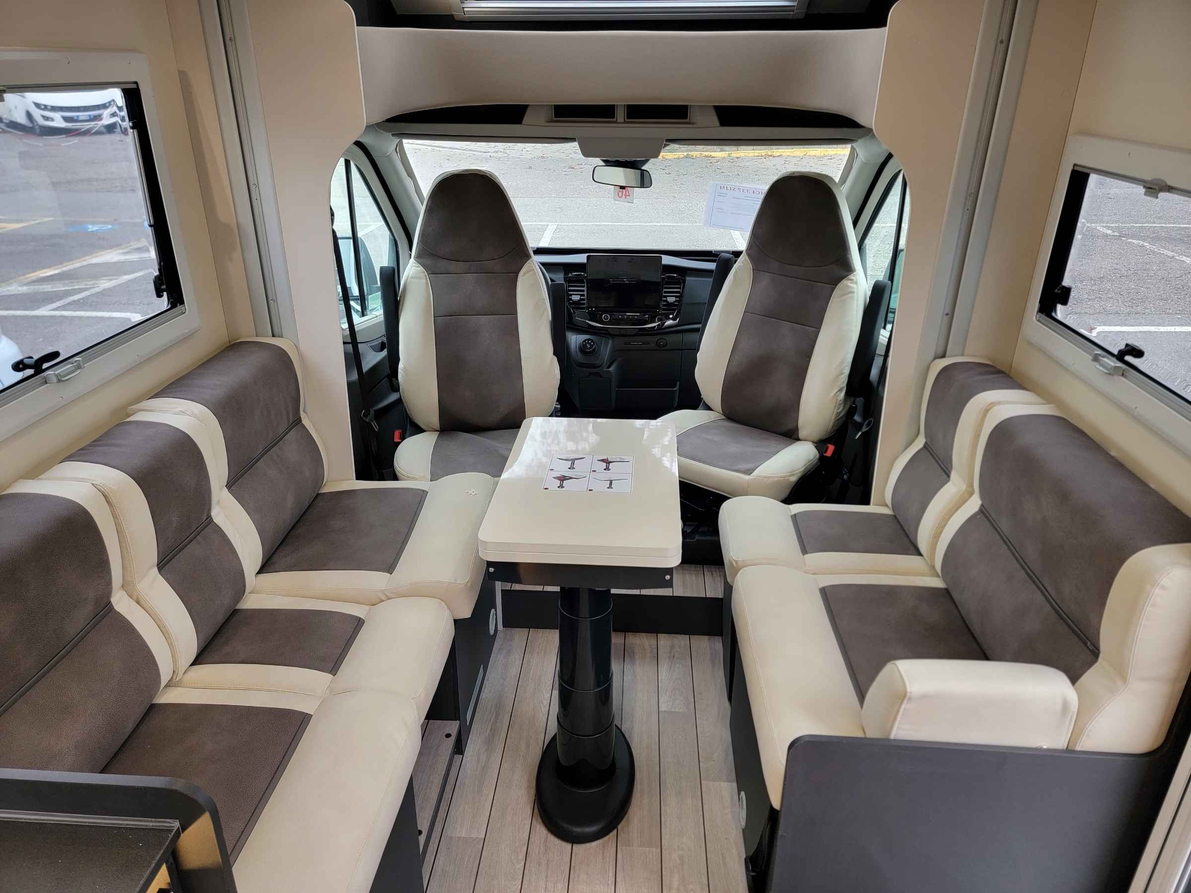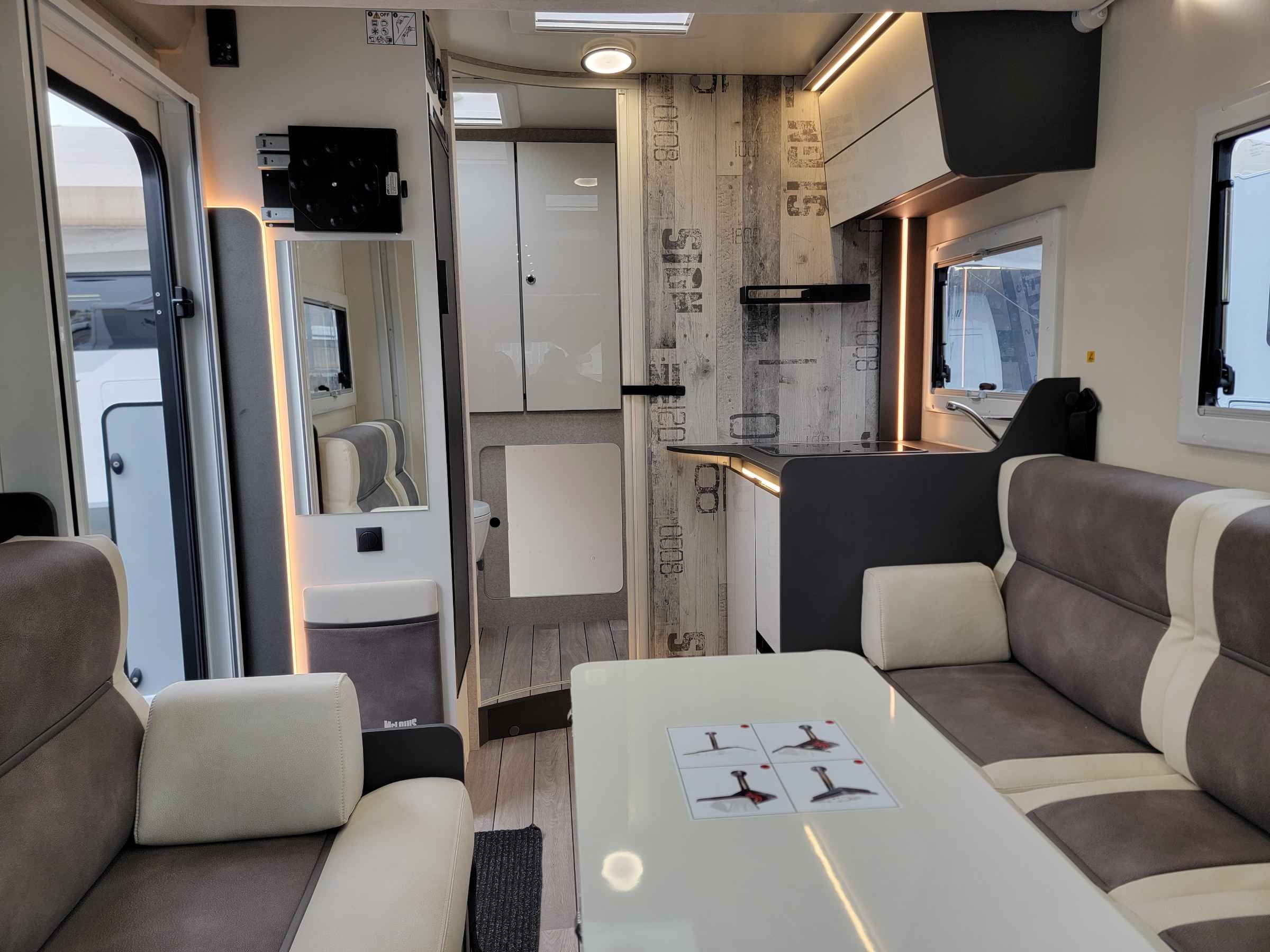 Semintegrale con letto basculante, ampia dinette face to face, bagno posteriore e armadio in coda. Dimensioni compatte: largo solo 2,15 m, con lunghezza e altezza ridotte. Letto basculante matrimoniale 190 cm di serie.