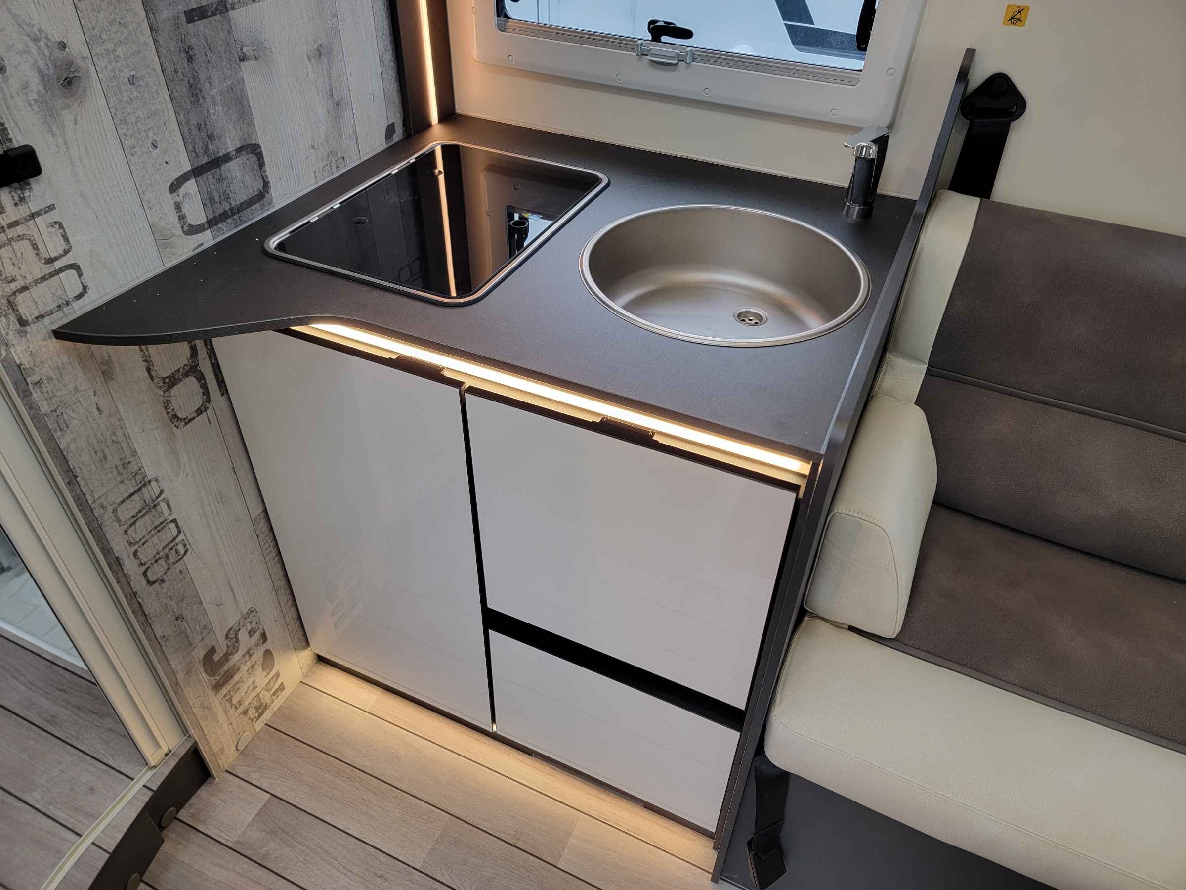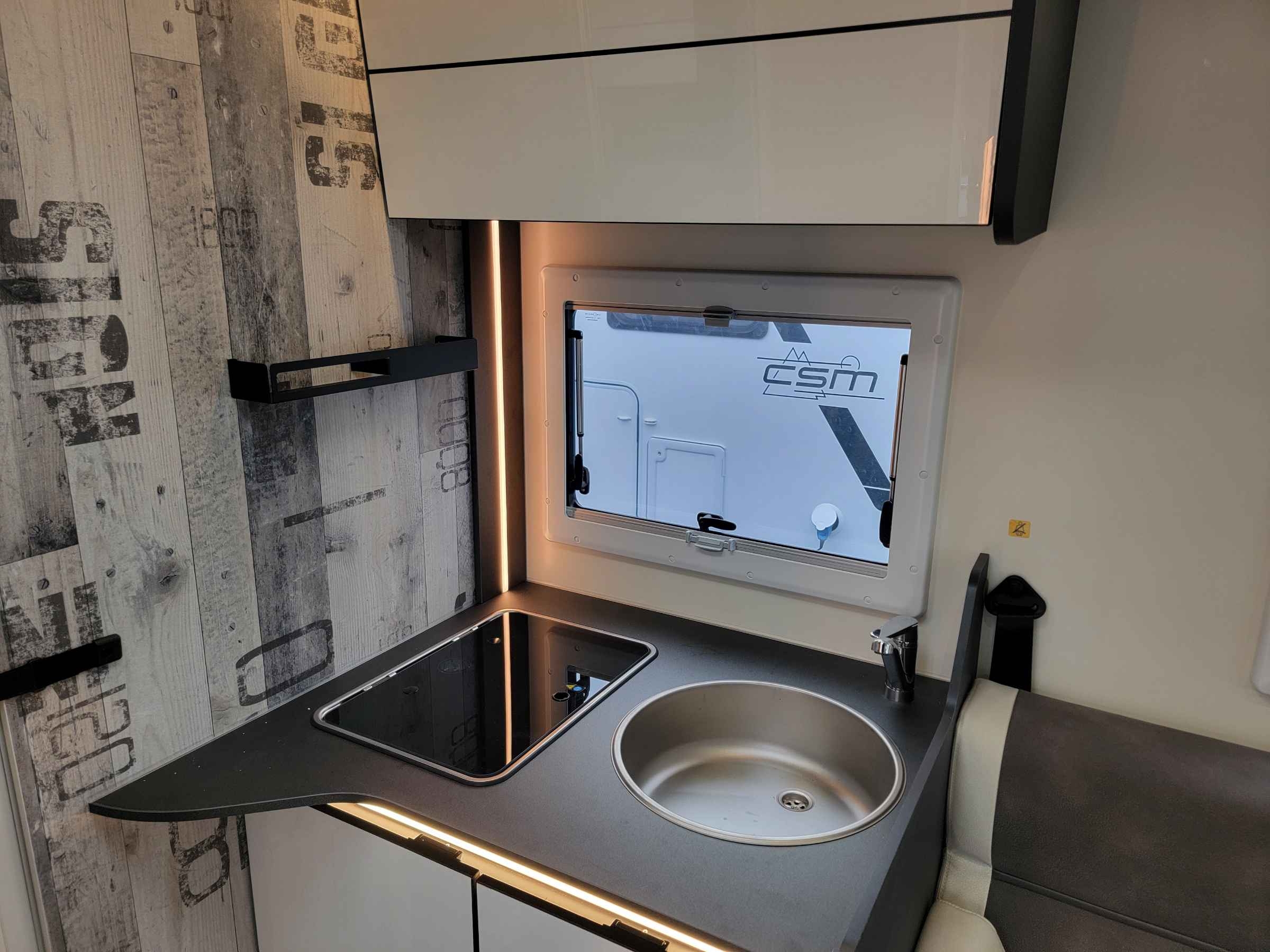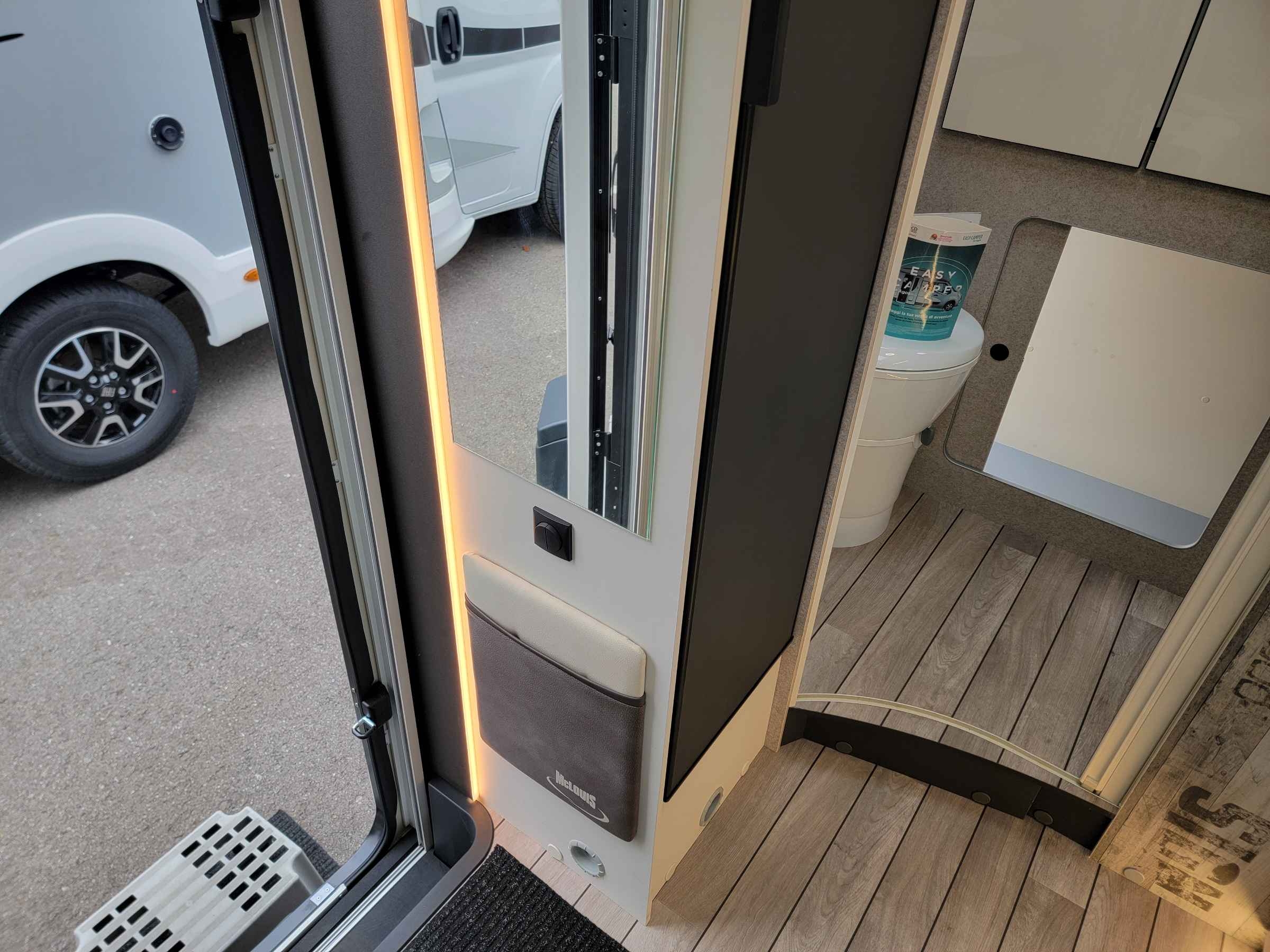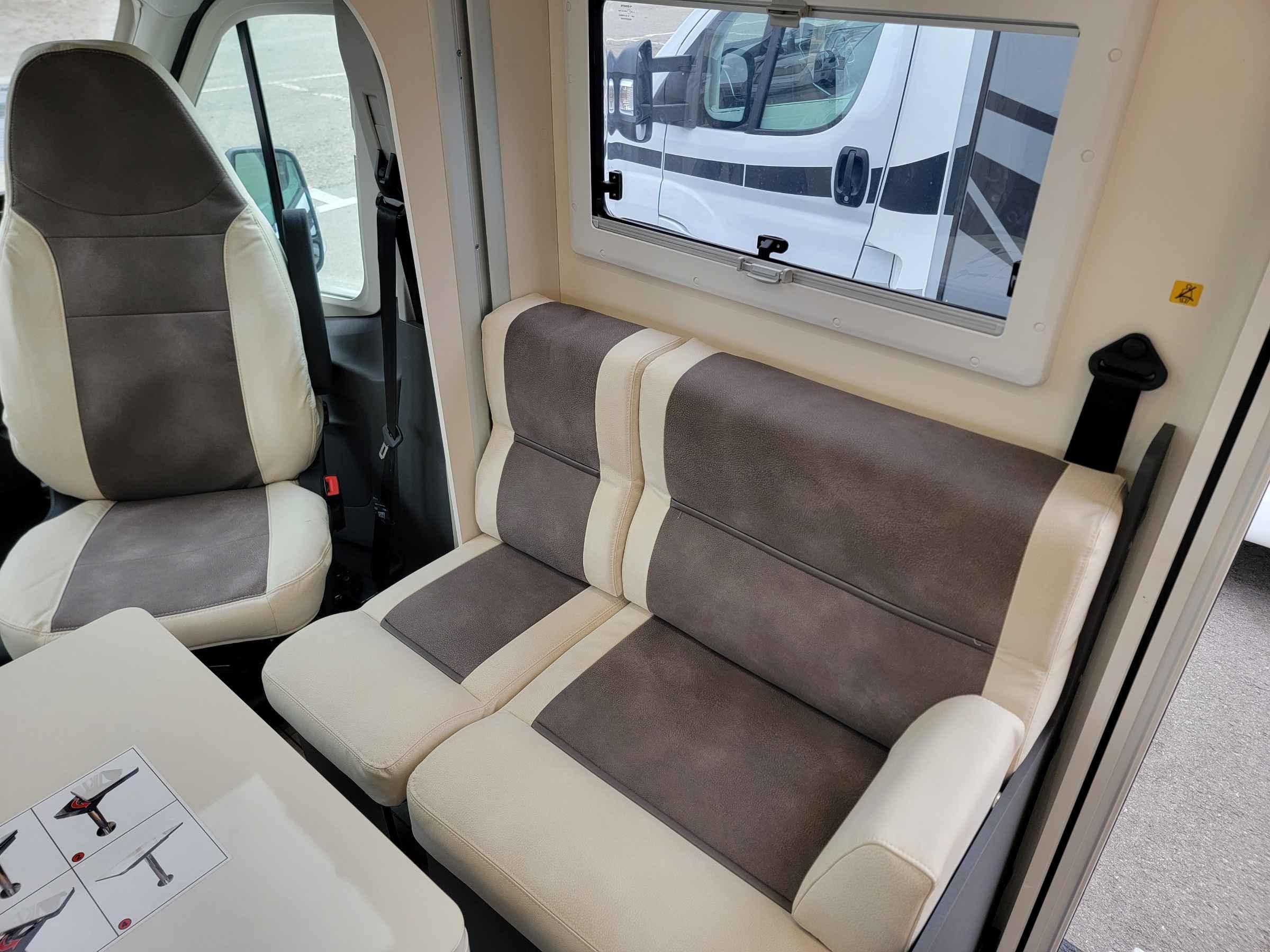 Semintegrale con letto basculante, ampia dinette face to face, bagno posteriore e armadio in coda. Dimensioni compatte: largo solo 2,15 m, con lunghezza e altezza ridotte. Letto basculante matrimoniale 190 cm di serie.
