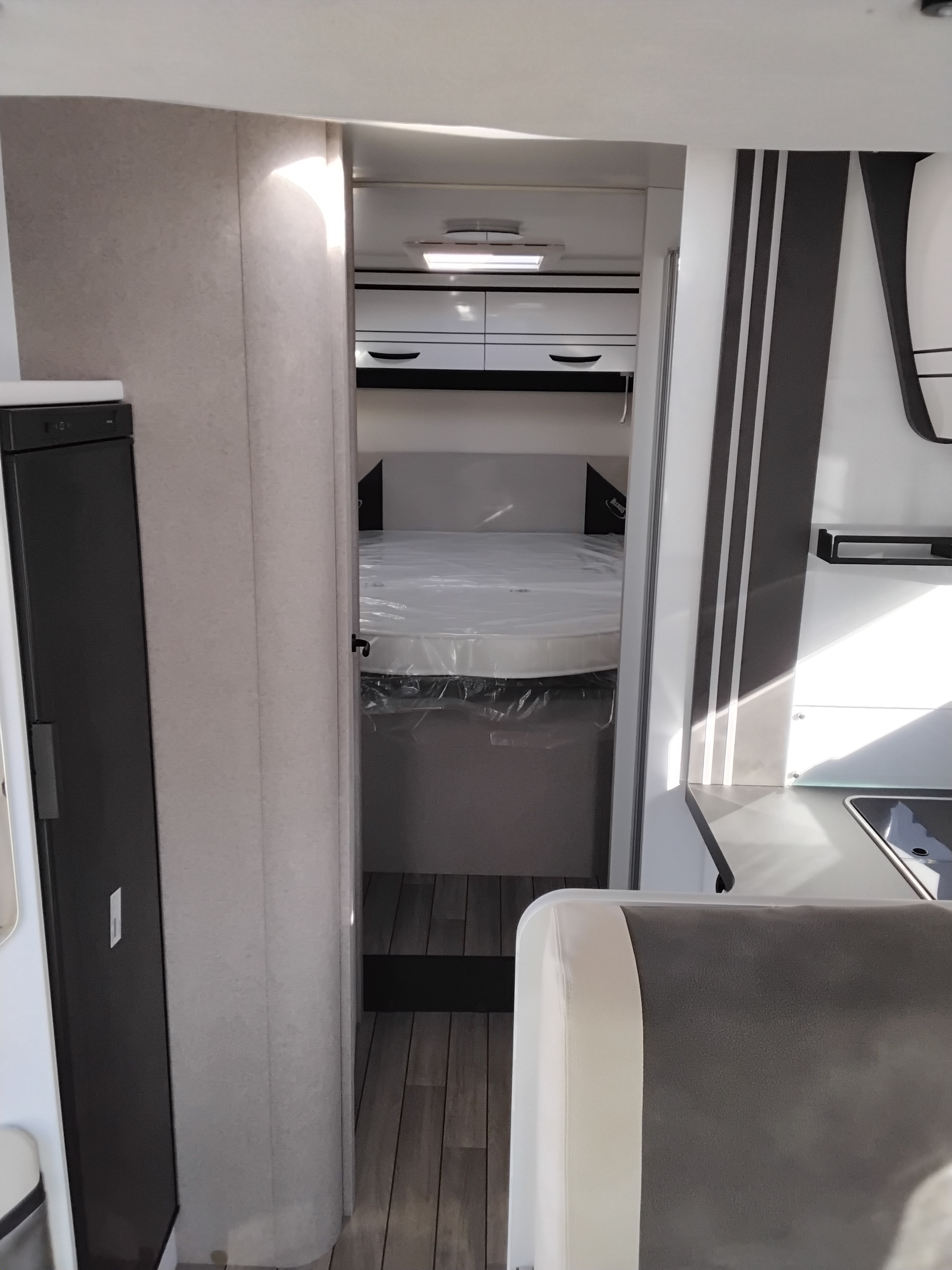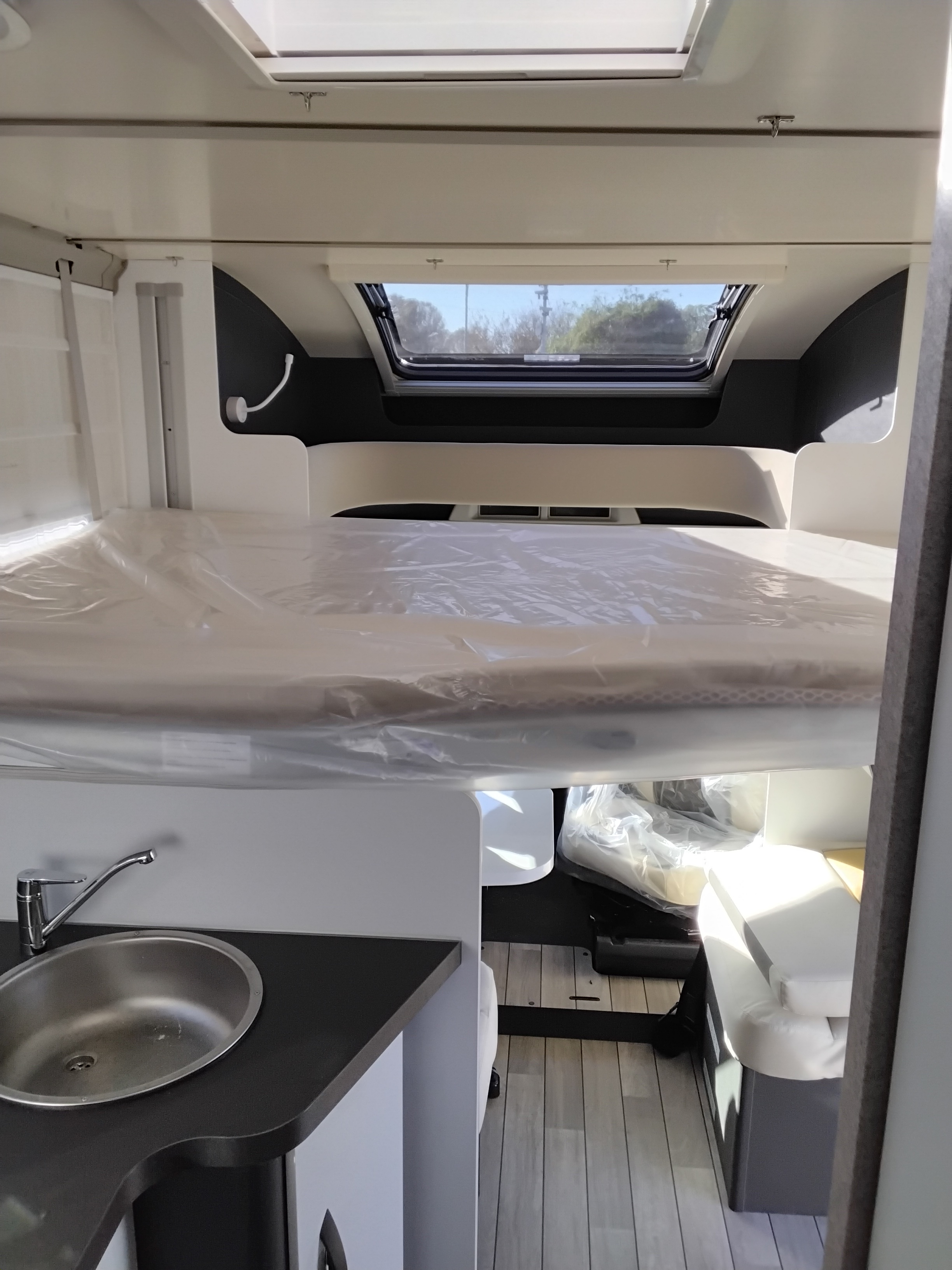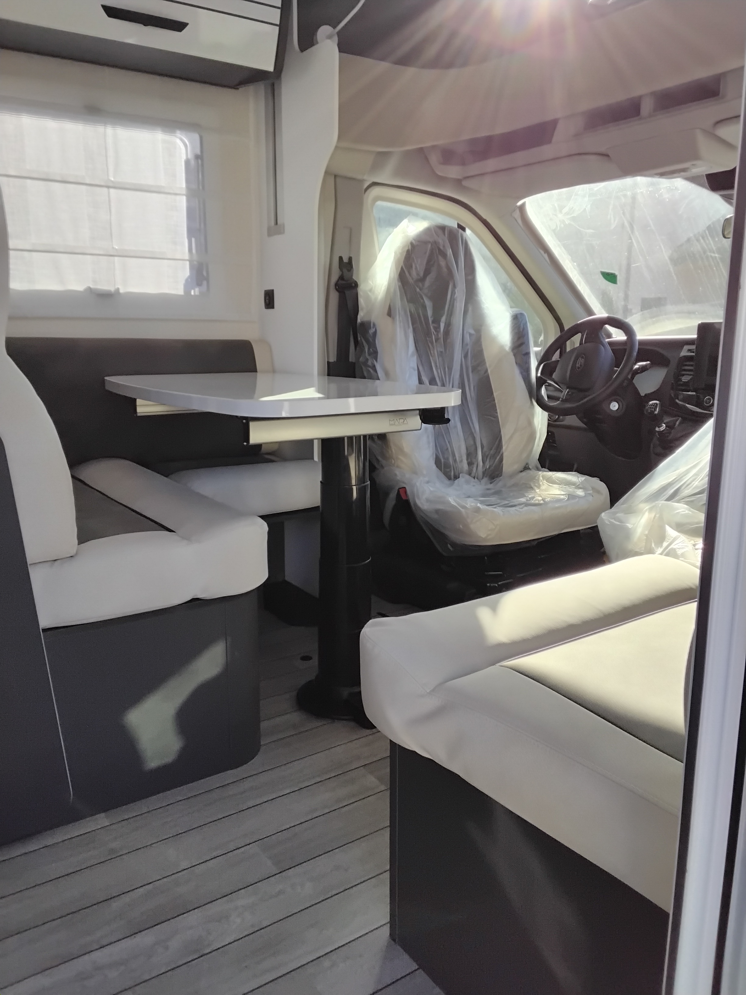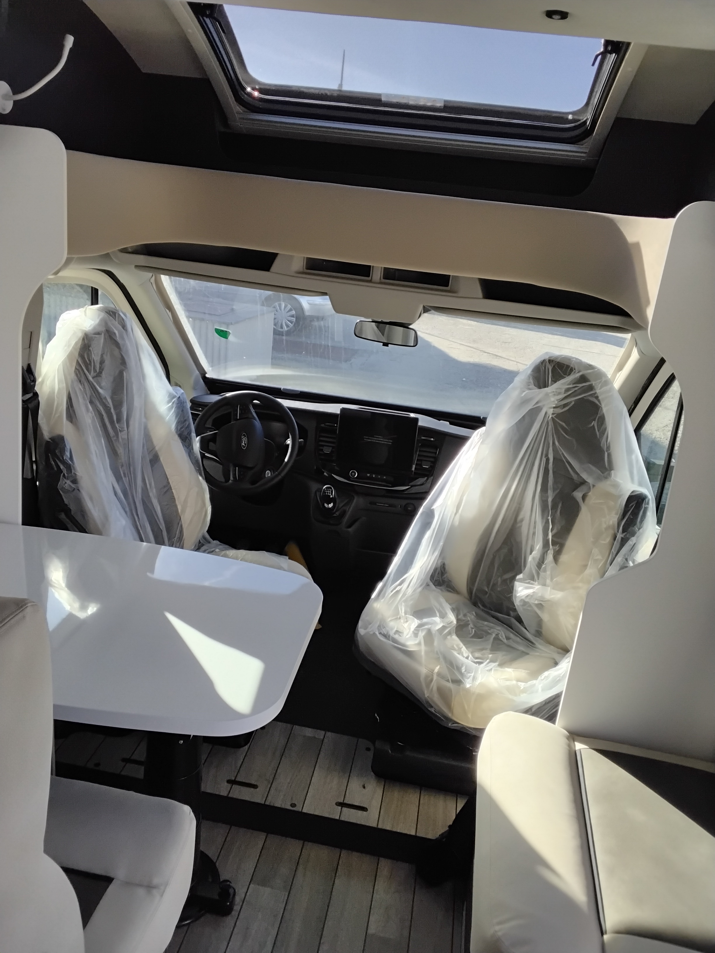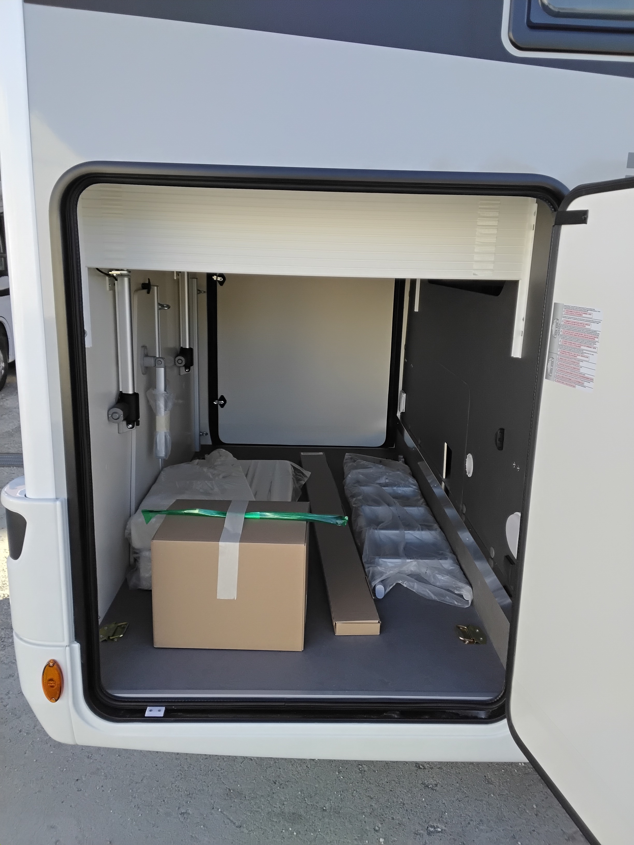 Tendalino, attacco gas esterno, doccia in garage, pannello solare da 200 w con regolatore mppt, oscuranti plissettati in cabina, presa multimediale esterna, braccio di supporto TV, coprisedili cabina, autoradio Pioneer doppio din con retrocamera e display touch da 9” sensori di parcheggio anteriori, cruise control, climatizzatore automatico in cabina, fanali alogeni con drl, fari fendinebbia, assistenza al mantenimento della corsia, cerchi in acciaio 16”