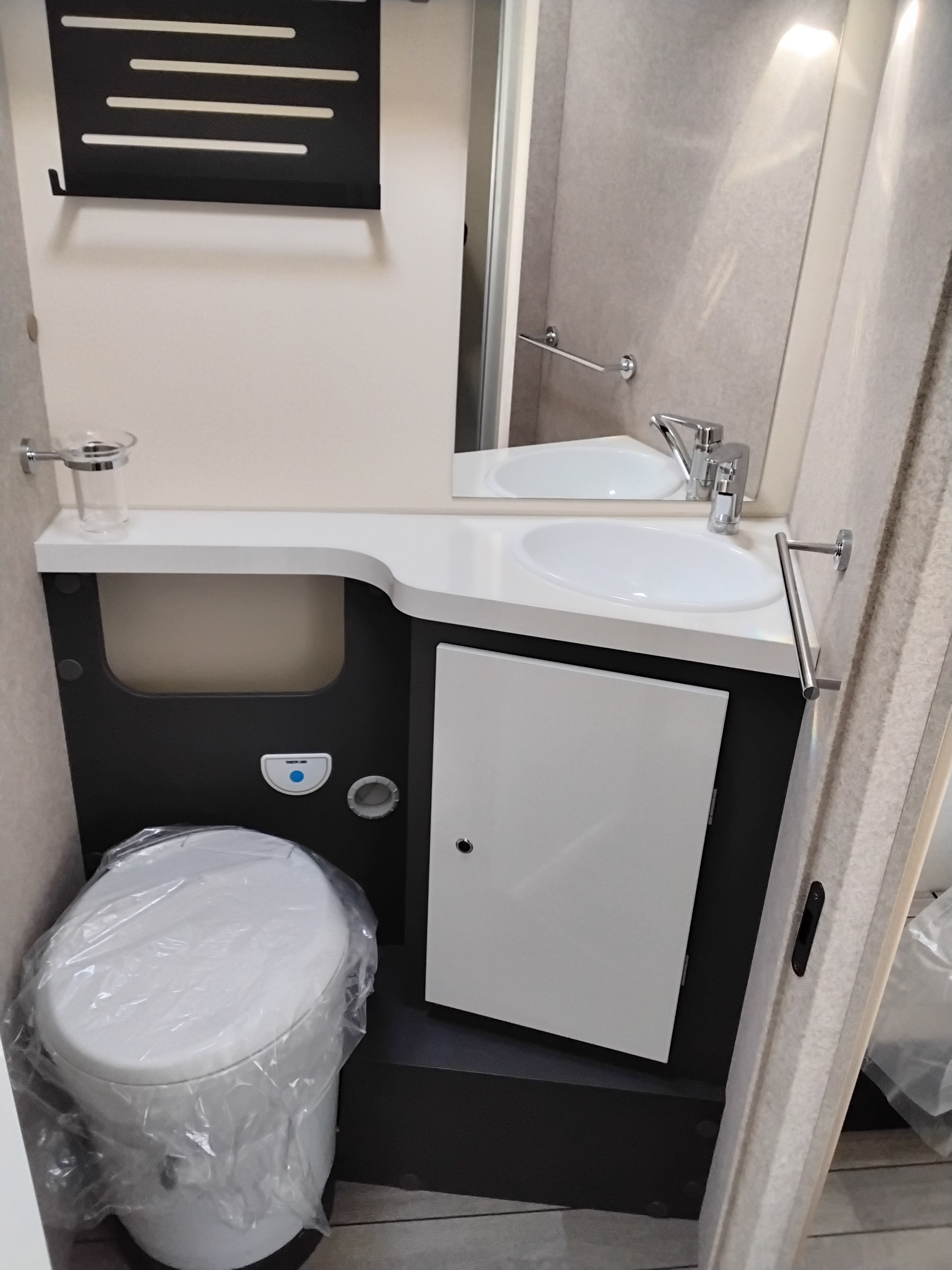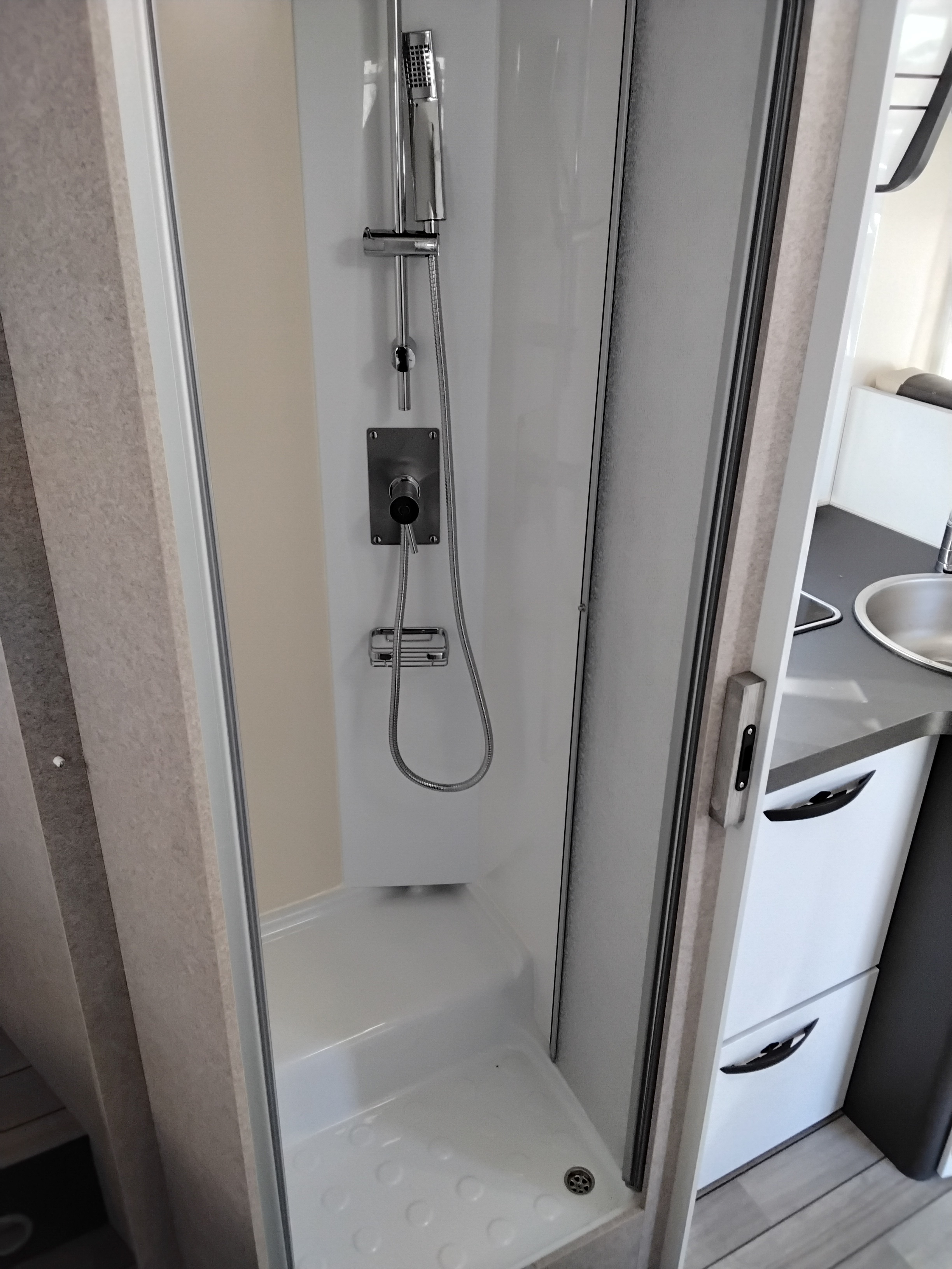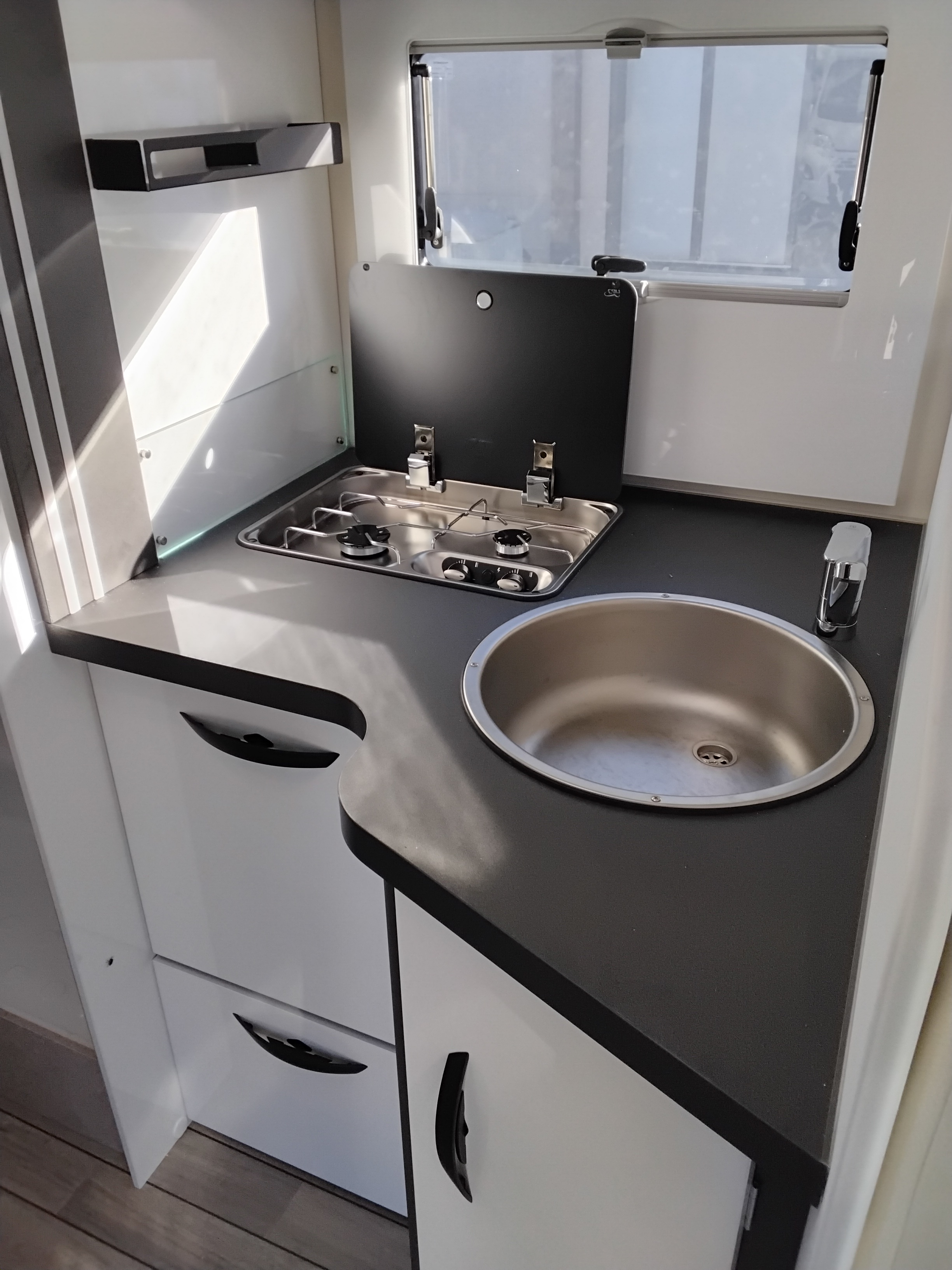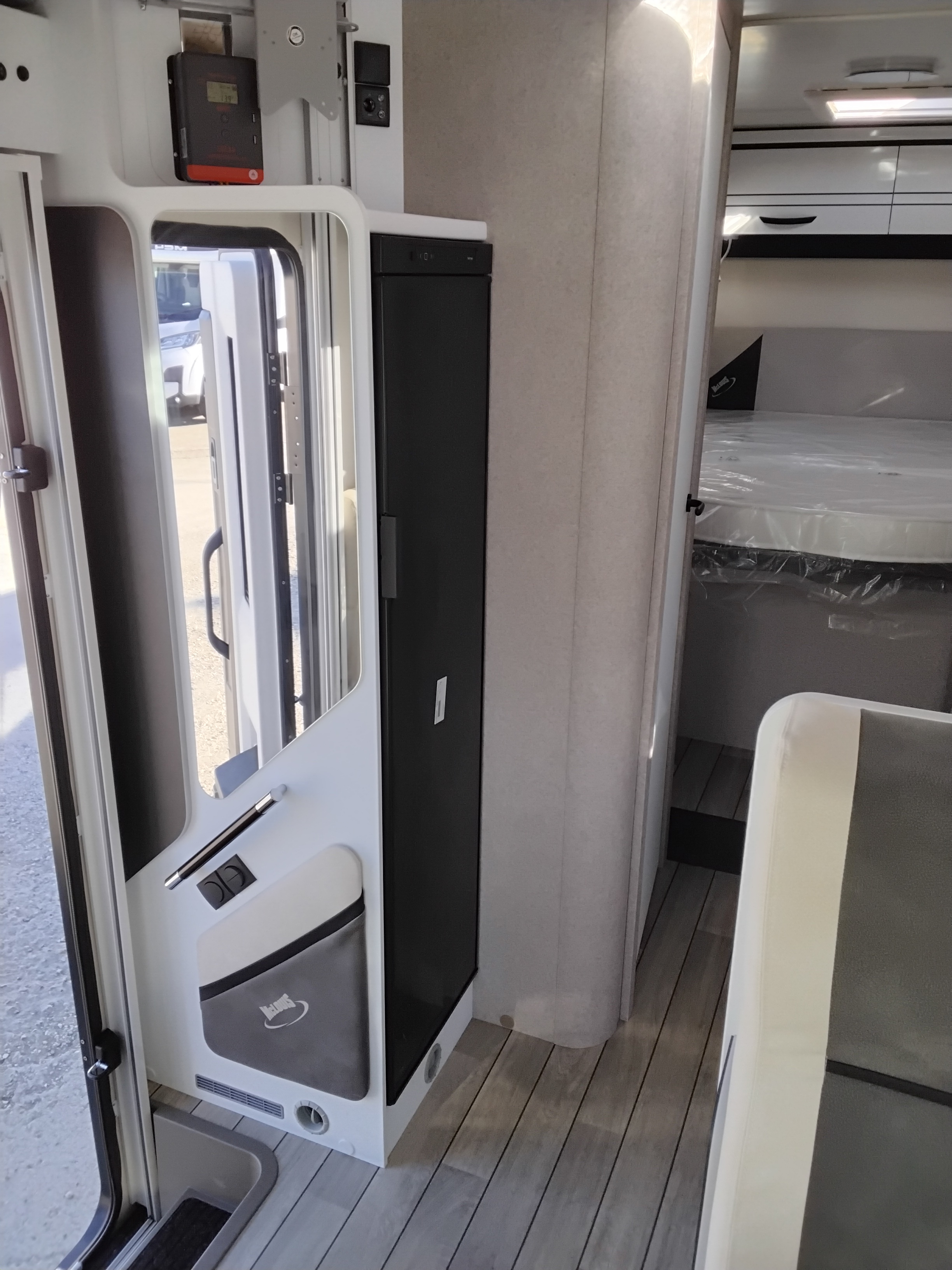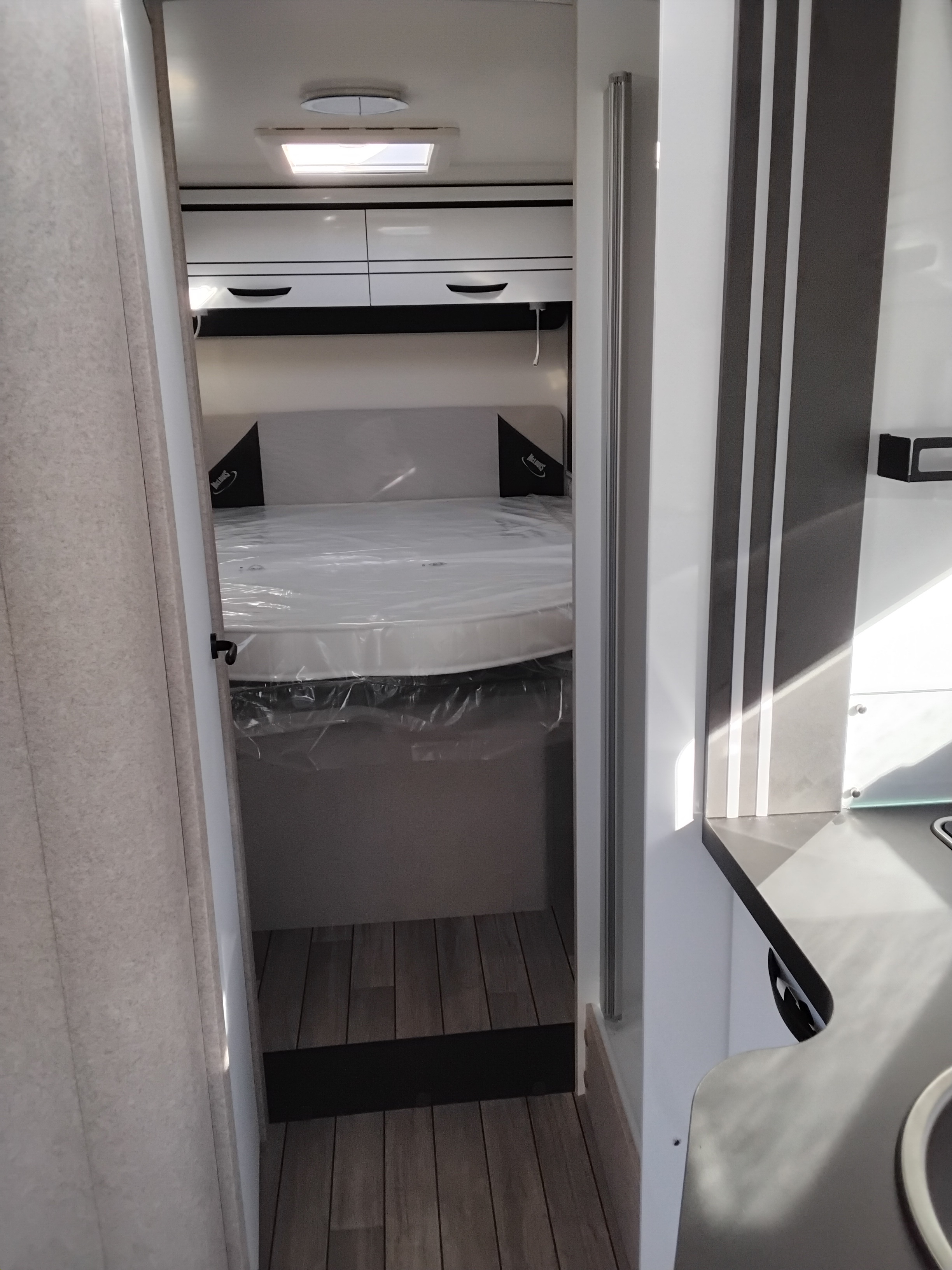Tendalino, attacco gas esterno, doccia in garage, pannello solare da 200 w con regolatore mppt, oscuranti plissettati in cabina, presa multimediale esterna, braccio di supporto TV, coprisedili cabina, autoradio Pioneer doppio din con retrocamera e display touch da 9” sensori di parcheggio anteriori, cruise control, climatizzatore automatico in cabina, fanali alogeni con drl, fari fendinebbia, assistenza al mantenimento della corsia, cerchi in acciaio 16”