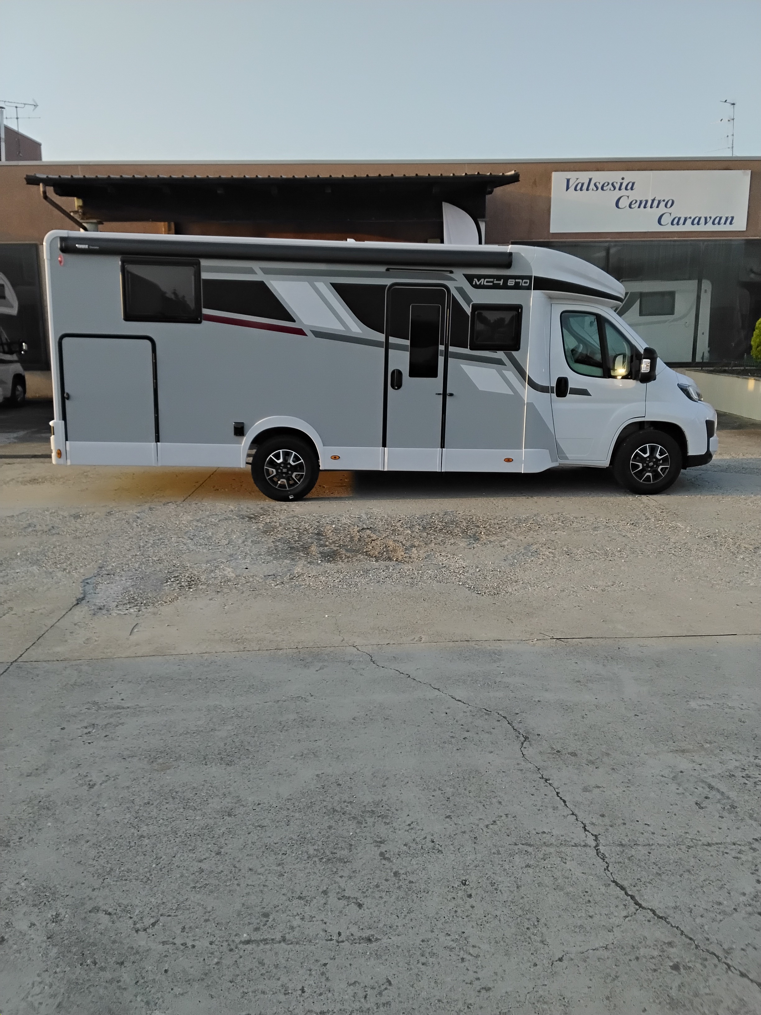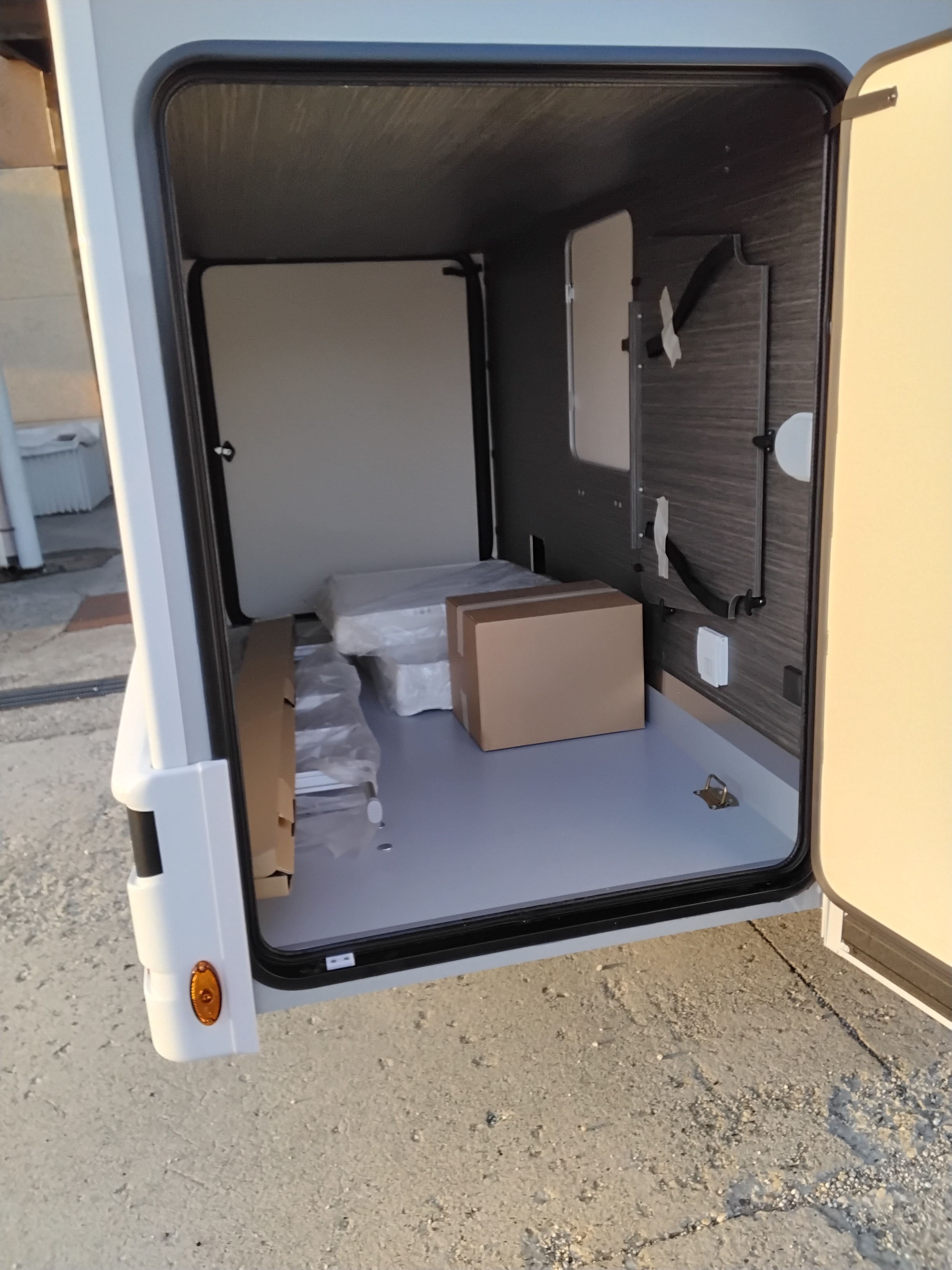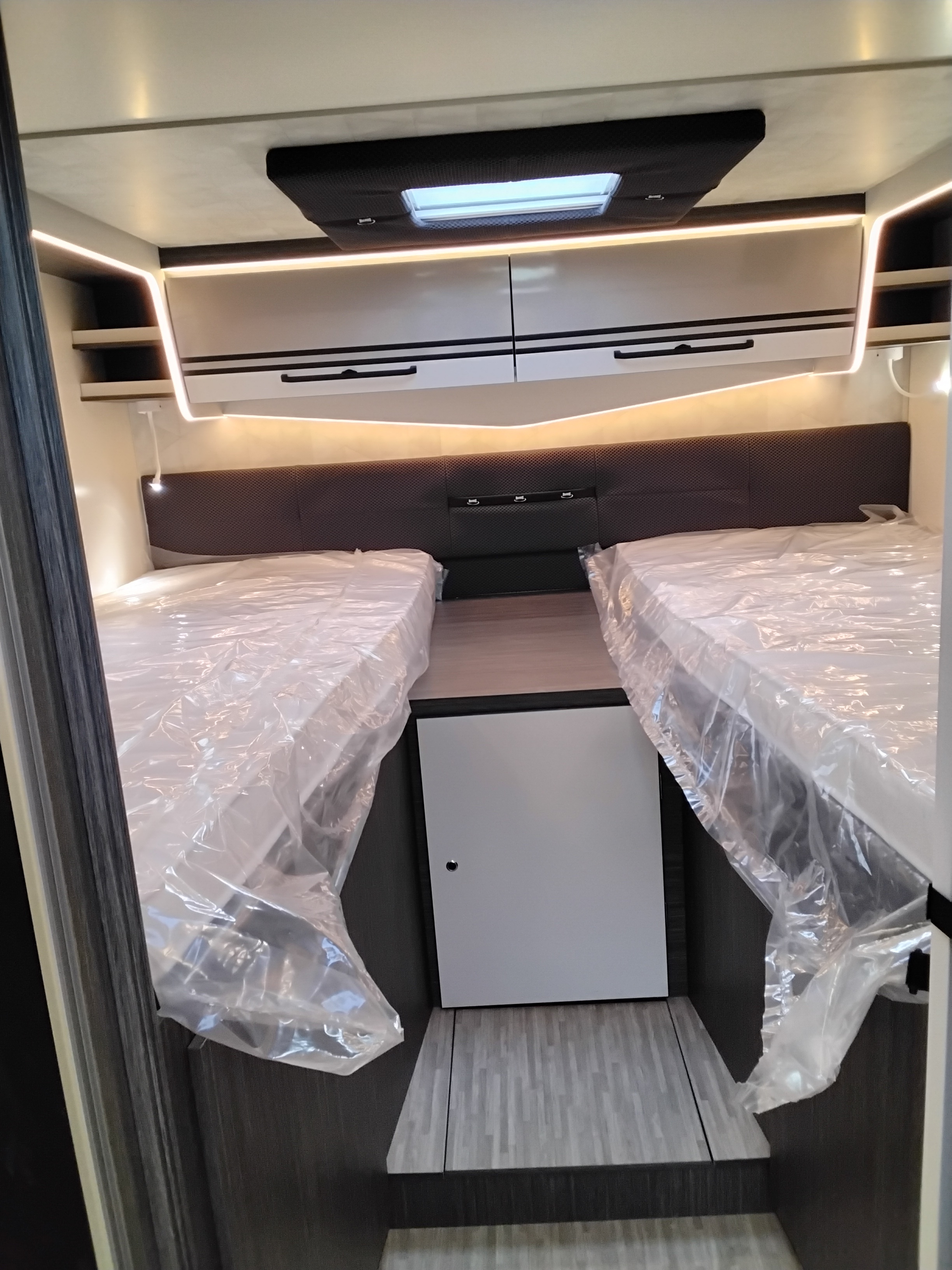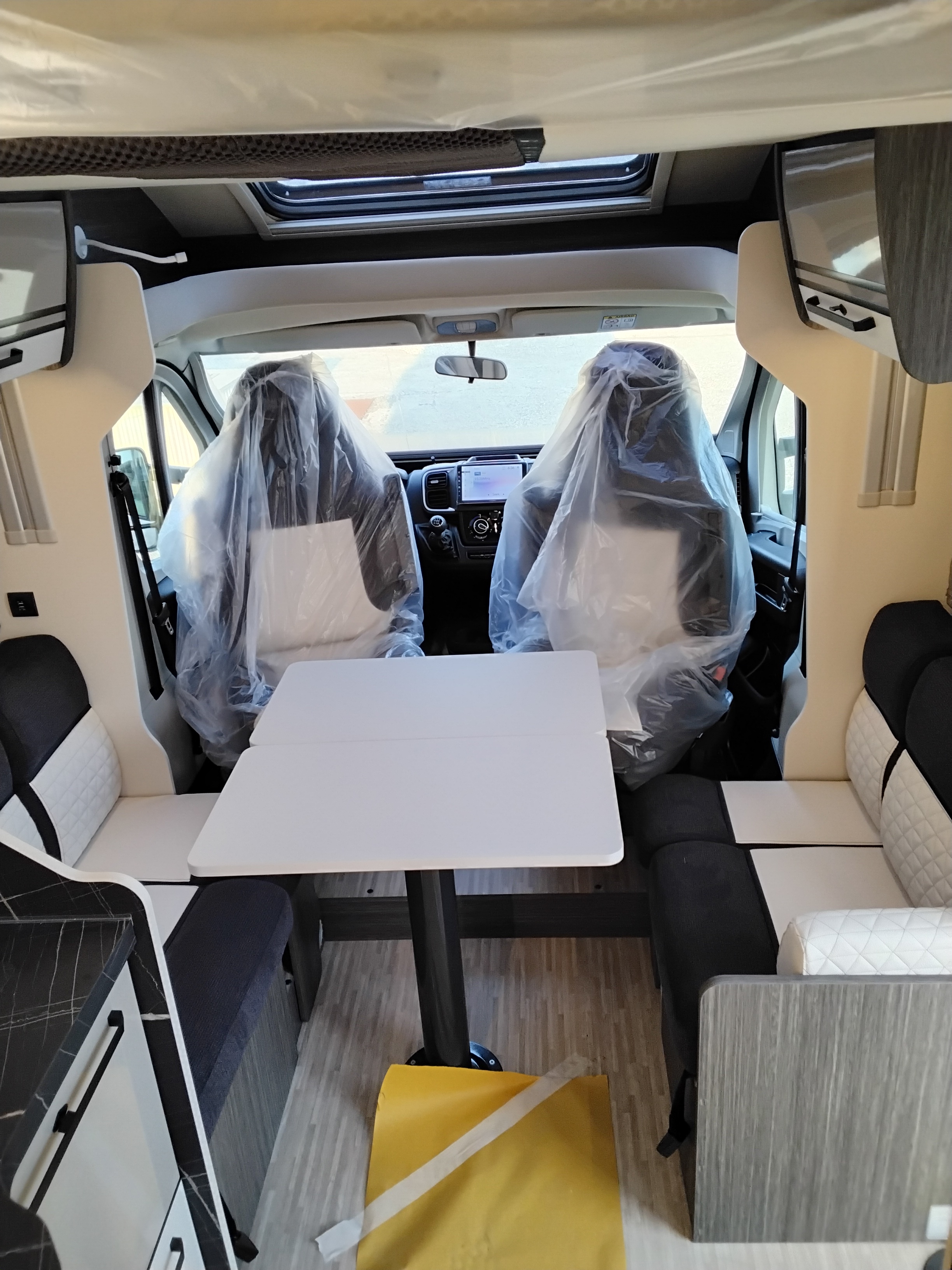 veranda, uscita gas esterna, doccia in garage, pannello solare da 200 w con regolatore mppt, oscuranti plissettati in cabina, braccio di supporto TV, coprisedili cabina, fendinebbia, cerchi in lega bicolore da 16", cruscotto techno, controllo automatico della pressione dei pneumatici, freno a mano elettrico, porta cellula con due punti di chiusura con finestre chiusura centralizzata