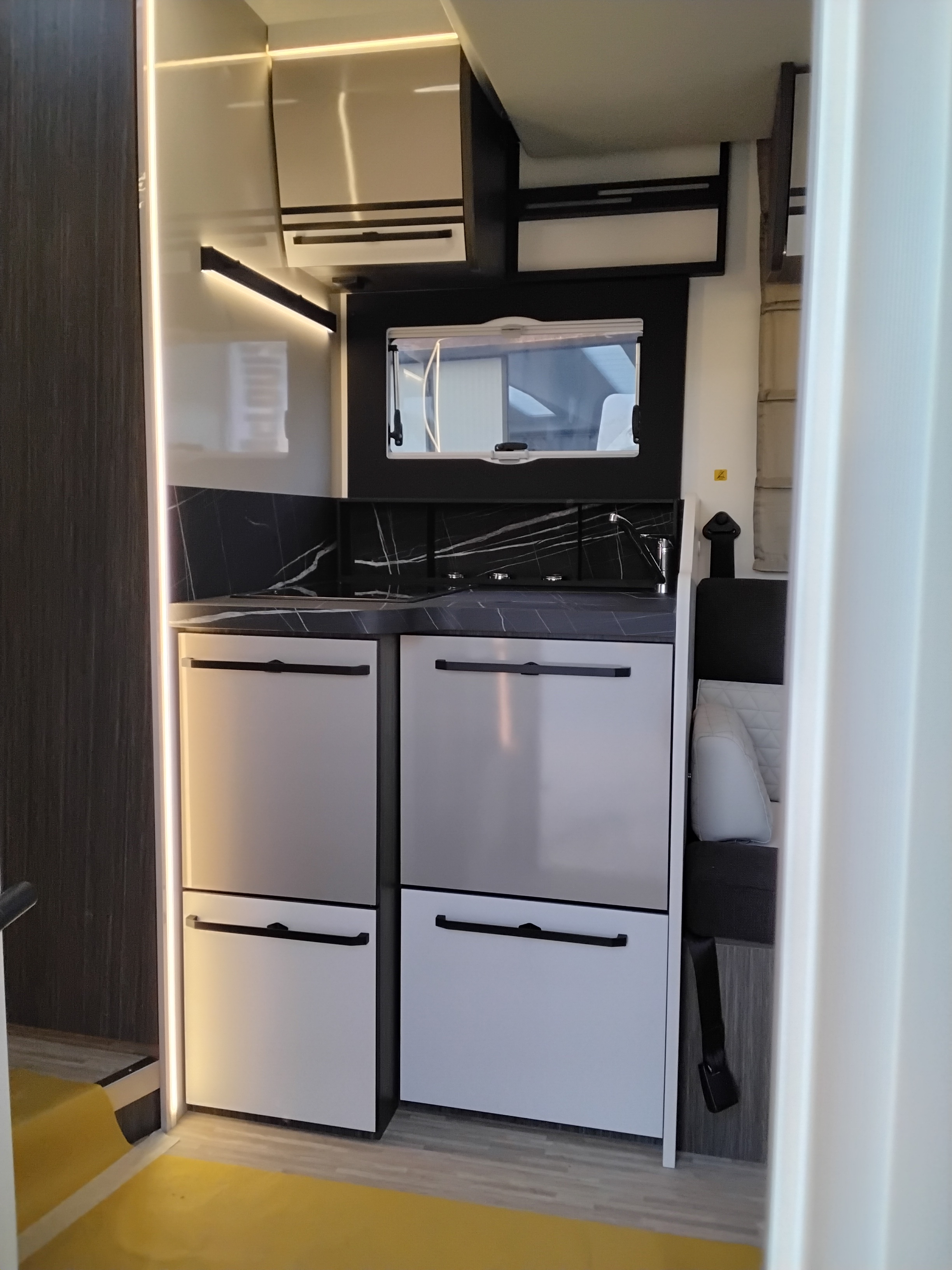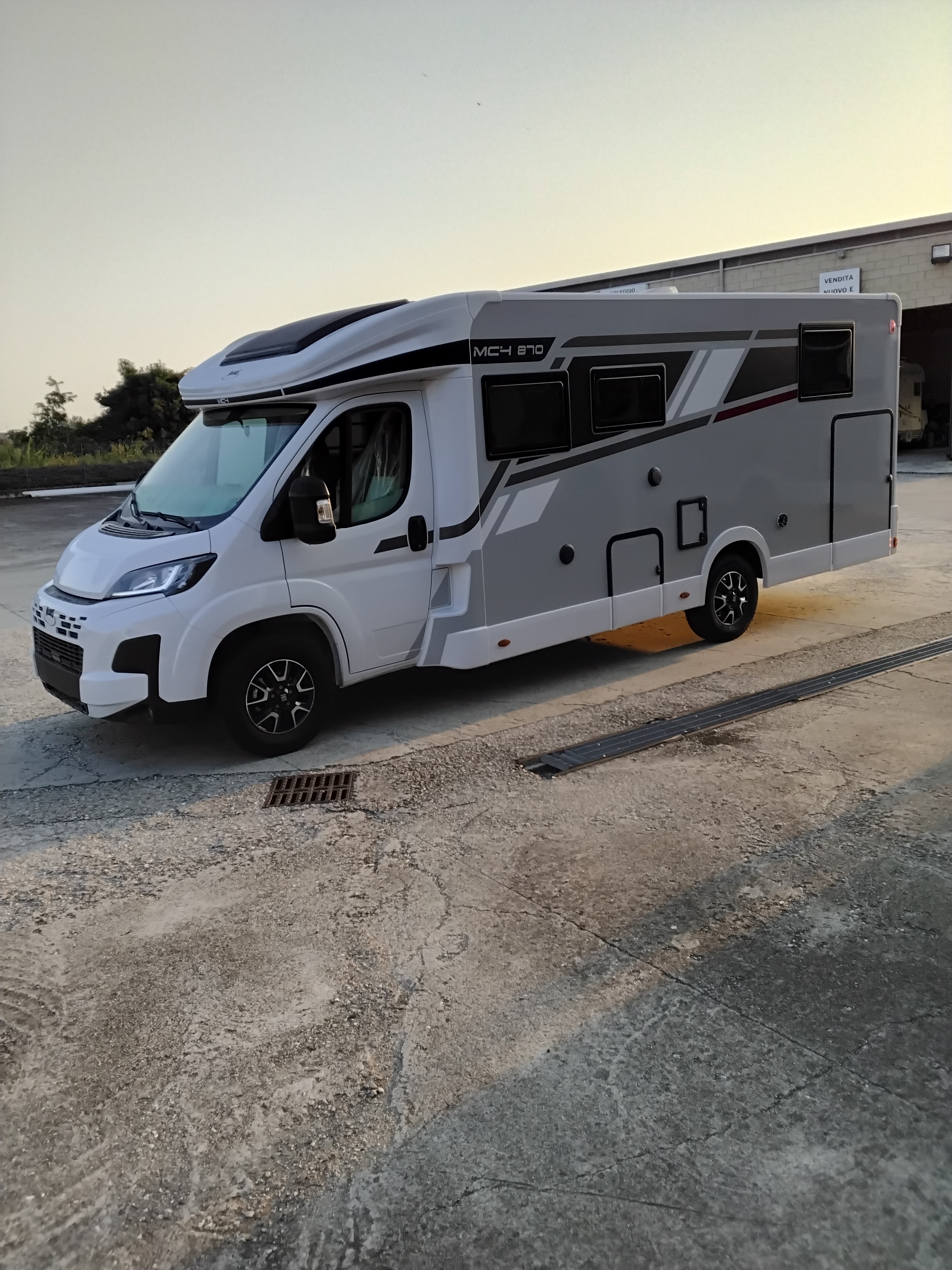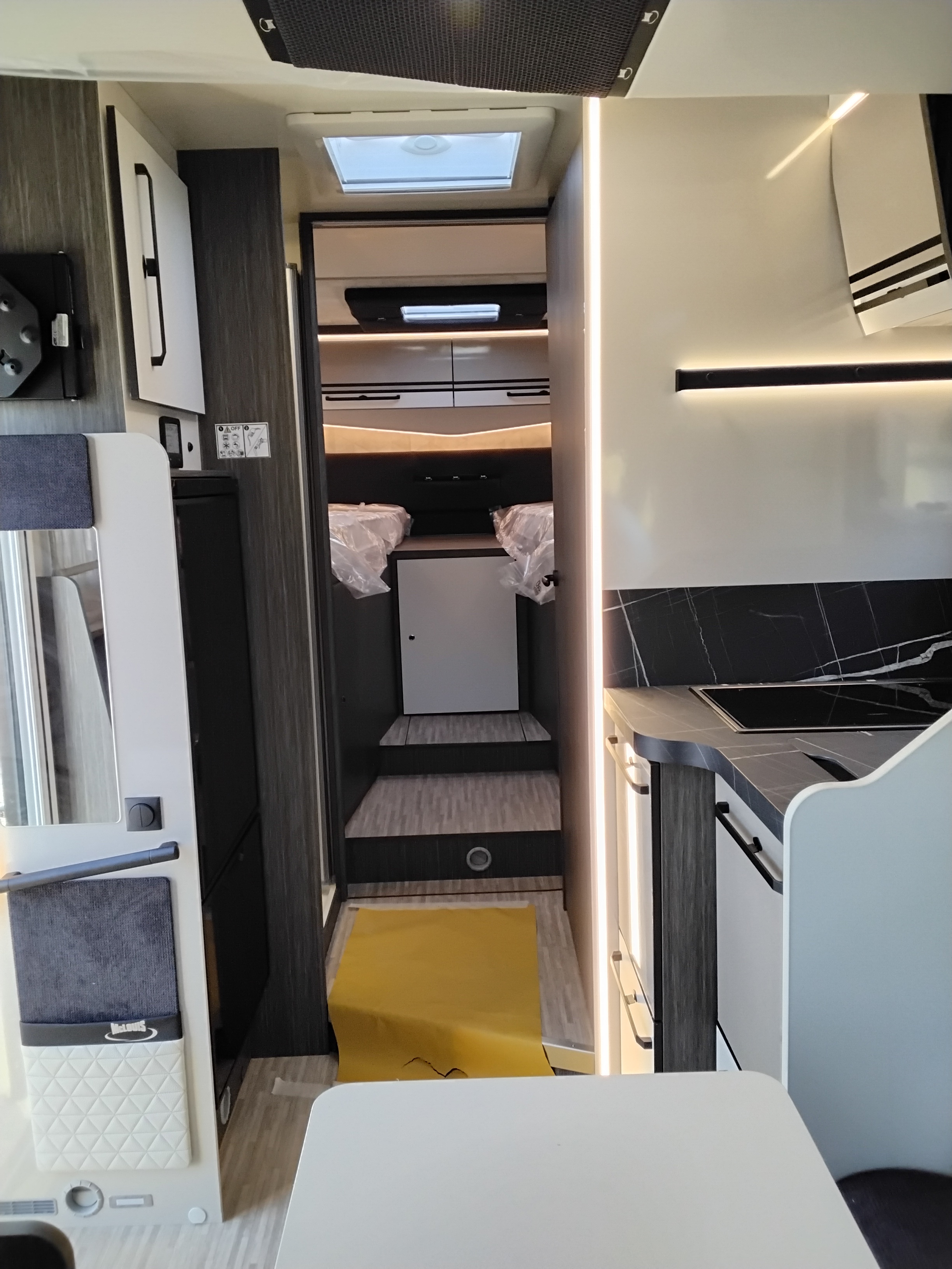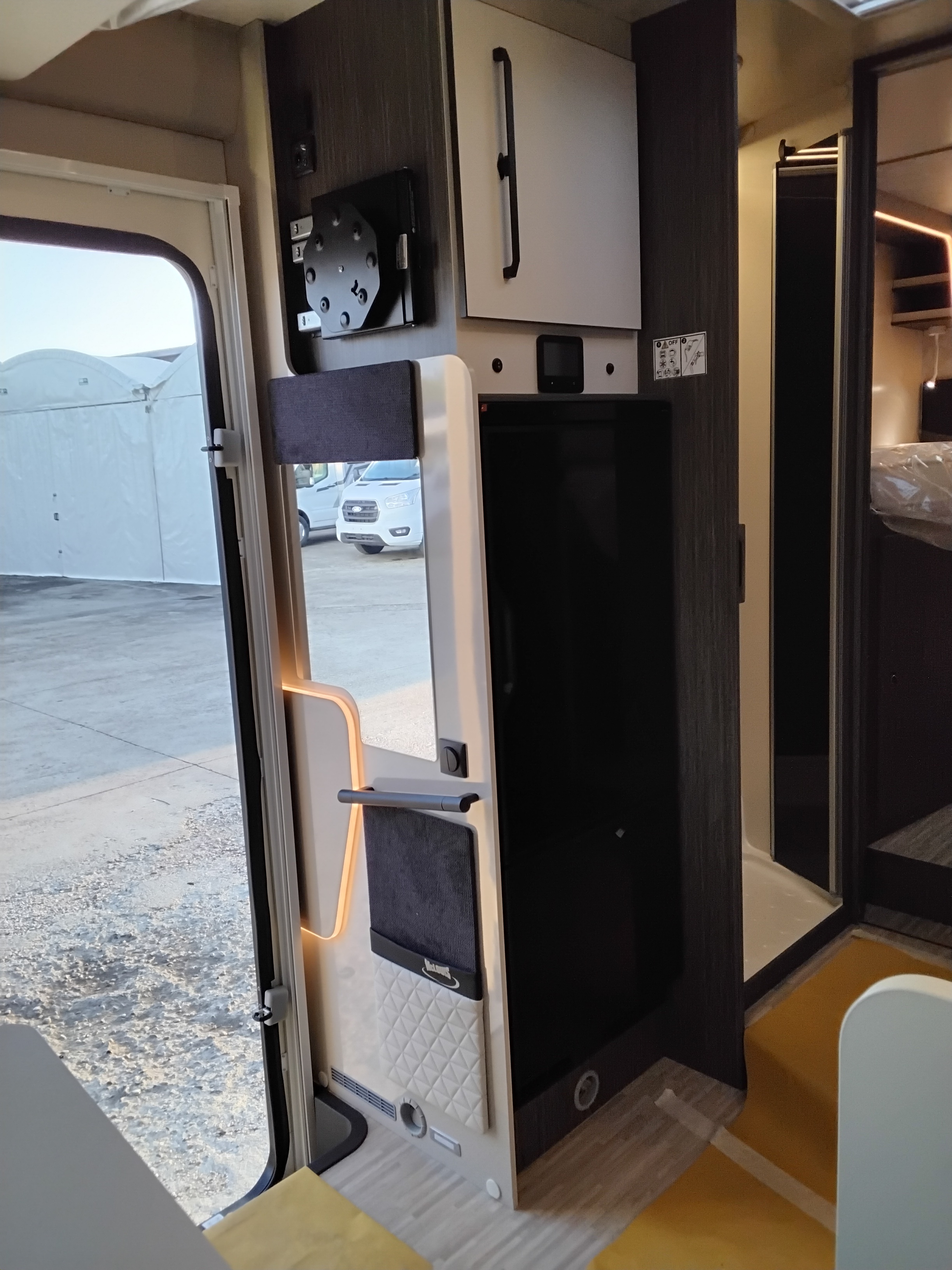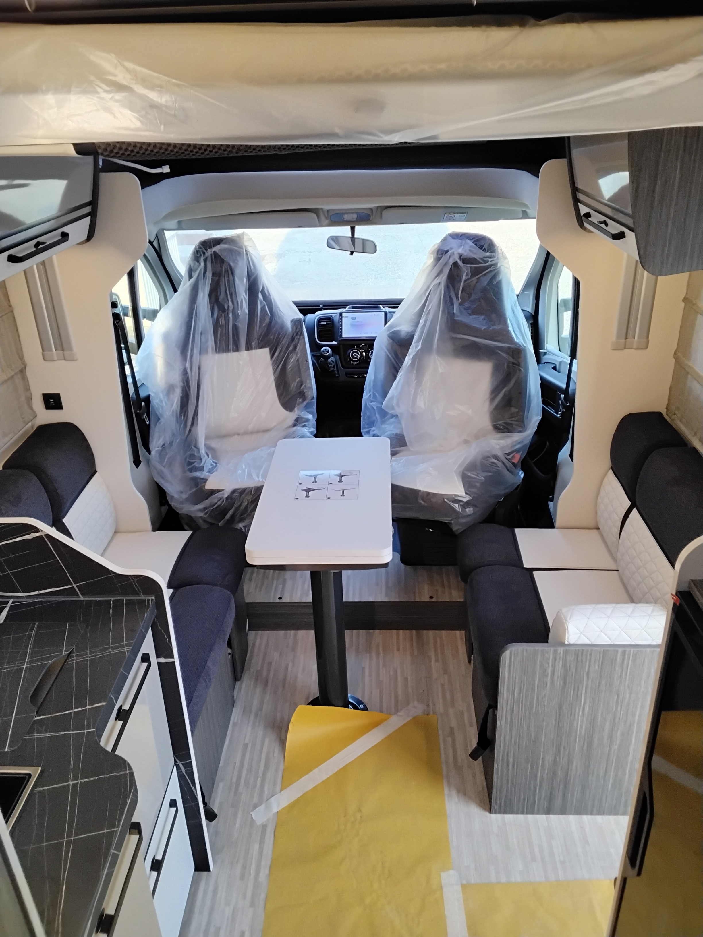 veranda, uscita gas esterna, doccia in garage, pannello solare da 200 w con regolatore mppt, oscuranti plissettati in cabina, braccio di supporto TV, coprisedili cabina, fendinebbia, cerchi in lega bicolore da 16", cruscotto techno, controllo automatico della pressione dei pneumatici, freno a mano elettrico, porta cellula con due punti di chiusura con finestre chiusura centralizzata