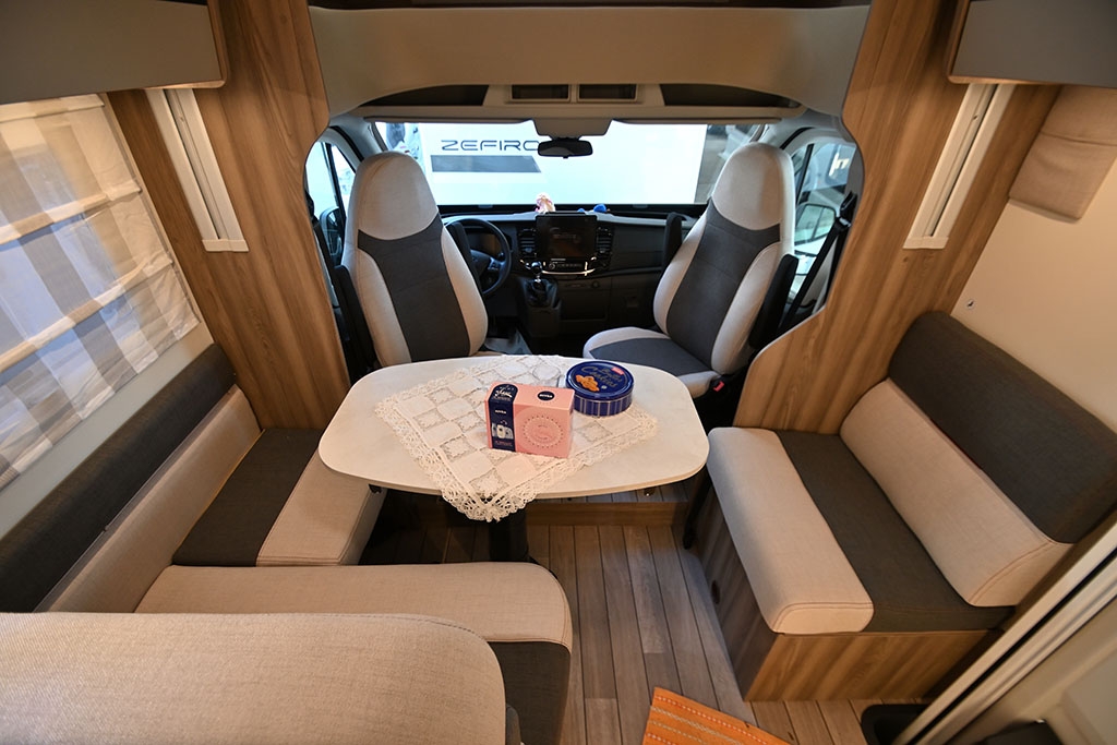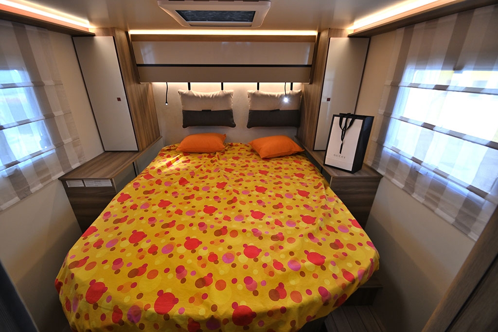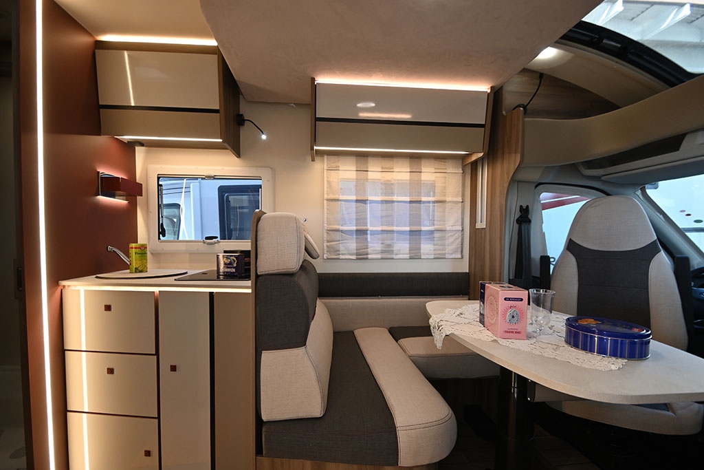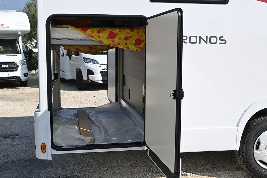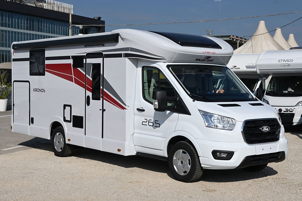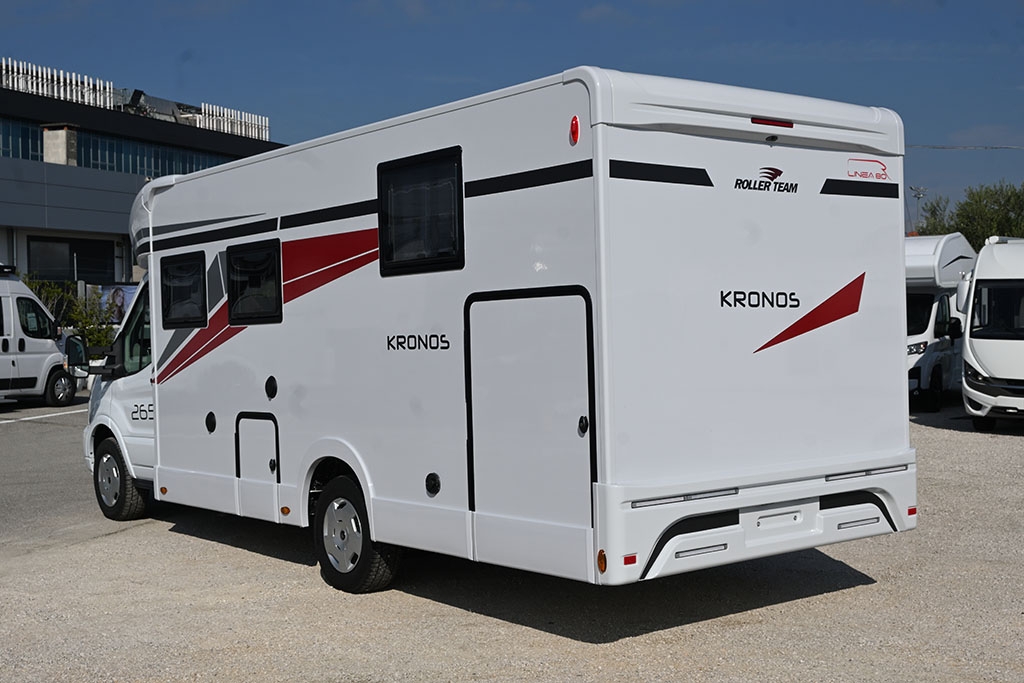 Pacchetto Kronos in omaggio (Motorizzazione Ford Transit 350 2.0 TDCi 165 CV, pannello solare da 200 W, oscuranti plissettati in cabina, porta cellula XL con finestra e zanzariera, fanali High Series con luci statiche di svolta, paraurti anteriore verniciato in tinta con la carrozzeria, coprisedili cabina, sky-roof panoramico, pannello di controllo Truma CP Plus, rivestimenti interni cabina e plancia strumenti Trend), Pacchetto Open Air (Tendalino, doccetta esterna, presa gas esterna). Prezzo totale: € 70.380,00 Chiavi in mano
