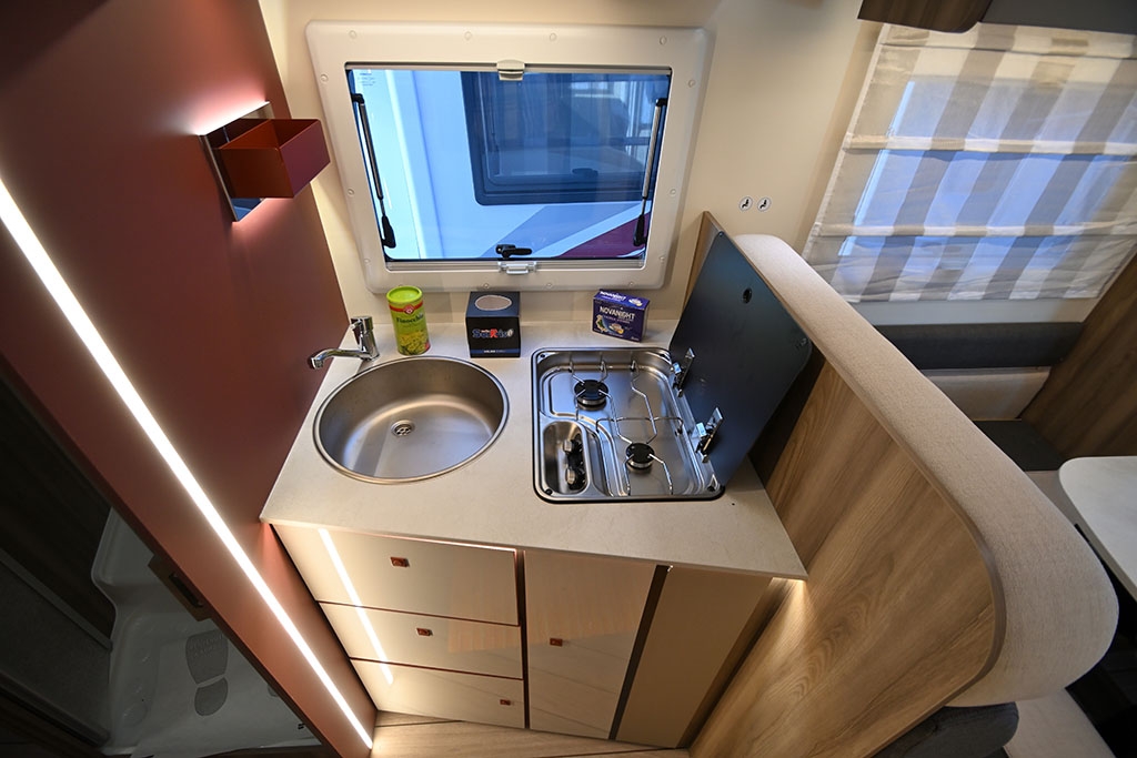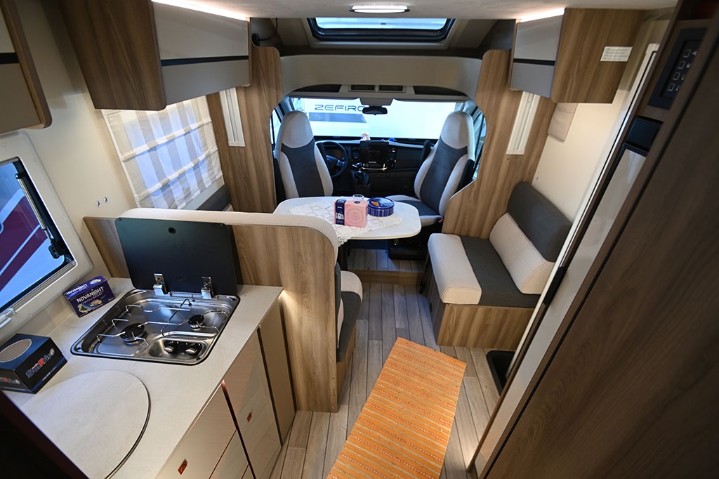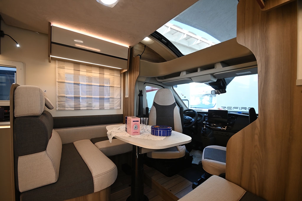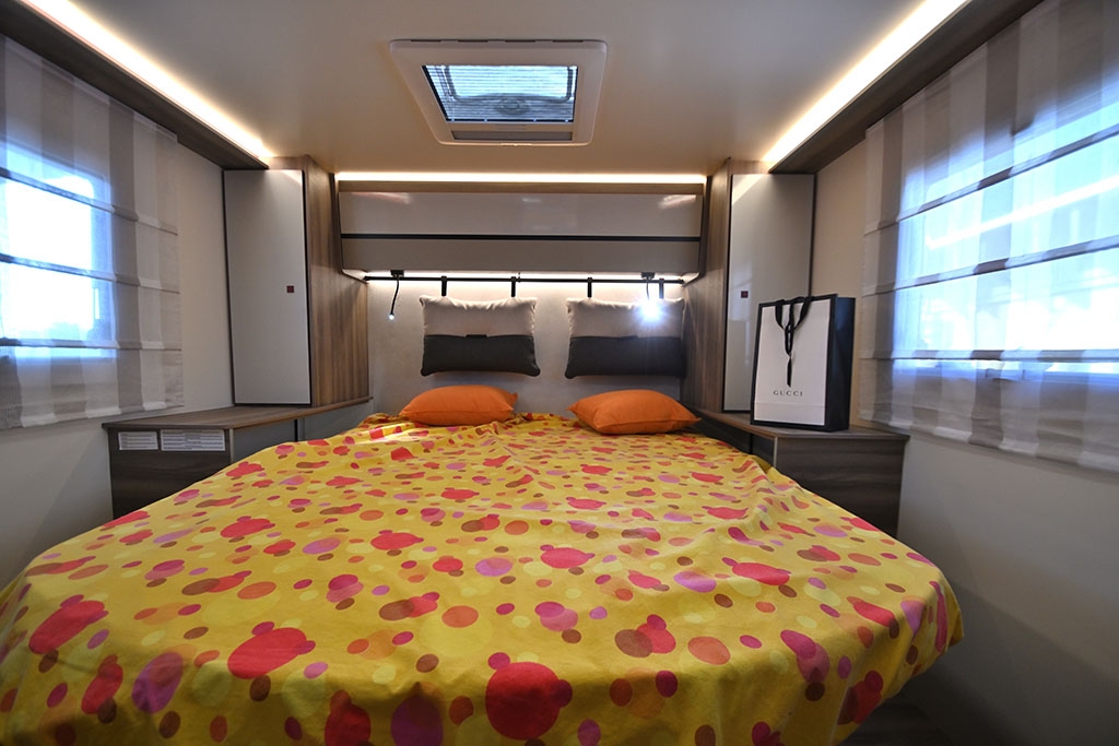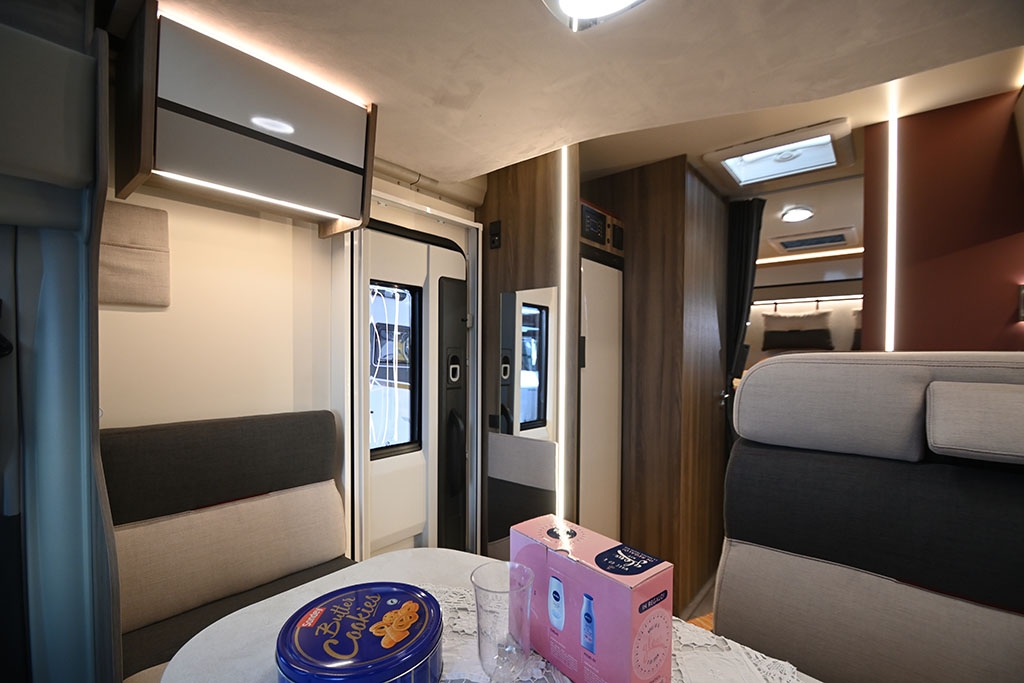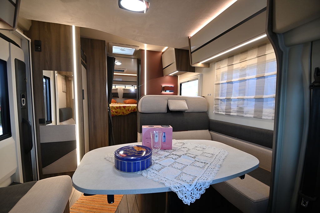 Pacchetto Kronos in omaggio (Motorizzazione Ford Transit 350 2.0 TDCi 165 CV, pannello solare da 200 W, oscuranti plissettati in cabina, porta cellula XL con finestra e zanzariera, fanali High Series con luci statiche di svolta, paraurti anteriore verniciato in tinta con la carrozzeria, coprisedili cabina, sky-roof panoramico, pannello di controllo Truma CP Plus, rivestimenti interni cabina e plancia strumenti Trend), Pacchetto Open Air (Tendalino, doccetta esterna, presa gas esterna). Prezzo totale: € 70.380,00 Chiavi in mano