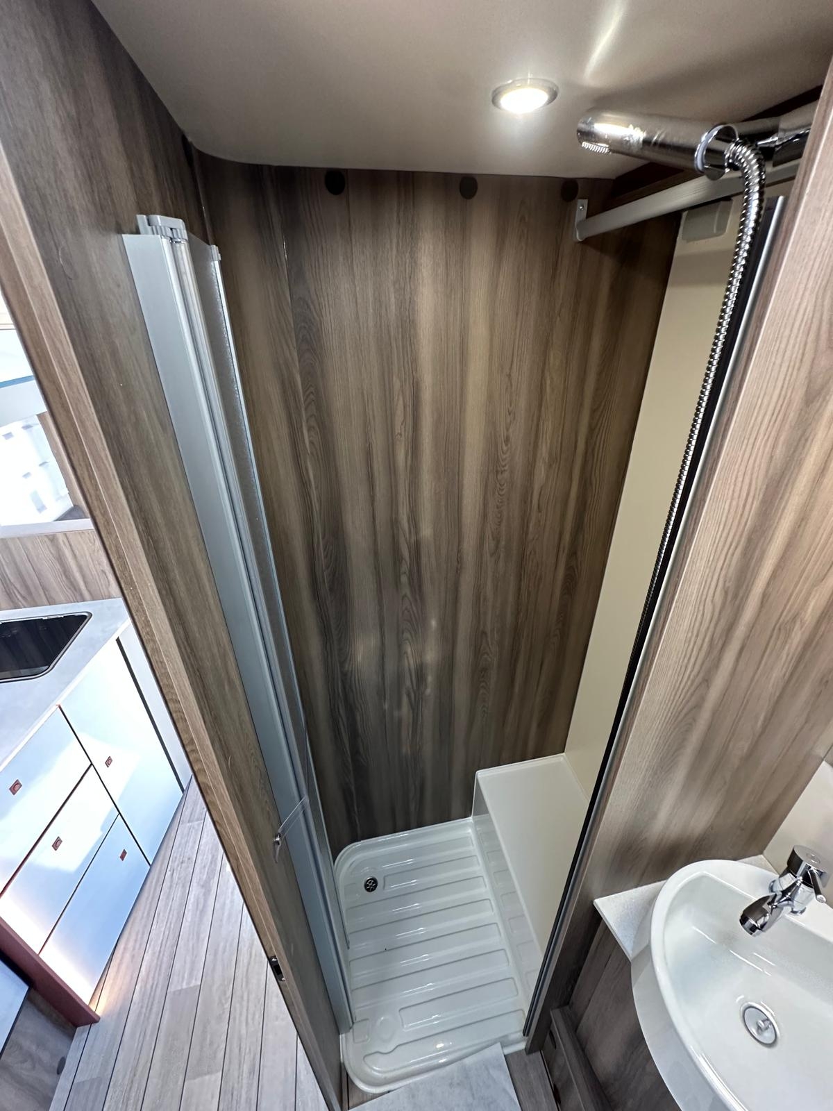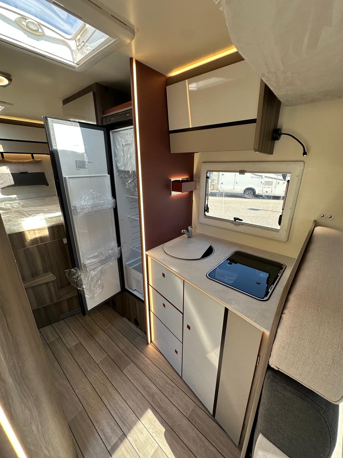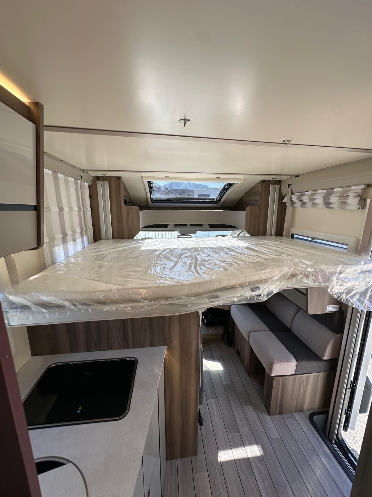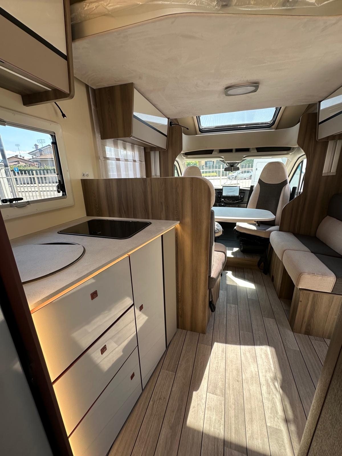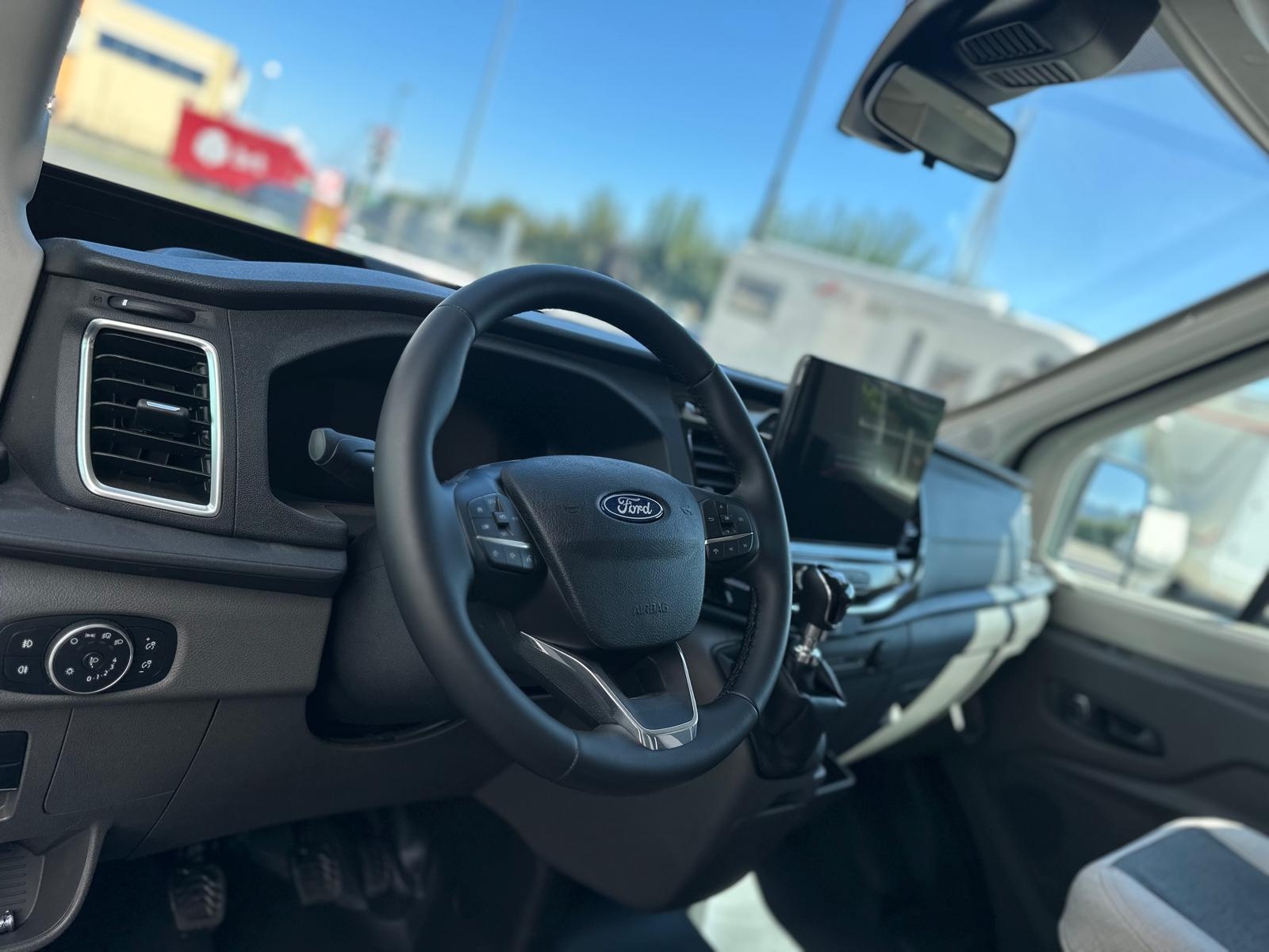 Motorizzazione Ford Transit 2.0 Tdci 165 cv, Clima cabina, Cruise control, Comandi al volante, Paraurti in tinta, Skyroof panoramico, Frigo trivalente 137 litri, Riscaldamento Truma Combi Gas 4Kw, Serbatoio H20 potabile 100 litri, Porta cellula Jumbo 60 cm, Chiusura centralizzata, Letto basculante elettrico, Pannello Fotovoltaico 200w, Scuri Remis cabina, Veranda, Retrocamera con sensori posteggio, attacco esterno Gas, Doccetta esterna , Illuminazione a led