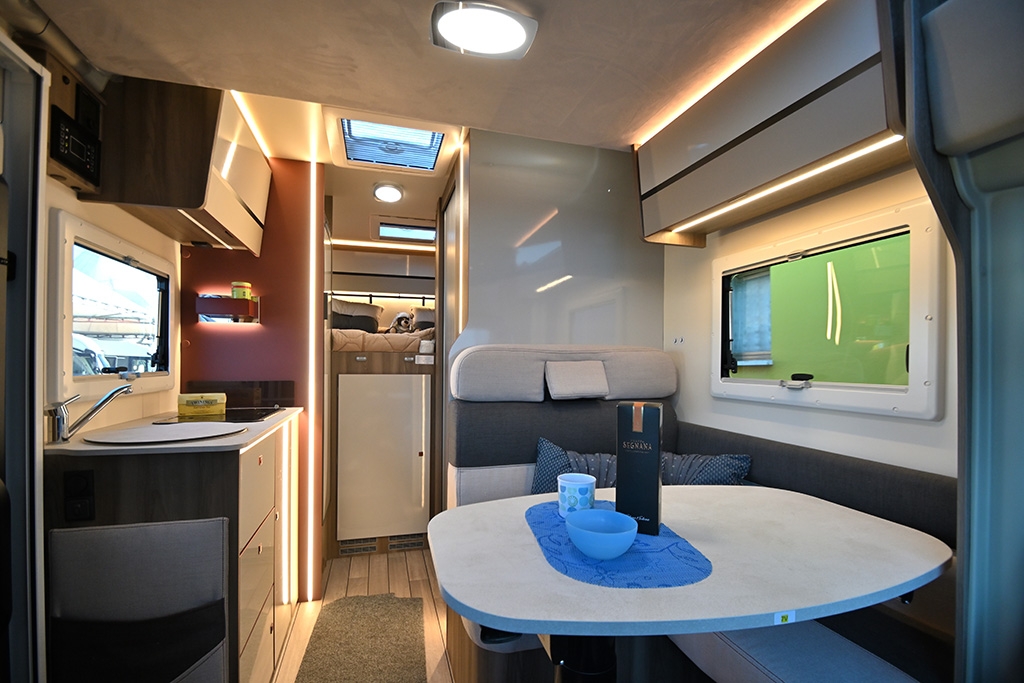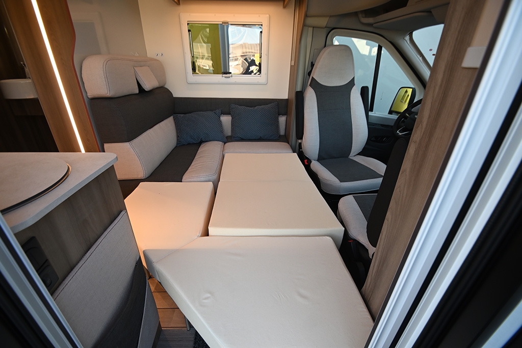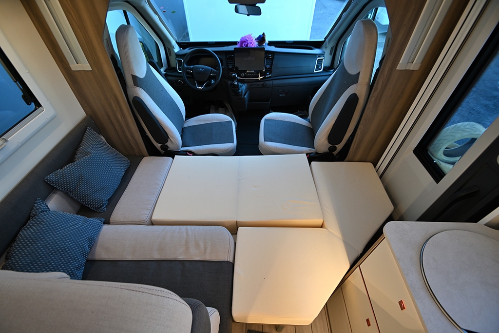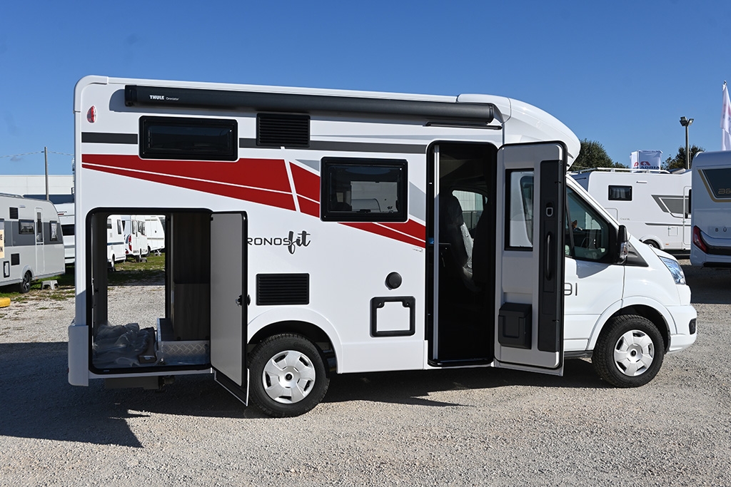 Pacchetto Kronos Fit in omaggio (Motorizzazione Ford Transit 350 2.0 TDCi 165 CV, pannello solare da 200 W, oscuranti plissettati in cabina, porta cellula XL con finestra e zanzariera, fanali High Series con luci statiche di svolta, paraurti anteriore verniciato in tinta con la carrozzeria, coprisedili cabina, sky-roof panoramico, pannello di controllo Truma CP Plus, rivestimenti interni cabina e plancia strumenti Trend), Pacchetto Open Air (Tendalino, doccetta esterna, presa gas esterna), Sistema di riscaldamento a gasolio Truma Combi 4D, Winter Pack, Kit trasformazione dinette in letto singolo. Prezzo totale: € 66.195,00 Chiavi in mano