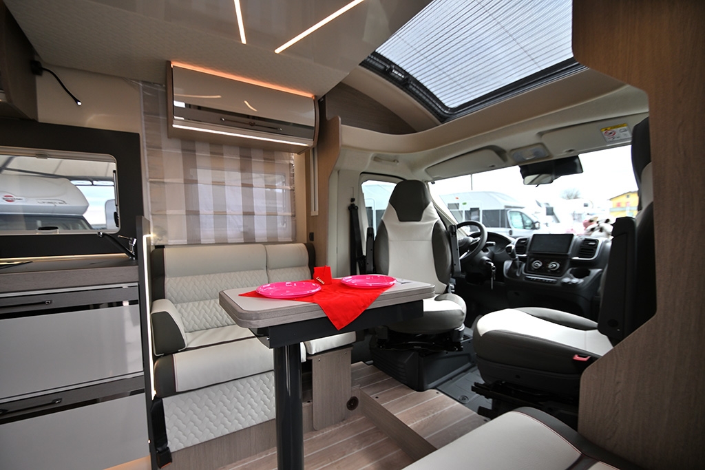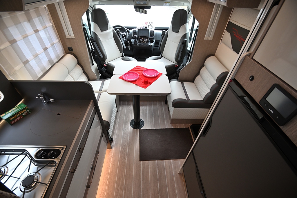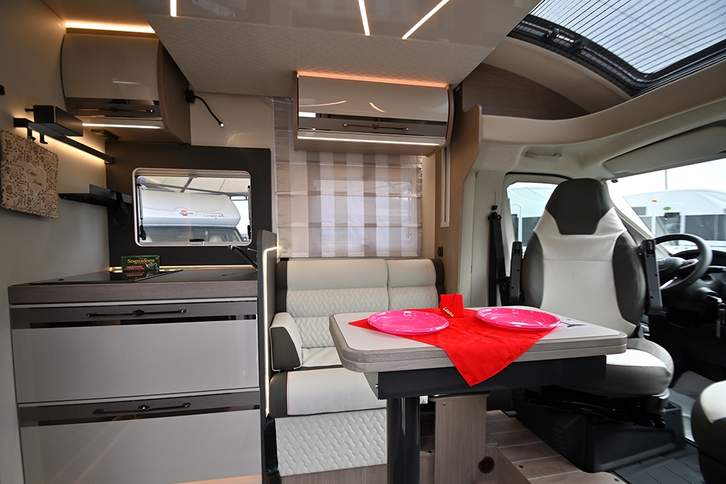 Cambio automatico, ESP, Traction+, Hill Holder, Hill Descent Control, Climatizzatore manuale in cabina, Airbag passeggero, Specchietti retrovisori elettrici e riscaldabili, Fendinebbia, Sensori di pressione degli pneumatici, Pacchetto Extra Safety Fiat (Cruise Control adattivo, assistente alla frenata di emergenza con rilevamento pedoni, assistenza al mantenimento di corsia, riconoscimento segnali stradali, avviso di affaticamento del conducente, sensori pioggia e luce per attivazione automatica di tergicristalli e fari), Cerchi in lega da 16, Freno di stazionamento elettrico, Volante e pomello del cambio rivestiti in pelle, Stazione multimediale con schermo da 9 e funzione Apple Car Play o Android Auto, Telecamera retromarcia, Tendalino, N°2 pannelli solari da 200 W, N°2 batterie al litio da 100 Ah, Doccetta esterna, Presa gas esterna, Cabina di guida di colore Nero, Oscuranti plissettati in cabina, Isofix in dinette, Serbatoio di recupero coibentato e riscaldato, Letto posteriore variabile elettricamente in altezza, Porta cellula XL con finestra, zanzariera e chiusura a due punti centralizzata