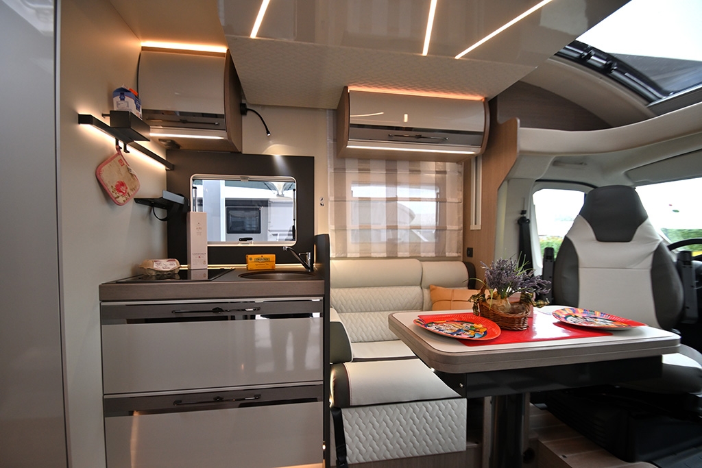Cambio automatico, ESP, Traction+, Hill Holder, Hill Descent Control, Climatizzatore manuale in cabina, Airbag passeggero, Specchietti retrovisori elettrici e riscaldabili, Fendinebbia, Sensori di pressione degli pneumatici, Pacchetto Extra Safety Fiat (Cruise Control adattivo, assistente alla frenata di emergenza con rilevamento pedoni, assistenza al mantenimento di corsia, riconoscimento segnali stradali, avviso di affaticamento del conducente, sensori pioggia e luce per attivazione automatica di tergicristalli e fari), Cerchi in lega da 16, Freno di stazionamento elettrico, Volante e pomello del cambio rivestiti in pelle, Stazione multimediale con schermo da 9 e funzione Apple Car Play o Android Auto, Telecamera retromarcia, Tendalino, N°2 pannelli solari da 200 W, N°2 batterie al litio da 100 Ah, Doccetta esterna, Presa gas esterna, Cabina di guida di colore Nero, Oscuranti plissettati in cabina, Isofix in dinette, Serbatoio di recupero coibentato e riscaldato, Porta cellula XL con finestra, zanzariera e chiusura a due punti centralizzata
