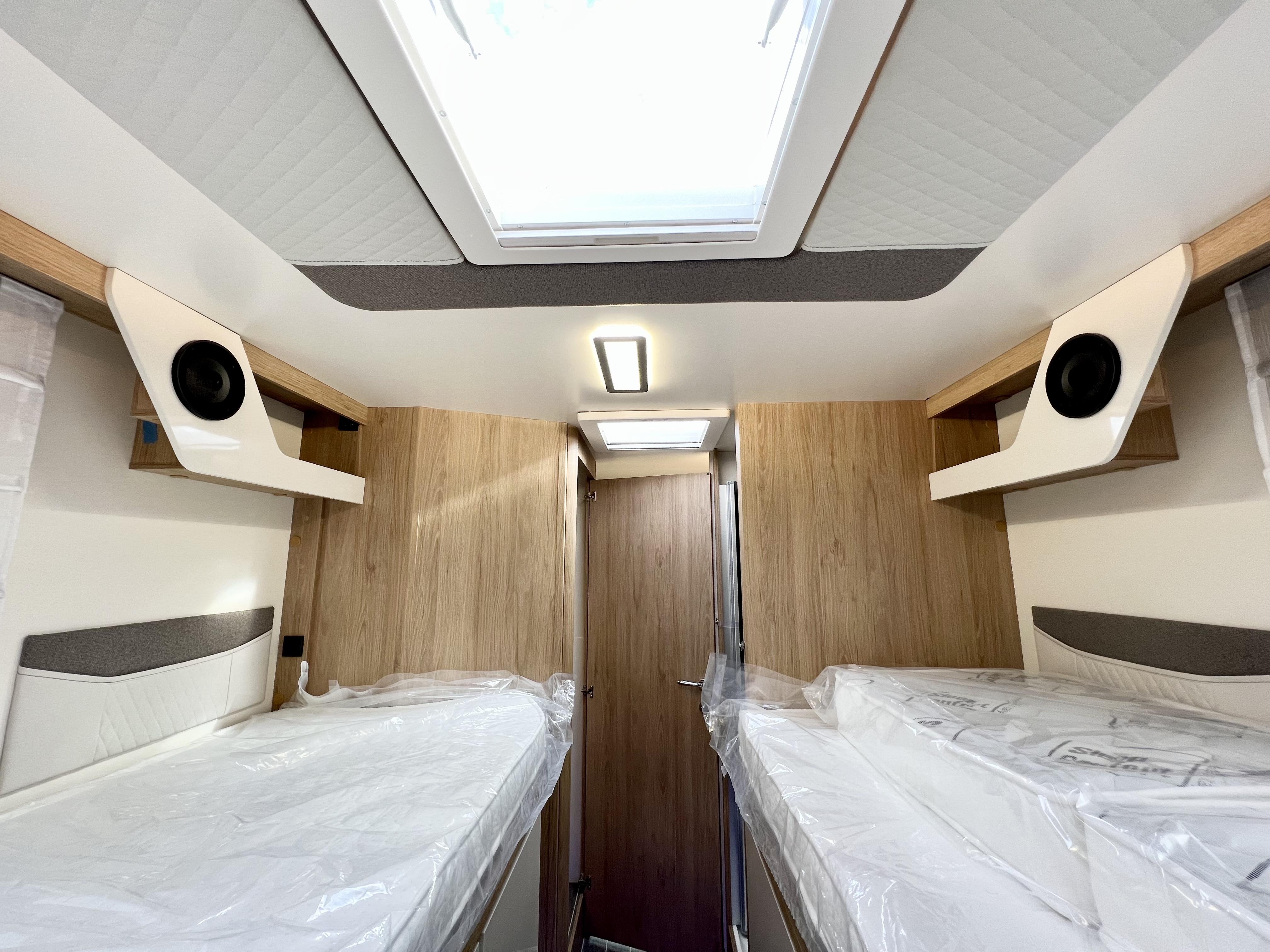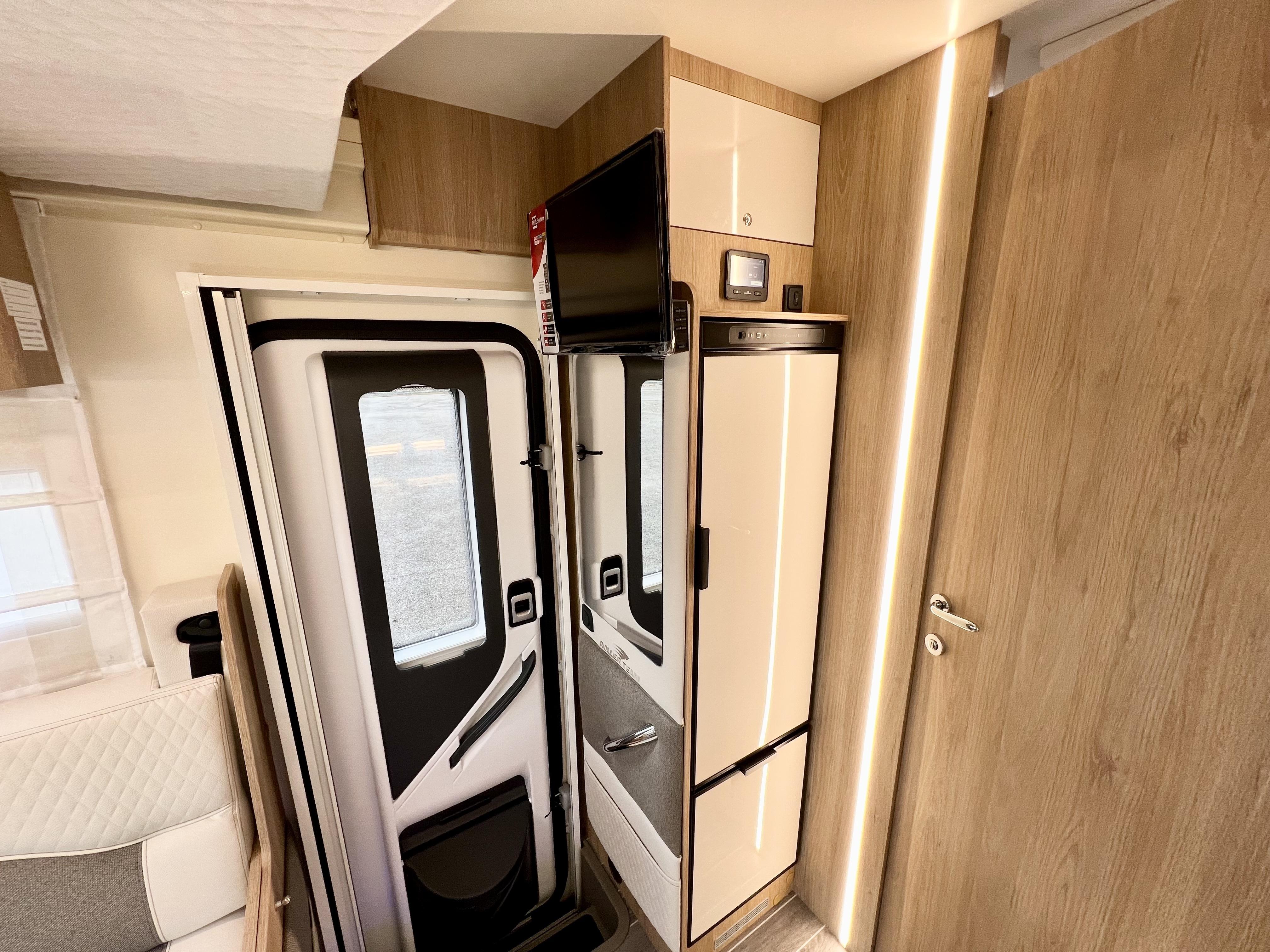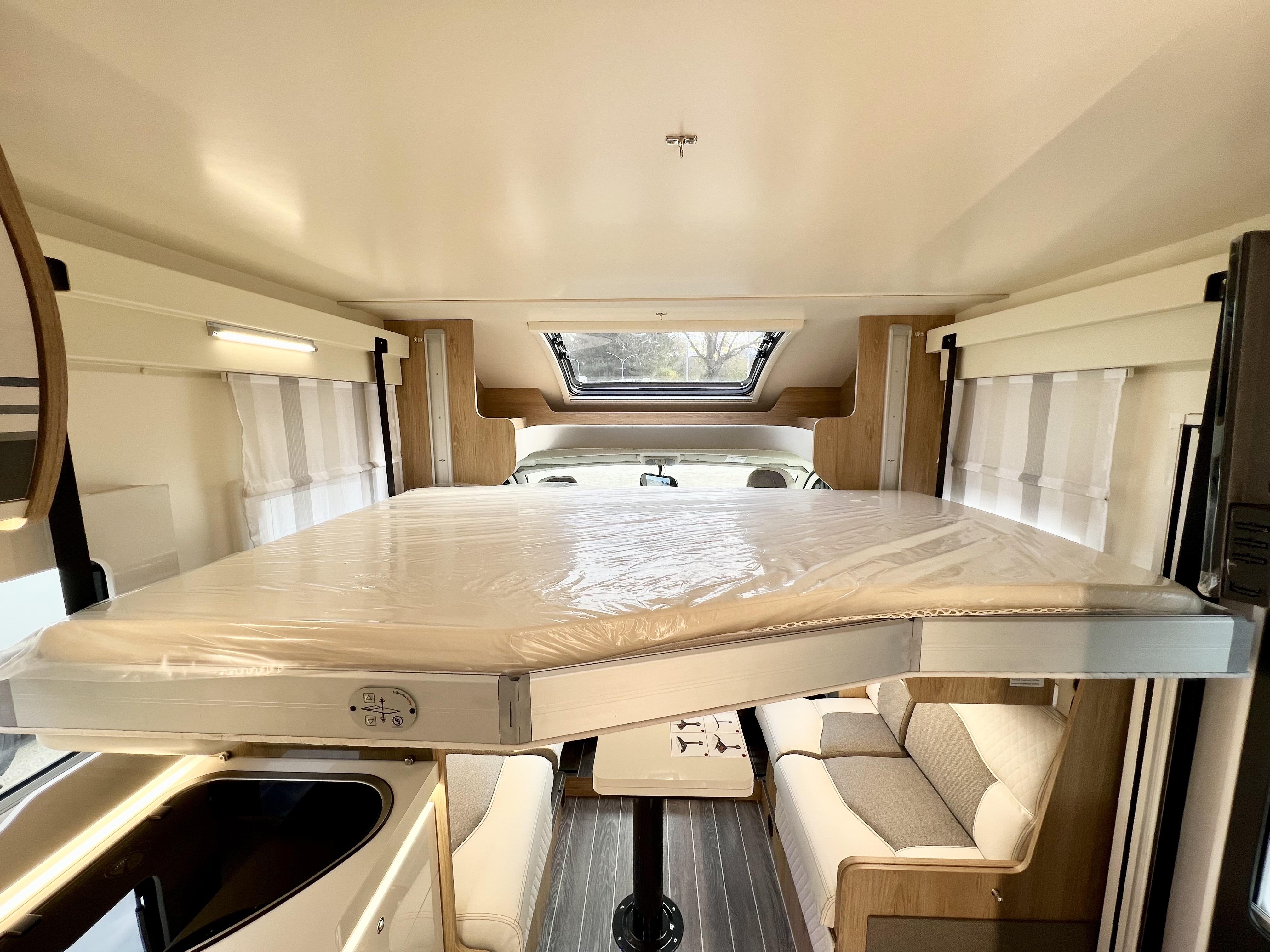 Porta XL con finestra fissa e zanzariera, Start&Stop, Cruise control, Airbag guidatore e passeggero, Clima manuale, Specchi retrovisori con sbrinatore,Fari posteriori a led, Antenna DAB, Cabina e paraurti bianco, Fix e Go, Sedili girevoli con fodere sedili, Doghe nel letto, Presa 220 V in garage, Pannello di controllo touch screen iNet Pro Panel, 10 anni di garanzia infiltrazioni
