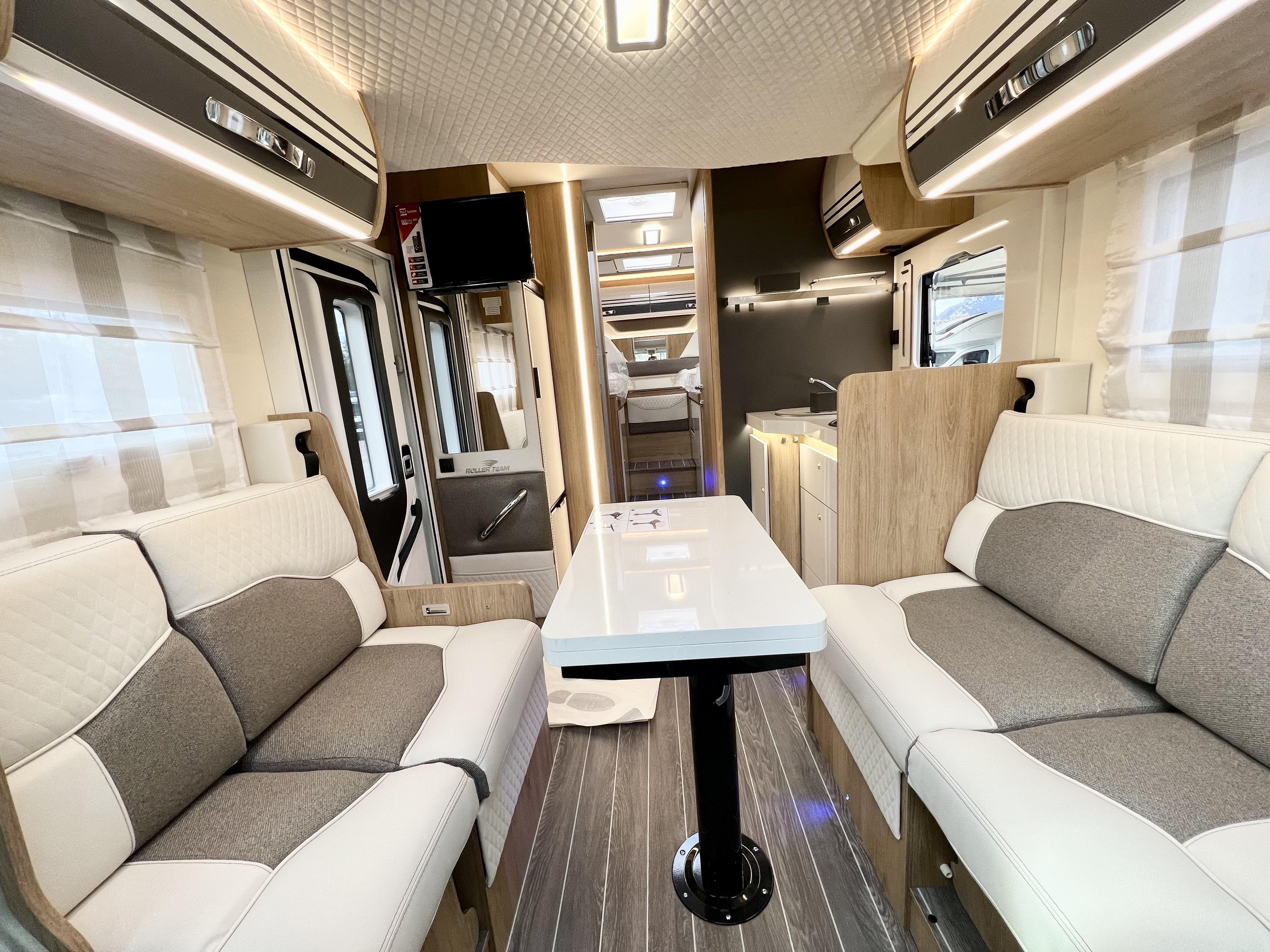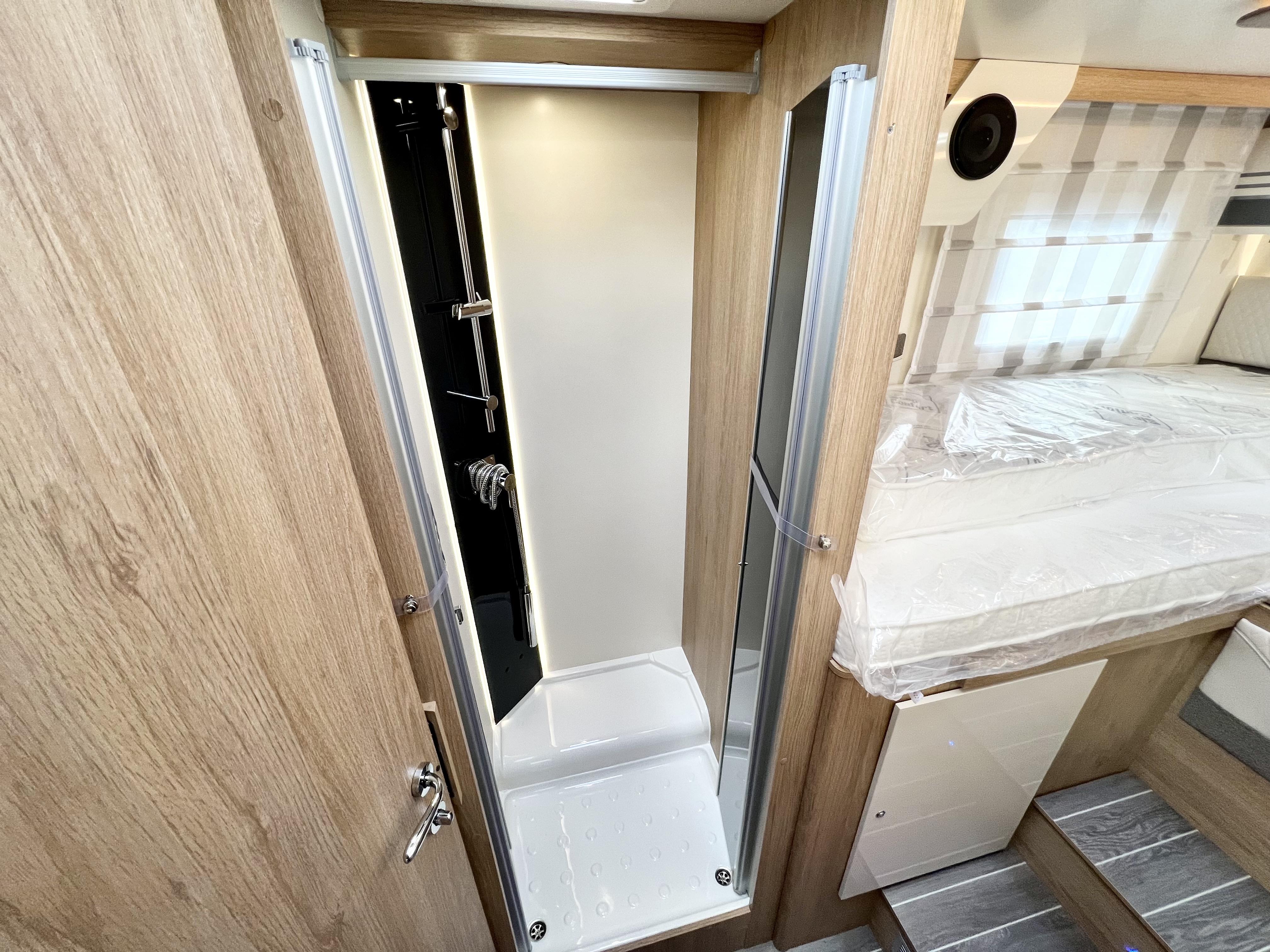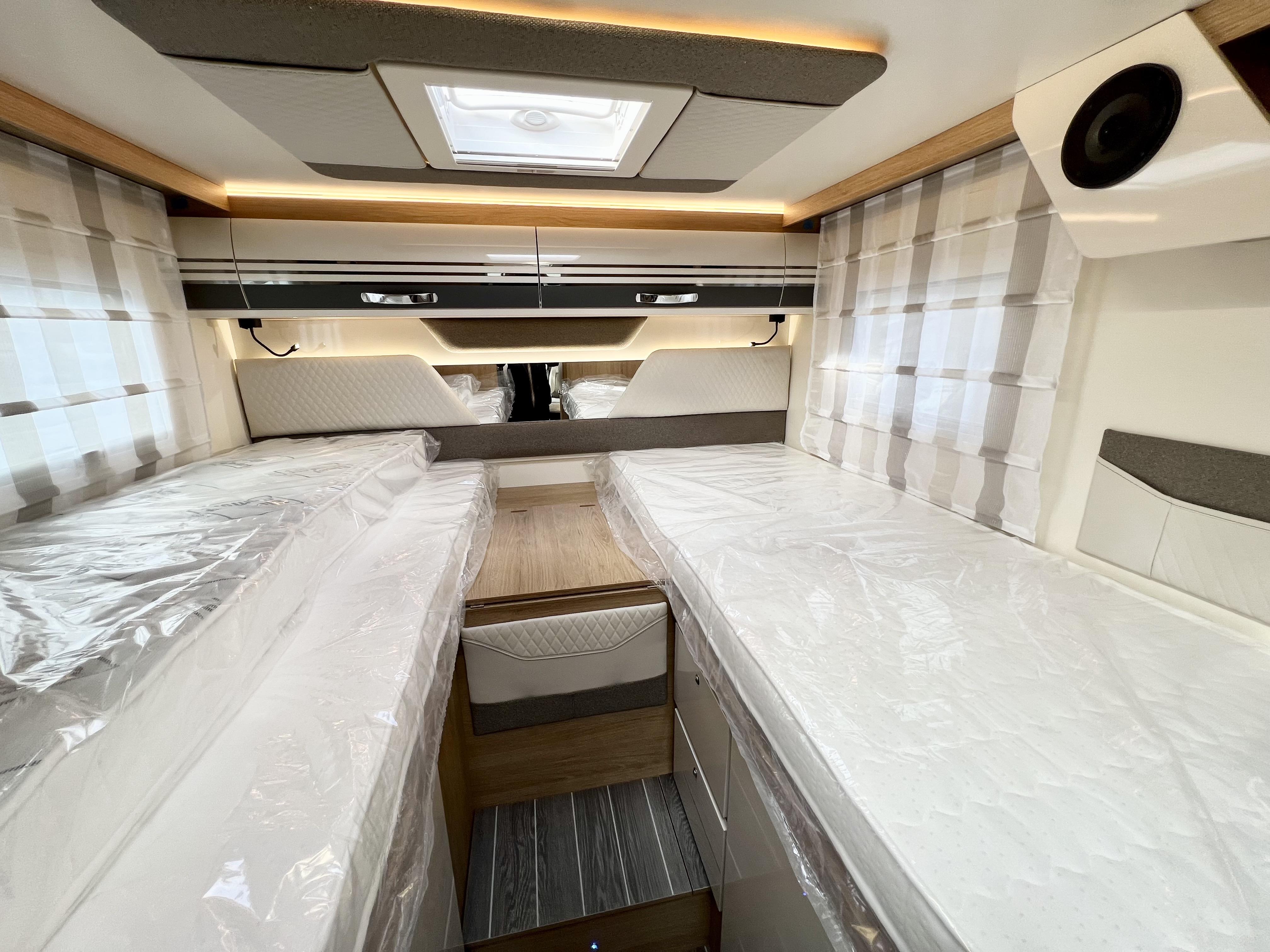 Porta XL con finestra fissa e zanzariera, Start&Stop, Cruise control, Airbag guidatore e passeggero, Clima manuale, Specchi retrovisori con sbrinatore,Fari posteriori a led, Antenna DAB, Cabina e paraurti bianco, Fix e Go, Sedili girevoli con fodere sedili, Doghe nel letto, Presa 220 V in garage, Pannello di controllo touch screen iNet Pro Panel, 10 anni di garanzia infiltrazioni