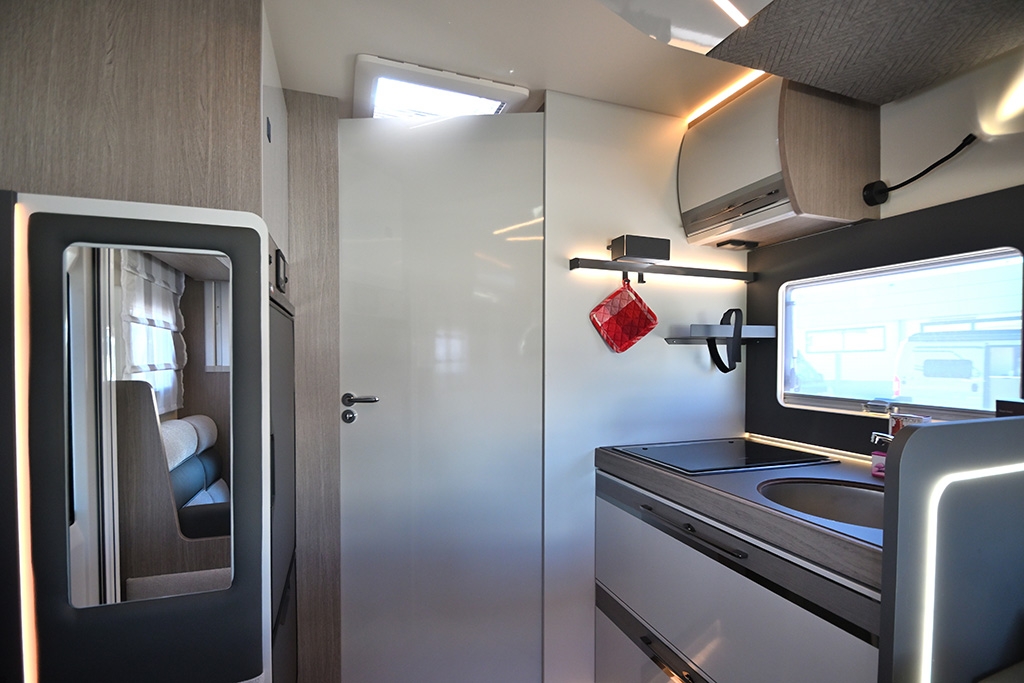 Pacchetto Design Ford (Cerchi in lega da 16, verniciatura cabina Moondust Silver), Sistema di riscaldamento a gasolio Truma Combi 6D. Prezzo totale: € 79.320,00 Chiavi in mano