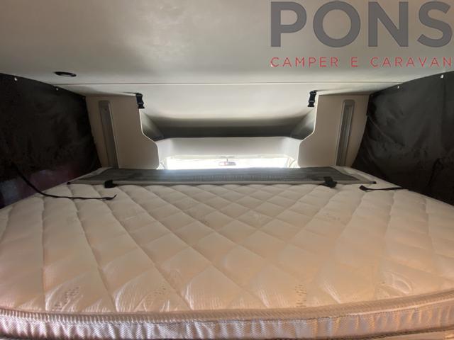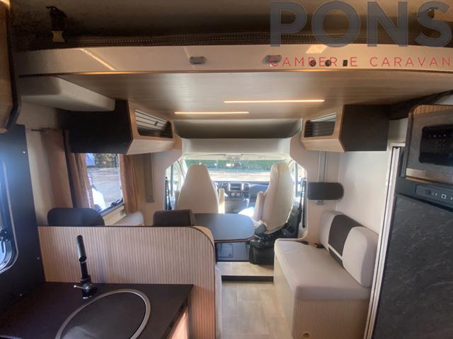 sviluppato in una lunghezza di soli 6,97 mt il veicolo dispone di tutto ciò che ci occorre: letti gemelli in coda con possibilità di trasformazione in matrimoniale, altri due posti si ricavano dal letto basculante elettrico sopra la dinette. Bagno e doccia separati in un due ambienti diversi. Blocco cucina con piano cottura a 3 fuochi, frigo grande frontale con scomparto freezer.
