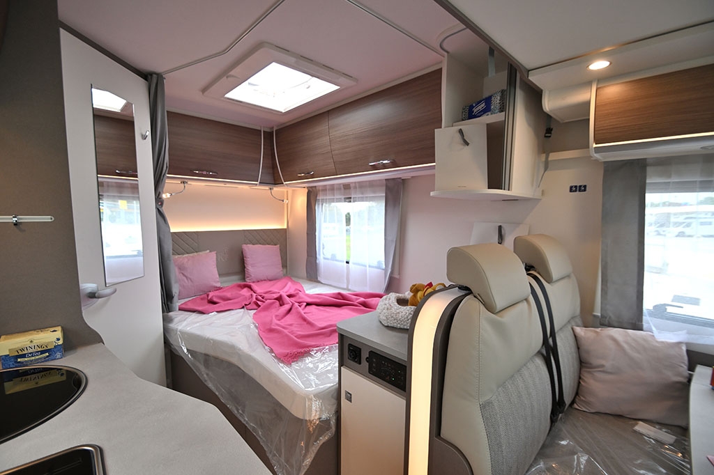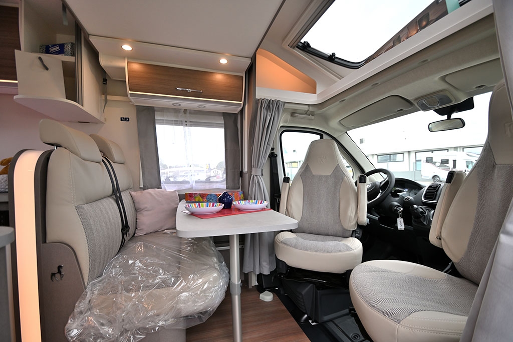 Pacchetto Comfort (Pedana in legno per piatto doccia, sedili della cabina rivestiti in coordinato con tappezzeria, prese elettriche aggiuntive in cucina e gavone, specchio e gancio appendiabiti), Letto basculante elettrico, Sky-roof su cupolino. Prezzo totale del veicolo in pronta consegna inclusi optional e spese di trasporto, immatricolazione e messa su strada: € 68.783,00 chiavi in mano