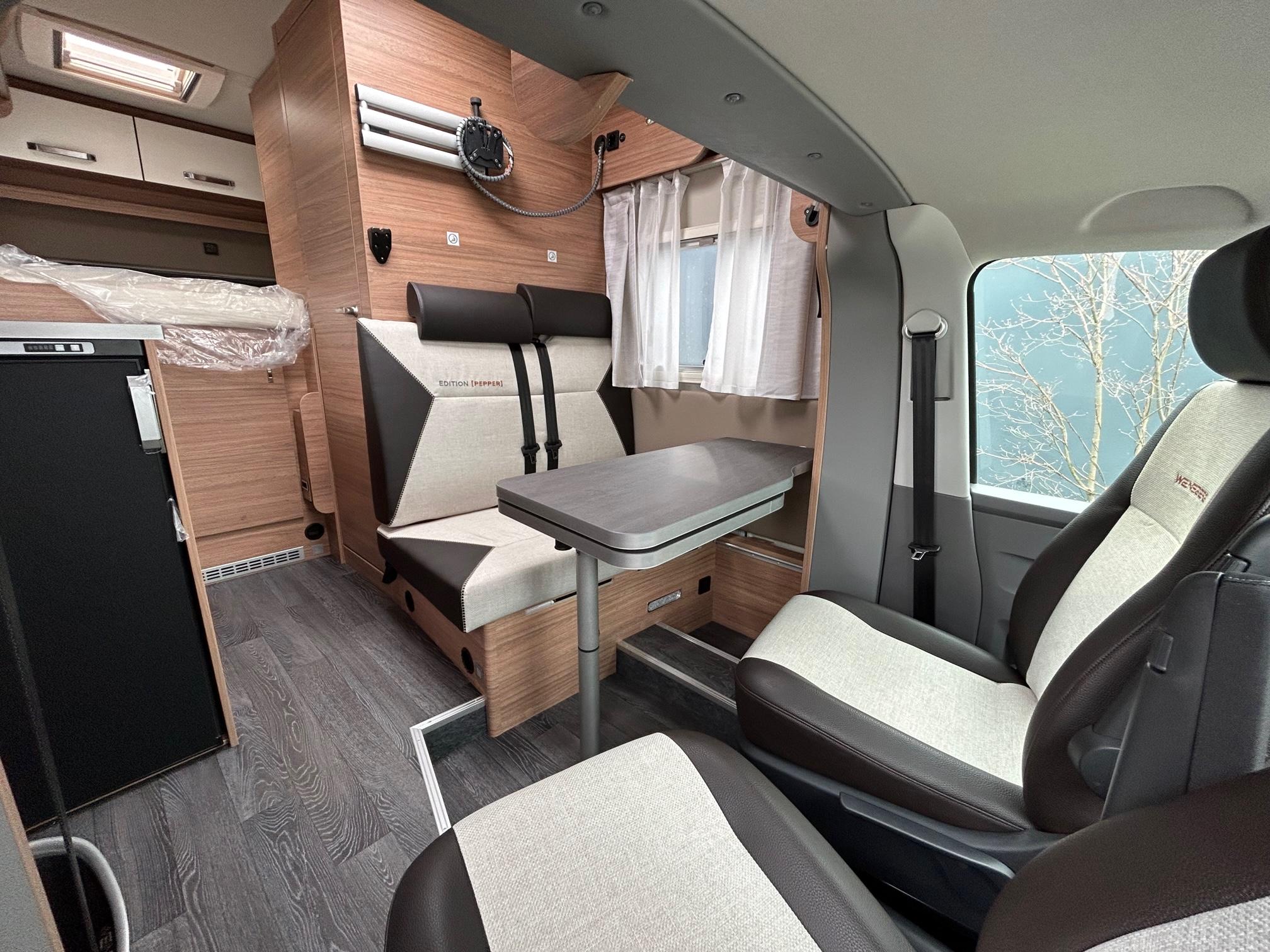EDIZIONE SPECIALE PEPPER (di serie) : Assale anteriore con carico utile maggiorato – Assale posteriore, versione larga – Chassis con verniciatura pastello: bianco Arctic – Cornice della griglia del radiatore nel colore della carrozzeria -Paraurti e parti di fissaggio verniciati nel colore della carrozzeria – Pneumatici da 16? – Cerchi in lega per pneumatici di serie – Pneumatici 4 stagioni per camper – Aria condizionata in cabina di guida, semiautomatica TEMPMATIC – Airbag lato guida e lato passeggero – Sedile autista regolabile in altezza – Sedile lato passeggero regolabile in altezza – Braccioli su entrambi i lati del sedile del conducente e del passeggero – Volante multifunzione – Volante regolabile in inclinazione ed altezza – Volante e leva del cambio in pelle – Sedili cabina standard MERCEDES – Cab seats swivelling – Oscuranti per vetri anteriori e laterali – Tempomat Cruise Control – ESP – ABS – Blocco elettronico di avviamento – Servosterzo elettromeccanico – Luci di stop adattive -Assistente luci di guida – Funzione ECO Start-Stop – Sistema di assistenza in presenza di vento laterale – Sistema di assistenza alla partenza in salita – Serbatoio carburante da 65 litri – Presa USB nella cabina di guida – Radio DAB+, sistema di navigazione All-in-One con software dei campeggi, senza CD/DVD, incl. antenna DAB+/FM, aggiornamento delle mappe per 3 anni – Videocamera per la retromarcia completa di cablaggi – Carico max. del garage posteriore: 250 kg – Porta d’ingresso WEINSBERG EXCLUSIV: con finestra, illuminazione Coming Home integrata, sistema di chiusura multipla, cerniere nascoste, – Zanzariera porta -Sistema di chiusura con un’unica chiave – Easy-Travel-Box WEINSBERG accessibile dall’esterno: incl. riempimento dell’acqua, rubinetti per le acque chiare e acque grigie, collegamento esterno – Sportello di servizio per ServiceBox 70 x 40 cm, anteriore sx – Gavone portabombole di facile accesso tramite sportello di servizio laterale – Portellone garage 80 x 115 cm, dx, sx – Finestre SEITZ S7 – Tenda a rullo combi a cassetta (chiusa) per finestra in cucina – Estensione per trasformazione letti gemelli in letto matrimoniale – tappezzeria: MALABAR – Pacchetto COZY-HOME EDITION [PEPPER] composto da: 2 cuscini decorativi per la dinette, 2 cuscini per il letto, 2 coperte, 1 runner – Frigorifero da 142 litri – Riscaldamento TRUMA Combi 6 – TRUMA iNetX Master – Supporto TV – Tendalino 405 x 250 cm, bianco – Buono MediKit: voucher per un esclusivo kit di pronto soccorso (composto da: spray per ferite, spray disinfettante ed alcuni farmaci da banco)