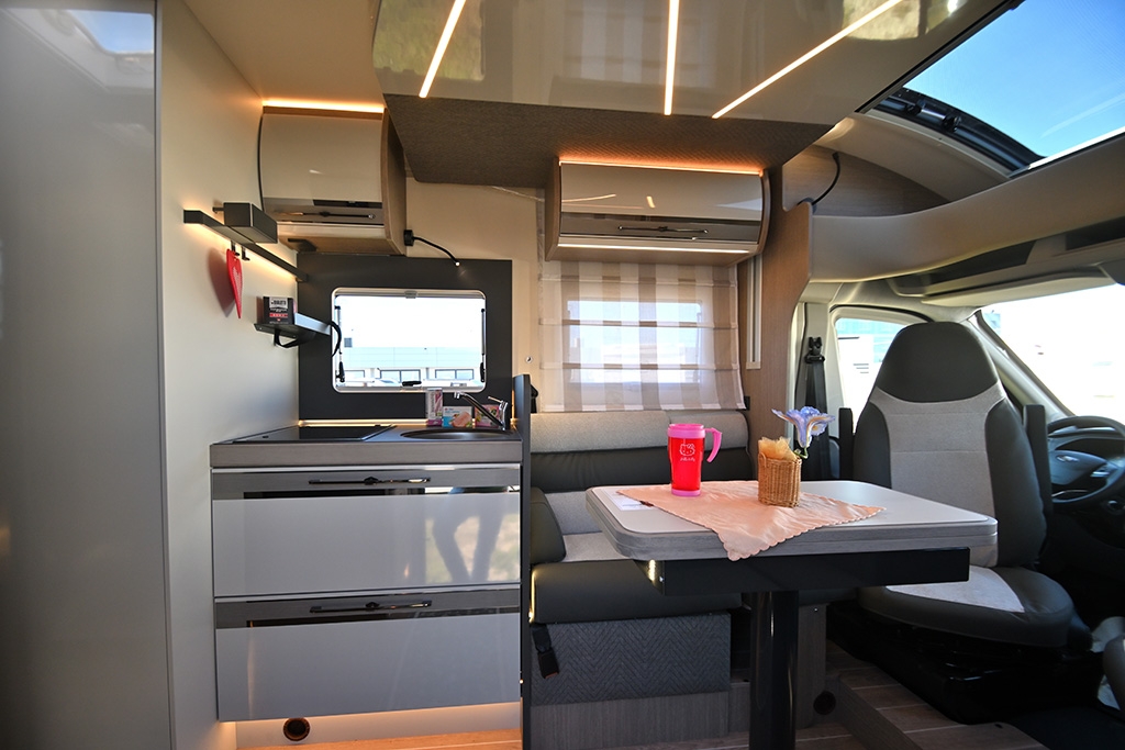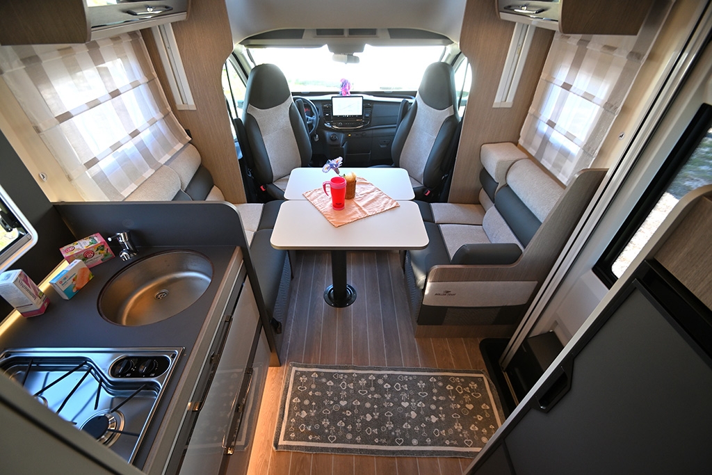 Pacchetto Design Ford (Cerchi in lega da 16, verniciatura cabina Moondust Silver), Sistema di riscaldamento a gasolio Truma Combi 6D. Prezzo totale: € 79.320,00 Chiavi in mano