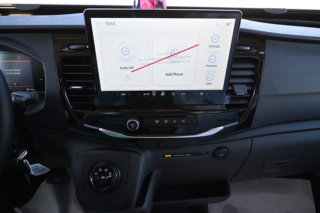 Cambio automatico, ESP, Hill Holder, Climatizzatore automatico in cabina, Airbag passeggero, Cruise Control, Fari fendinebbia, Sistema Start & Stop, Specchietti retrovisori regolabili elettricamente e riscaldabili, Stazione multimediale SYNC 4 con schermo touch da 12, Bluetooth, Apple Car Play e Android Auto, Telecamera di retromarcia, Sensori di parcheggio anteriori, Accensione automatica fari, Tergicristalli automatici con sensore pioggia, Pre-Collision Assist Camera, Avviso e assistenza mantenimento corsia, Riconoscimento dei segnali stradali di velocità, Sensori pressione degli pneumatici, Freno di stazionamento elettrico, Pannello solare, Tendalino, Oscuranti plissettati in cabina, Sky-Roof su cupolino anteriore, Porta cellula XL con finestra, zanzariera e chiusura centralizzata, Letto posteriore variabile elettricamente in altezza