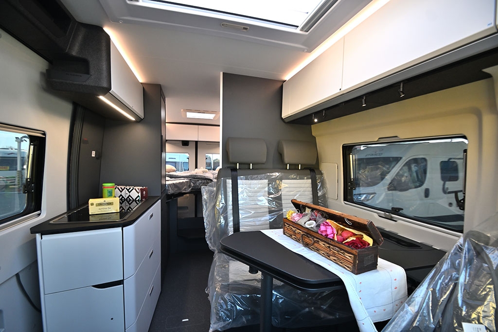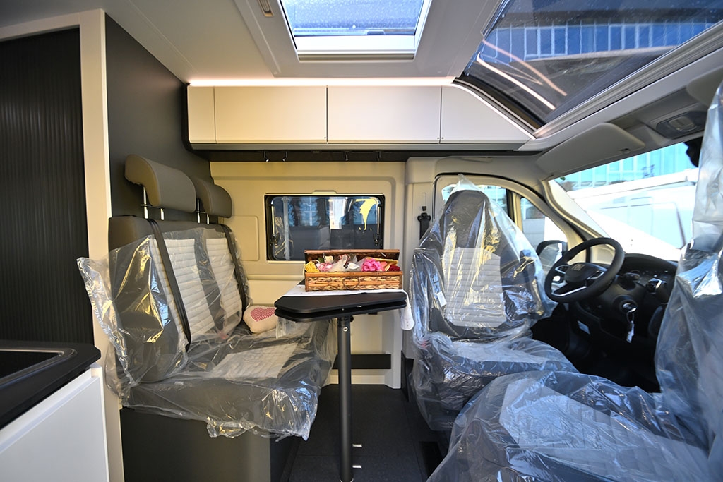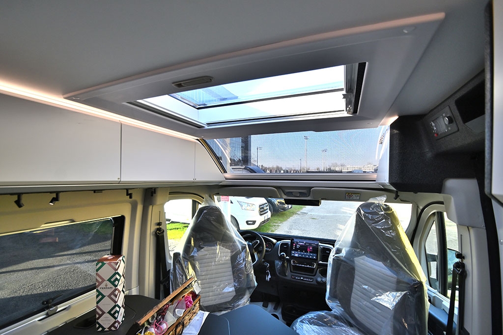 Climatizzatore automatico in cabina, Airbag passeggero, Cruise Control, ESC, Hill Holder, Traction+, Hill Descent Control, Sistema Start & Stop, Fendinebbia anteriori, Specchietti retrovisori regolabili elettricamente e riscaldabili, Cerchi in lega da 16, Stazione multimediale Fiat Uconnect da 10 con Car Play, Telecamera retromarcia, Postazione di ricarica wireless per smartphone, Quadro strumenti digitale, Sensori di parcheggio posteriori, Volante e pomello del cambio rivestiti in pelle, Cupolino panoramico, Sedili cabina Captain Chair rivestiti in coordinato con la tappezzeria, Oscuranti plissettati in cabina, Zanzariera su portellone laterale, Gradino esterno elettrico, Sistema Isofix, Serbatoio di recupero coibentato e riscaldabile, dotato di valvola di scarico elettrica, Luce esterna a LED, Regolatore di pressione gas Truma MonoControl CS, Riscaldamento a gasolio Truma Combi 4D