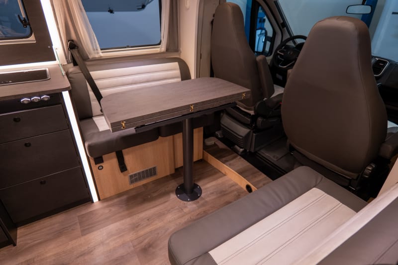 Rif. interno: 255009 - Serbatoio carburante 90 l (€50,00), Colore chassis grigio graffite incl. pareti laterali in lamiera liscia argento (€1.955,00), Serbatoio acque grigie isolato (€185,00), Oscuranti cabina pieghevoli (€685,00), Predisposizione cavi per la retrocamera (€175,00), Riscaldamento Combi E (con elemento riscaldante elettricamente ) incluso pannello di controllo digitale (€570,00)