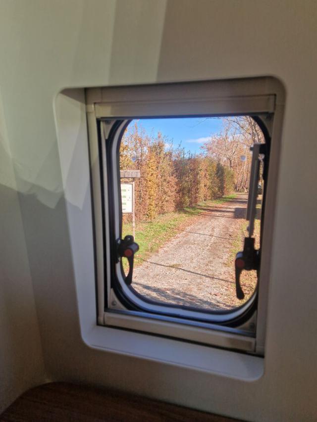 Finestra a compasso, con oscurante e zanzariera (vano toilette)