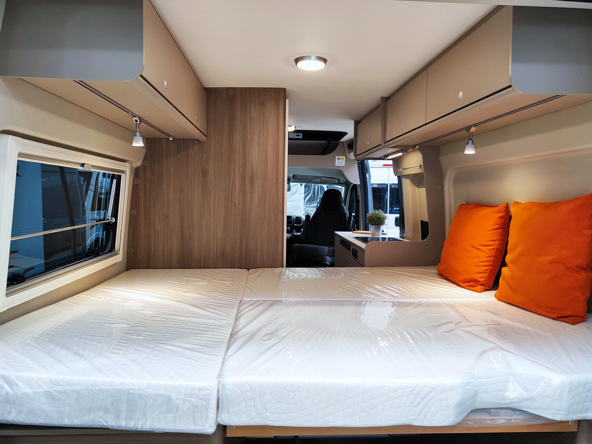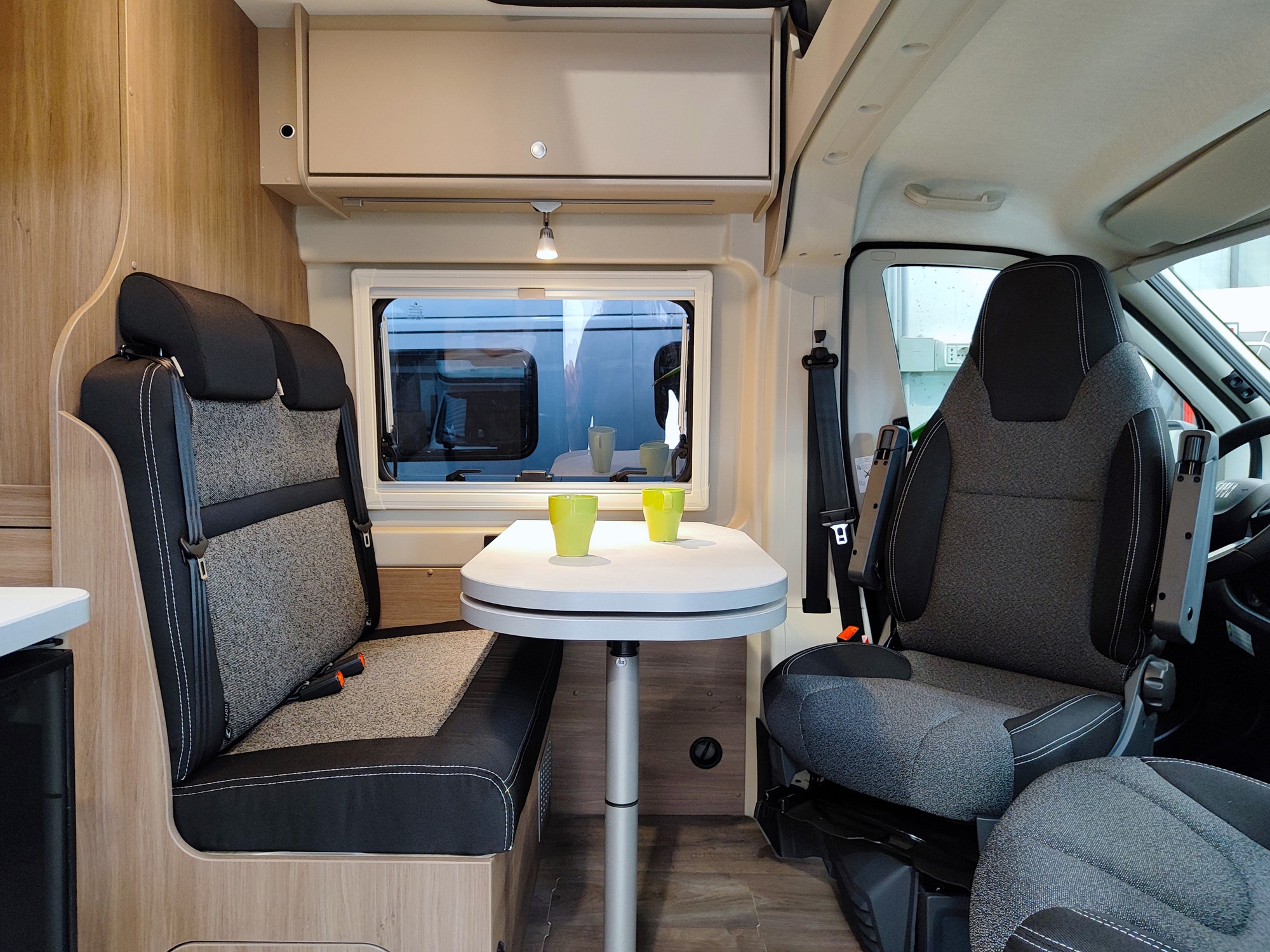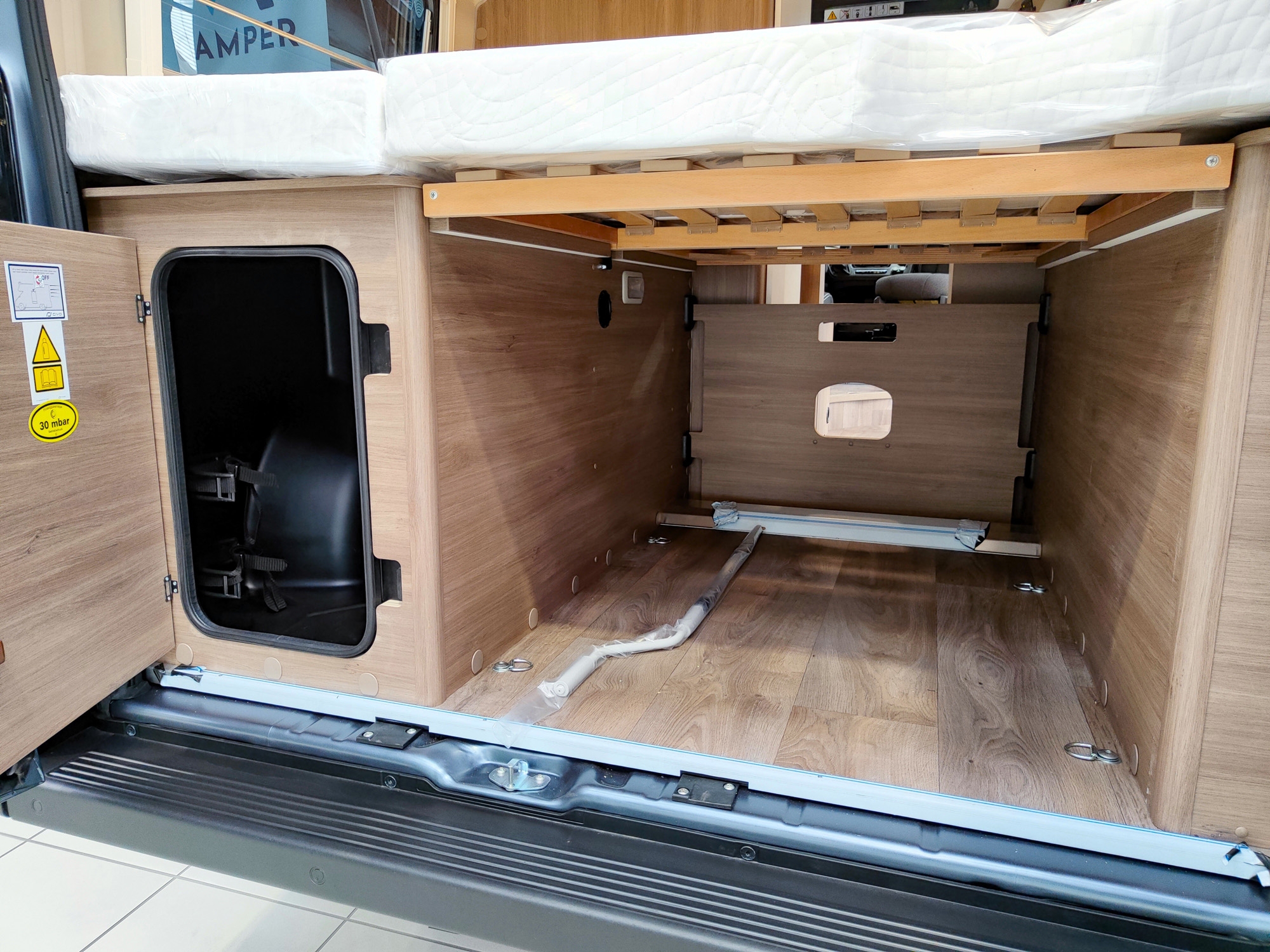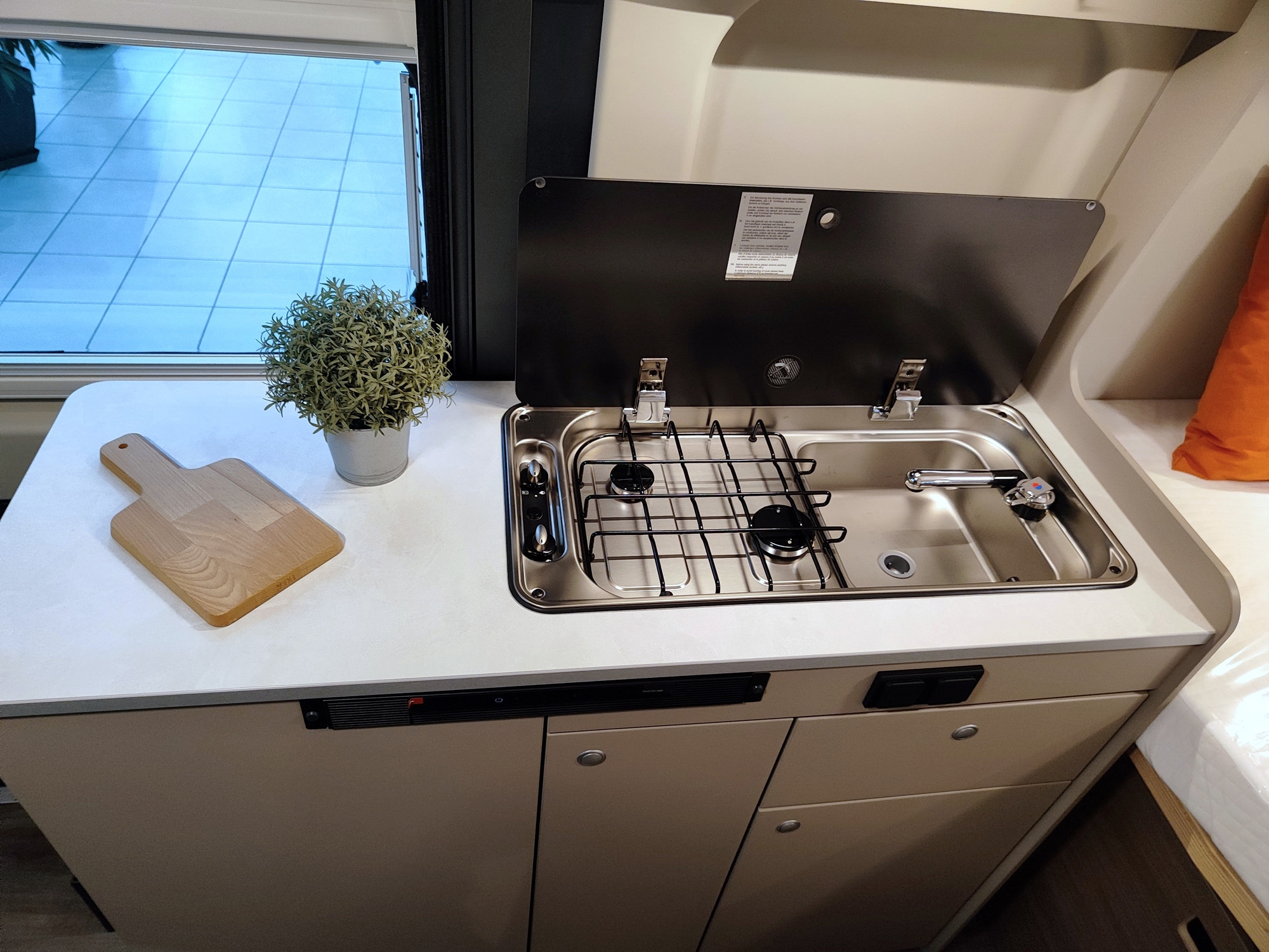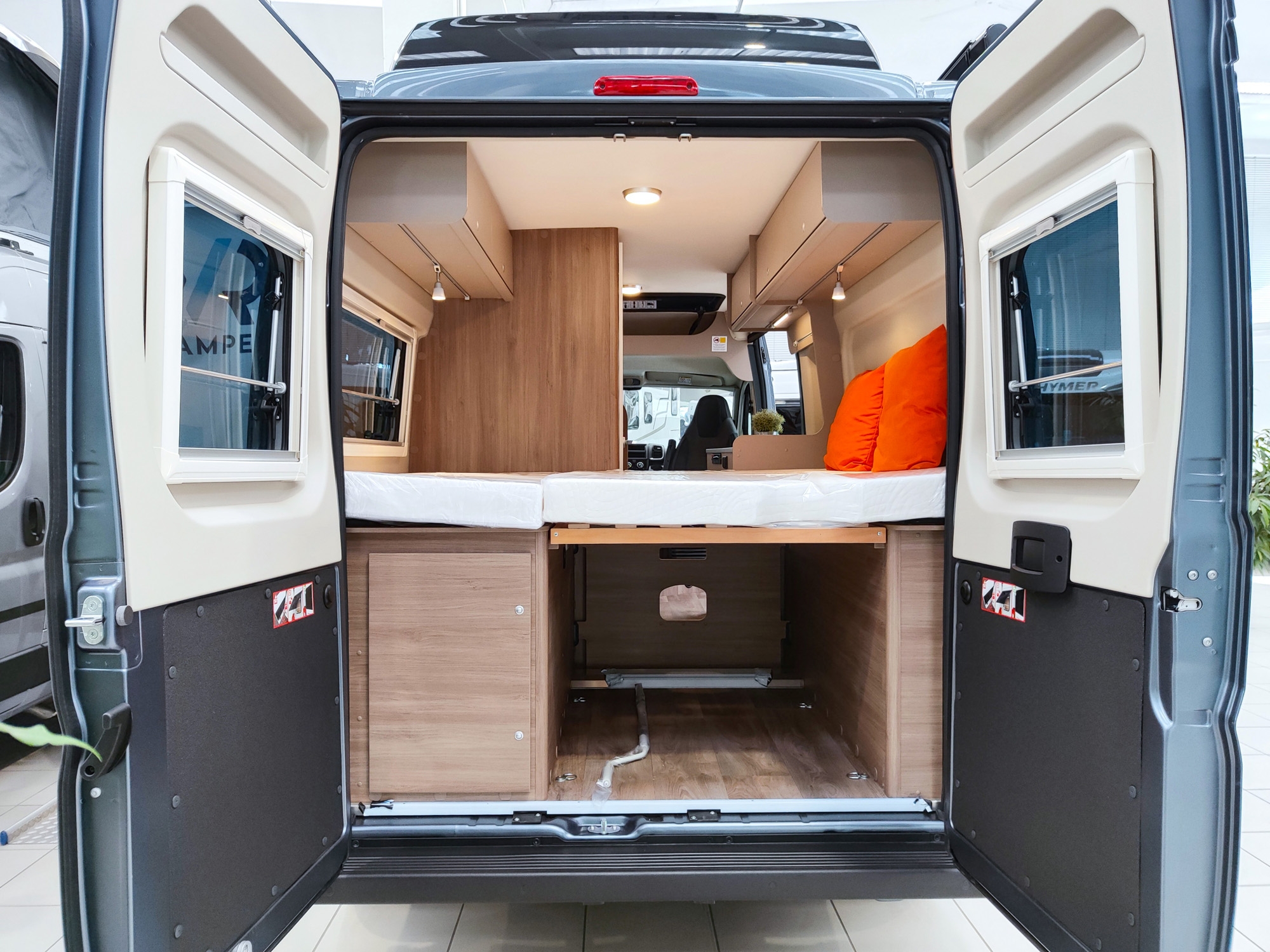 Camper furgonato nuovo con tetto sollevabile. Pratico per la vita quotidiana grazie alle misure compatte, ma sempre equipaggiato con tutto per le vacanze.
