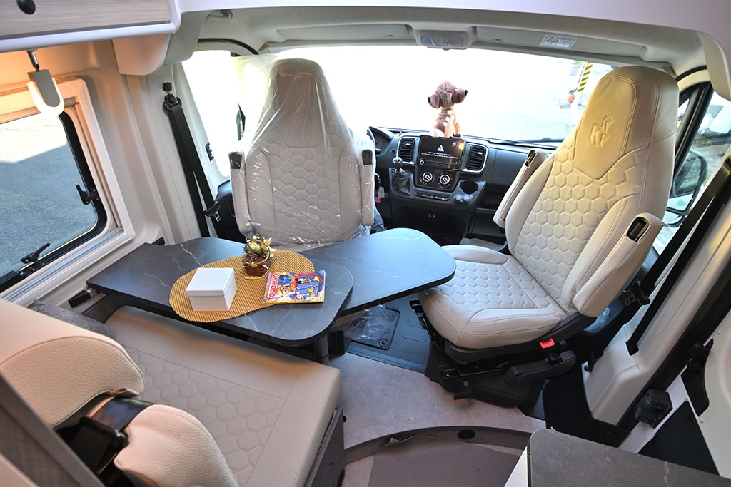 Pacchetto Complete Selection (Tendalino antracite, stazione multimediale, telecamera retromarcia, finestre con cornice, predisposizione pannello solare e clima cellula), Riscaldamento a gasolio Truma Combi 6D, Tappezzeria opzionale Portofino. Prezzo totale: € 58.970,00 Chiavi in mano