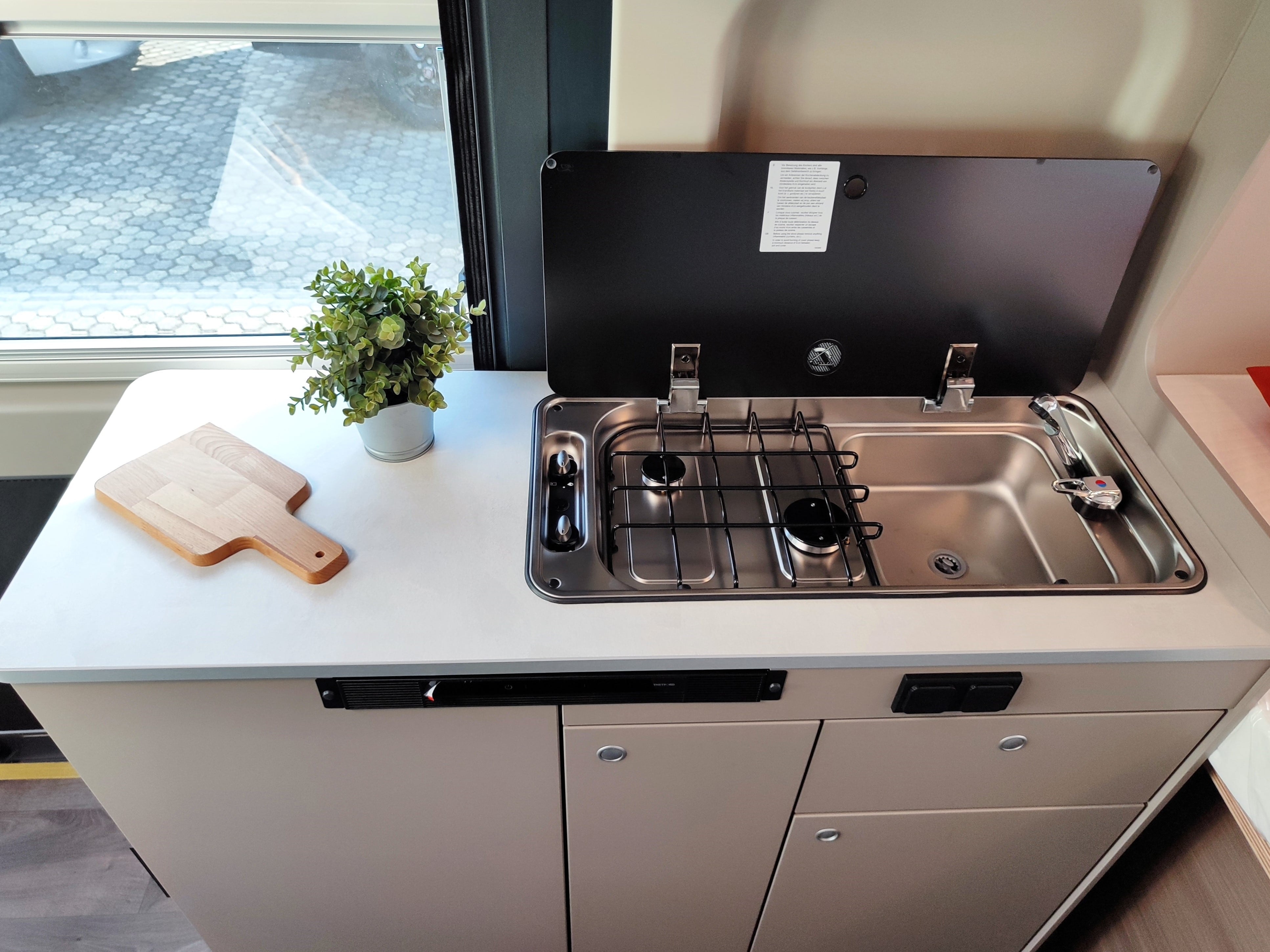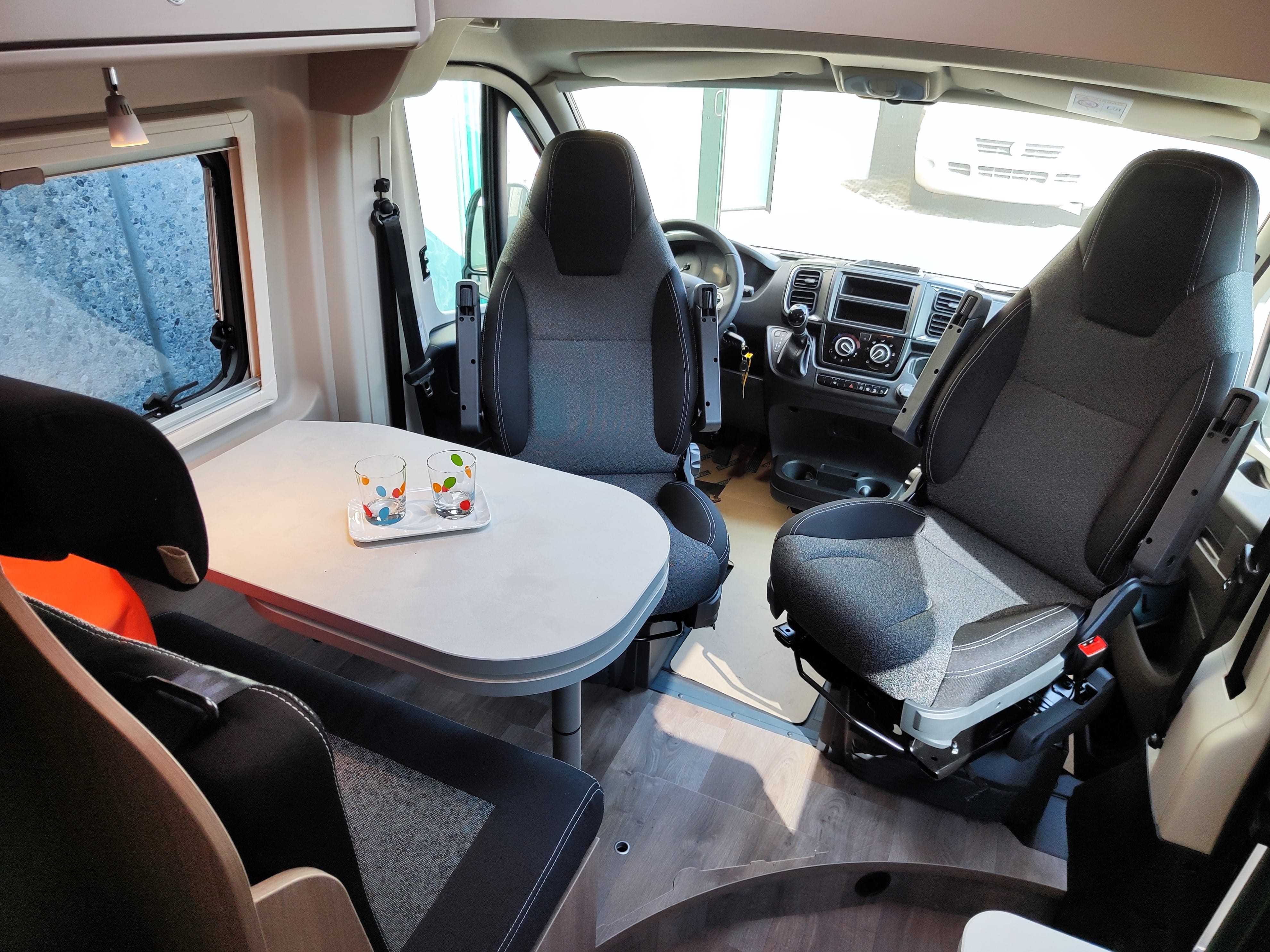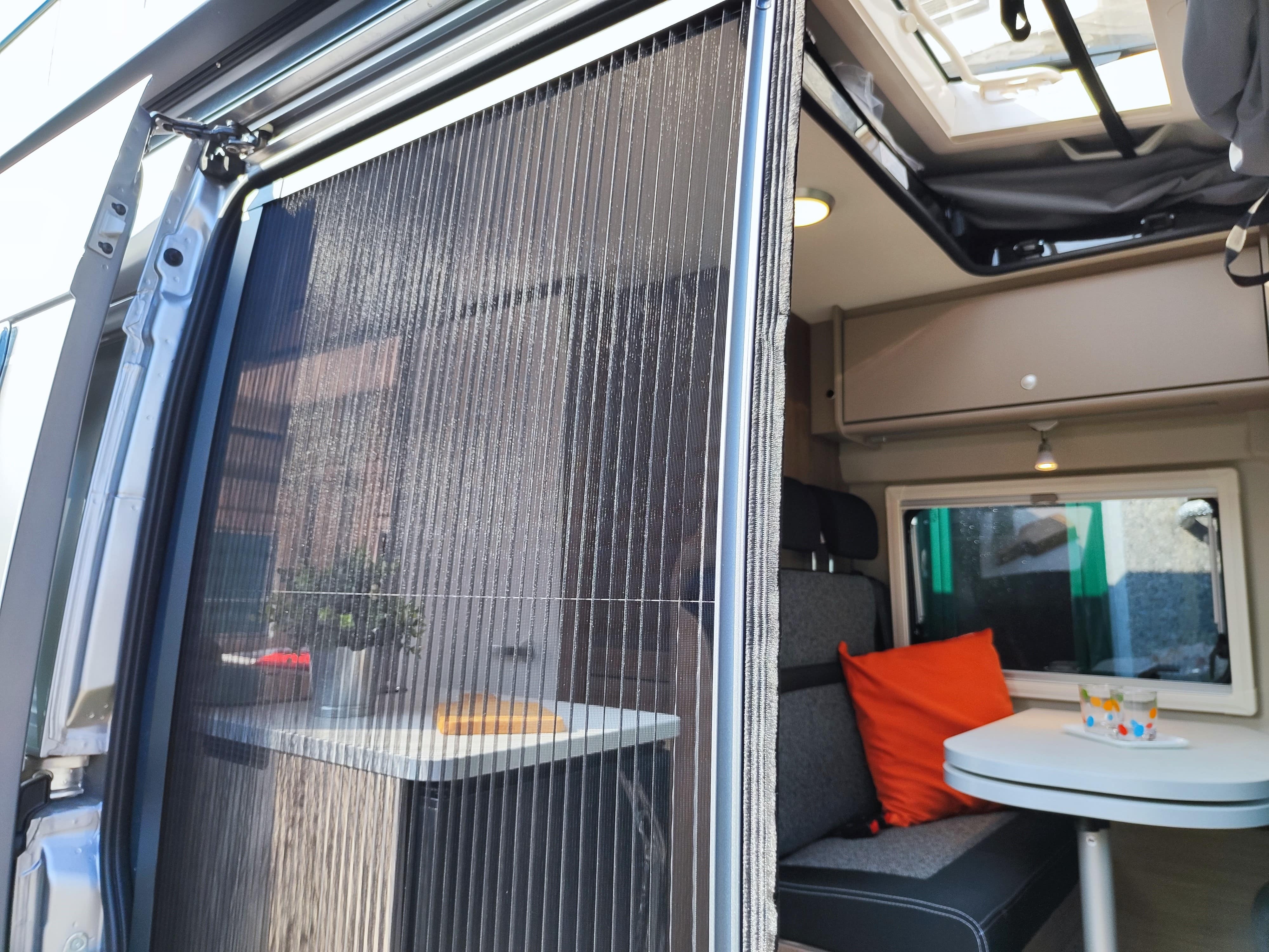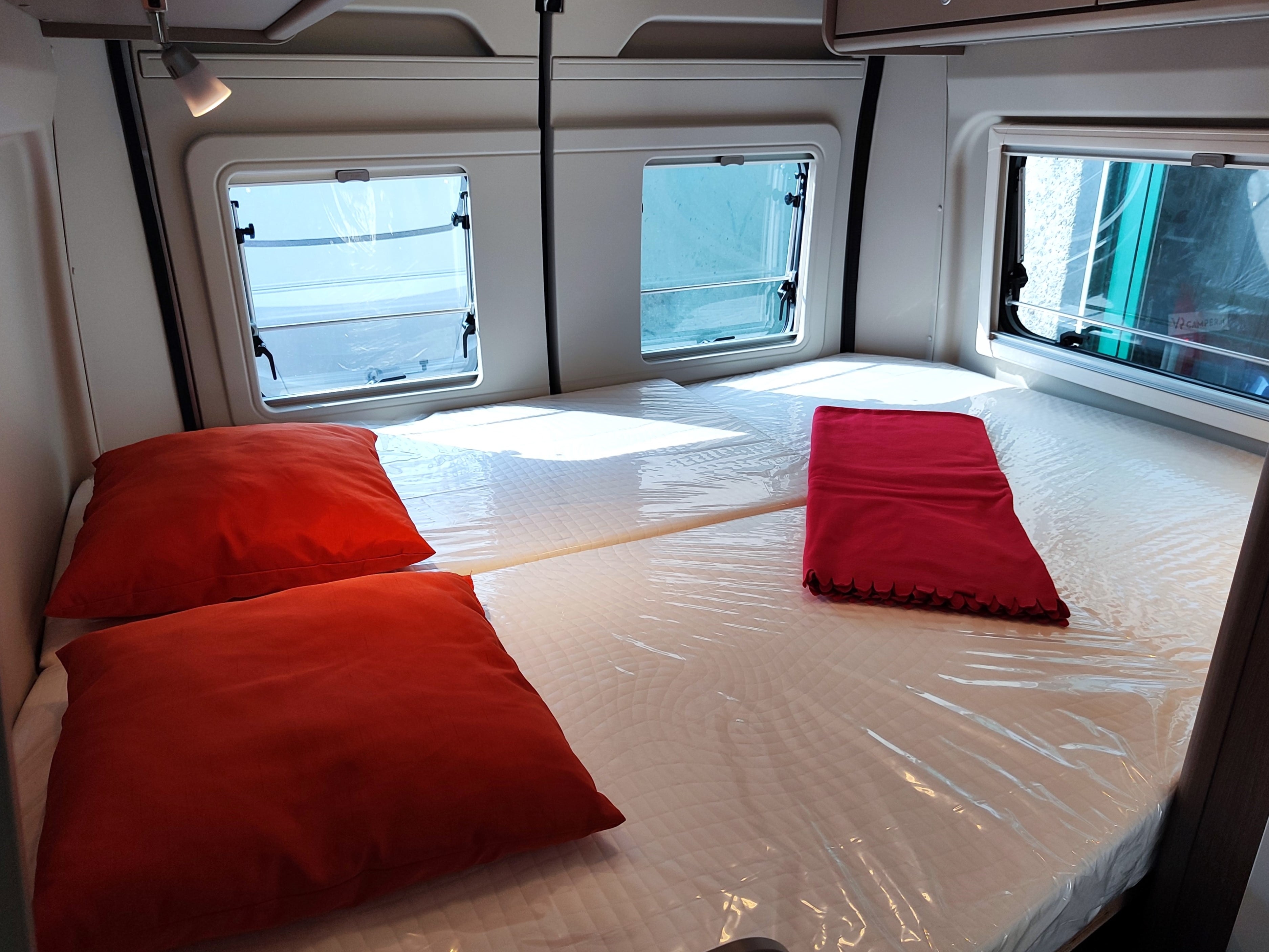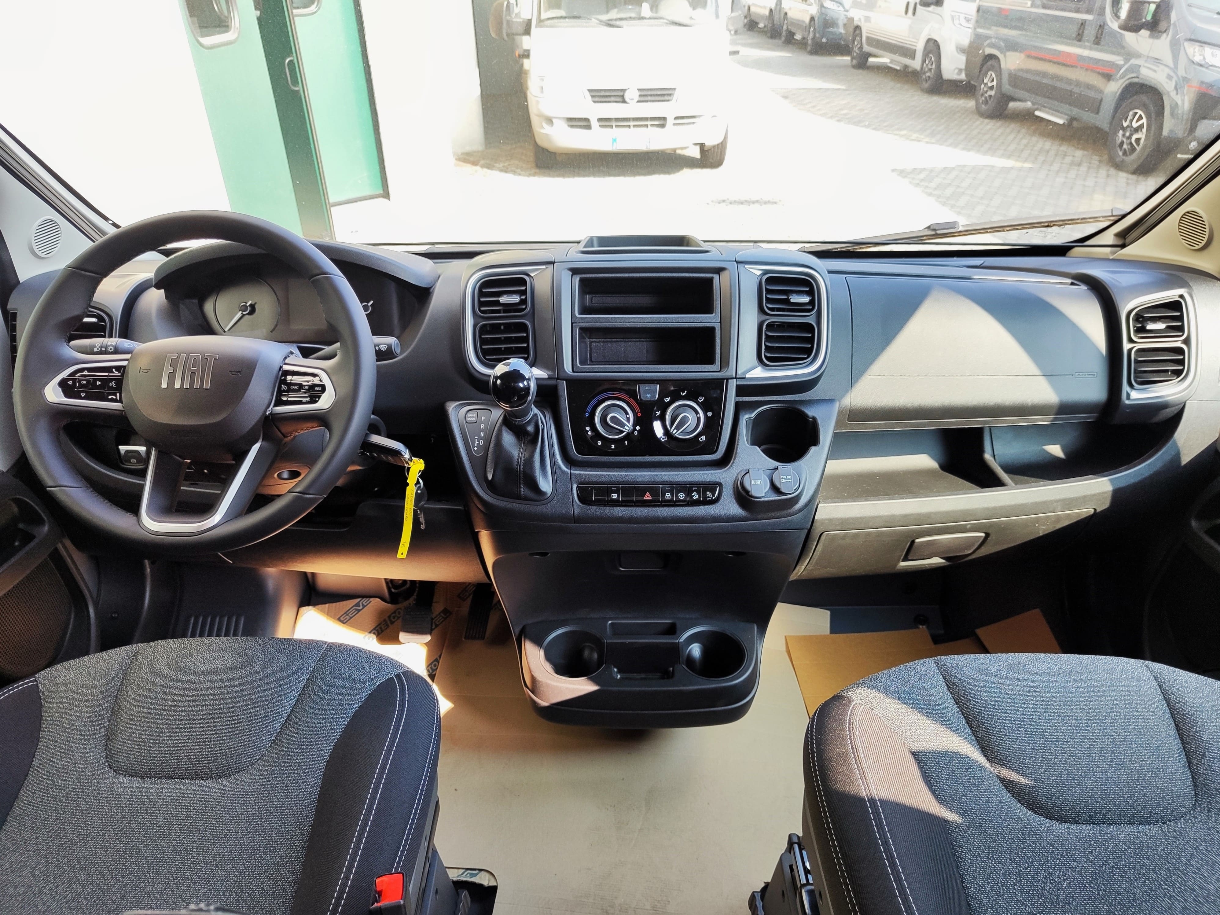 Camper furgonato nuovo con tetto sollevabile e 4 posti letto letto. Pratico e versatile, sempre equipaggiato con tutto per partire. Su Fiat Ducato 140 CV.