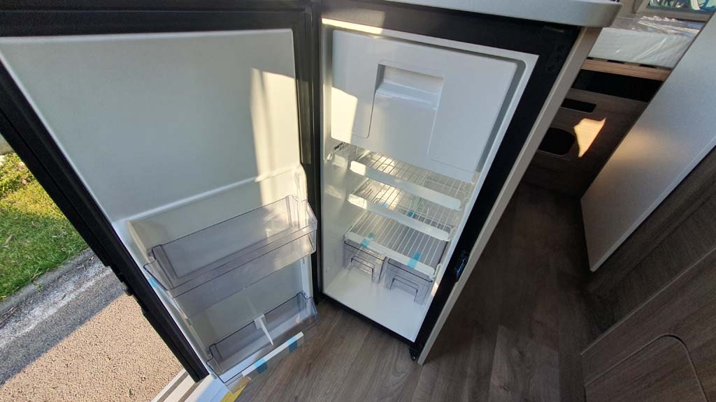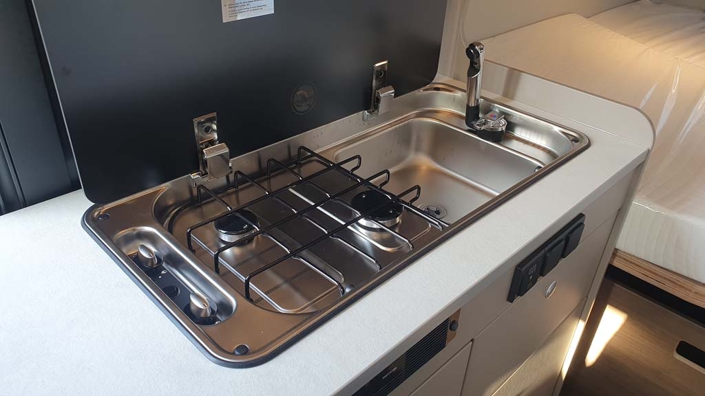 Quest’ultima è fornita di 2 fuochi, lavandino, un ampio frigorifero a compressore da 90 Lt ed un utilissimo piano di appoggio.