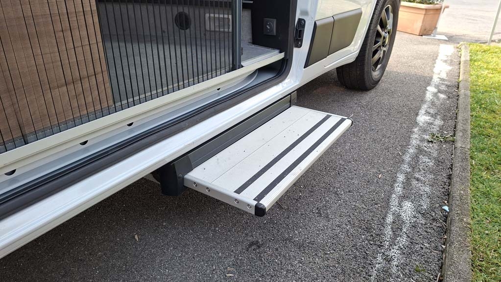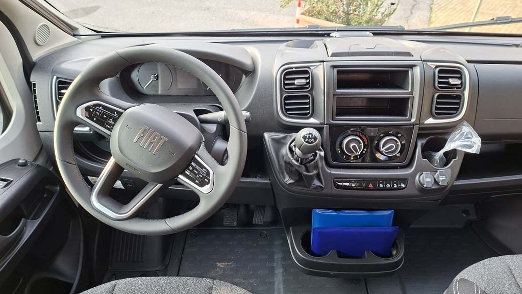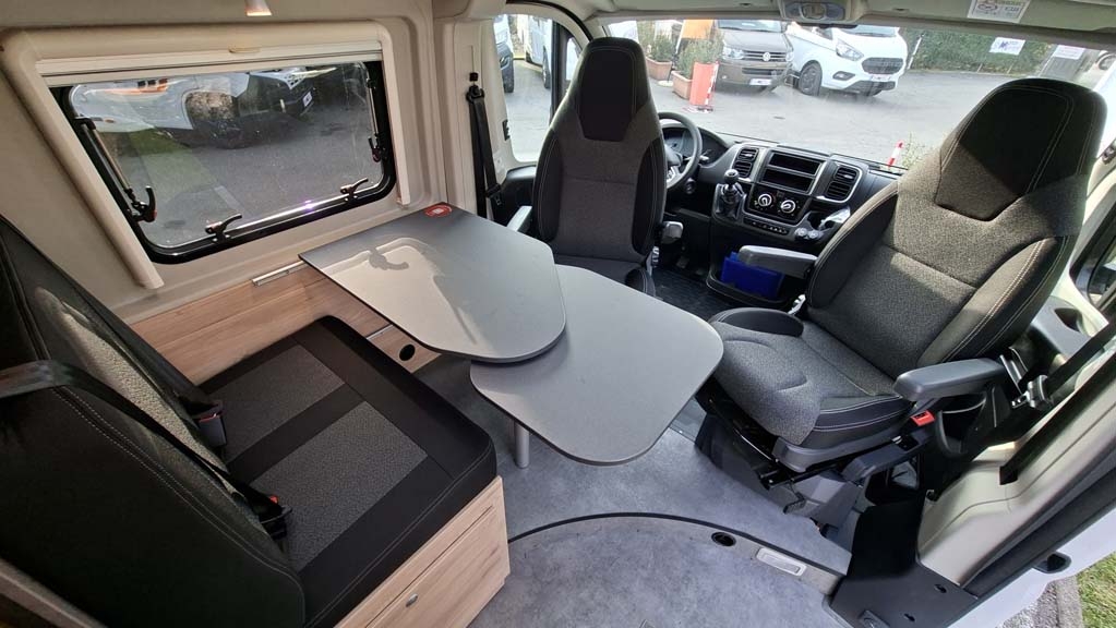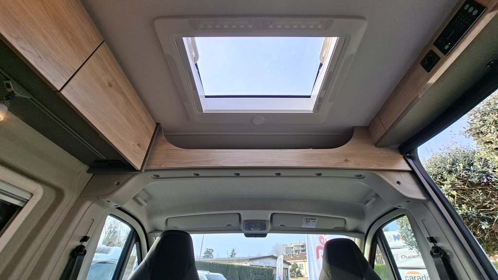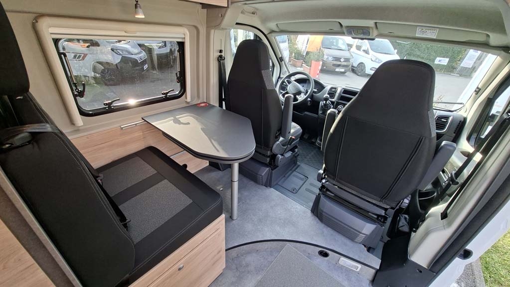 Pacchetto Active: Cerchi in lega da 16", Volante e pomello cambi in pelle, Oscuranti plissettati in cabina, Porta con zanzariera, Gradino di ingresso elettrico, Oblò Midi-Heki 70 x 50 cm sulla dinette, Piastra girevole per prolunga tavolo, Precablaggio per retrocamera, Predisposizione impianto solare, Predisposizione TV 12V e presa TV con collegamento SAT, Tubo luminoso a LED in cucina, Presa 230 V nel pensile della parte anteriore a sinistra (zona dinette), Presa da 12 V nella zona posteriore, in basso a sinistra, Presa doppia USB aggiuntiva nella parte anteriore a sinistra