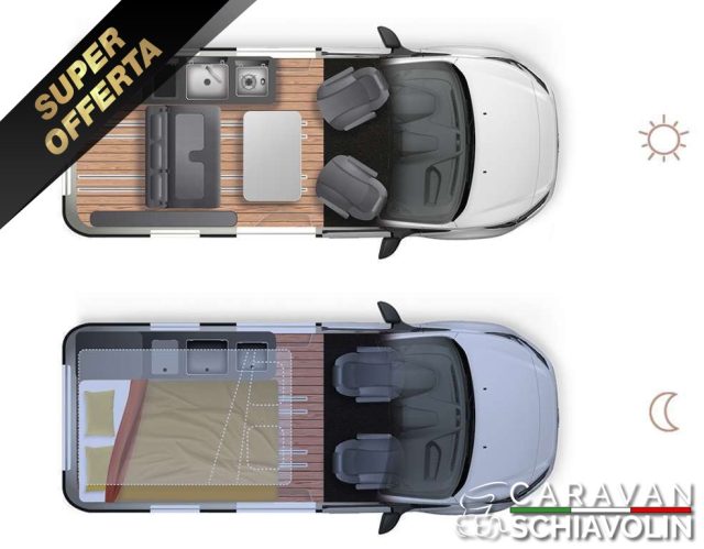 ORA IN OFFERTA! PREZZO TOTALE DEL VEICOLO CON GLI ACCESSORI EXTRA INDICATI SCONTATO A SOLI ? 63.600,00 ANZICHE', ? 71.610,00.136 cv e Cambio Automatico ? 2.140,00PACK READY ? 2.500,00 ( Cerchi alluminio 17?? Grigio Carbone, Doccetta esterna con acqua fredda, Riscaldamento a carburante EBERSPÄCHER 2200 W, Vetri posteriori e portellone oscurati e semiapribili)Carrozzeria colorazione Blue Metallic ? 2.340,00Centro navigazione ? 1.120,00Tapezzeria DAKOTA ? 910,00PUNTI DI FORZA = 4 posti letto per adulti + Doppio accesso interno con doppia porta scorrevole + Frigorifero portatile a compressione + Blocco cucina funzionale e accessibile sia dall',interno che dall',esterno del veicolo, Divanetto tre posti scorrevole su binari con sistema di fissaggio Isofix, Telecamera di retromarcia con monitor di controllo integrato al cruscotto Camper Van Dreamer rinnova il concetto di monovolume per il tempo libero con la gamma CITY e il nuovo modello CITY CAMP. Perfetto per la famiglia e la vita quotidiana, offre un comodo sedile a panca o, in opzione, sedili indipendenti per aumentare i posti a sedere fino a 6. Ideale per chi ha uno stile di vita attivo grazie alla grande capacità, di carico, è, anche il compagno perfetto per viaggiatori e avventurieri. Con 4 posti letto per adulti, cucina compatta con lavello, fornello a gas, frigorifero a compressione portatile e riscaldamento a gasolio, il CITY CAMP è, pronto per ogni avventura.PRONTA CONSEGNA ,.