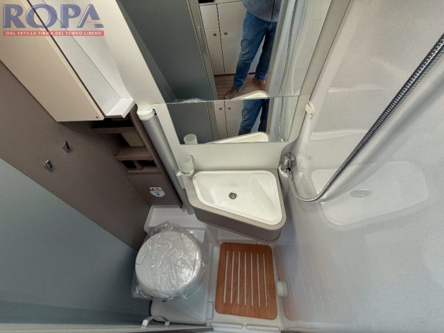 Finestra in Bagno, Luce Esterna, Estensione Girevole del Tavolo in Dinette, Zanzariera Portellone Laterale, Gradino Elettrico, Oscuranti Plissettati in Cabina, Pedana Doccia in Legno