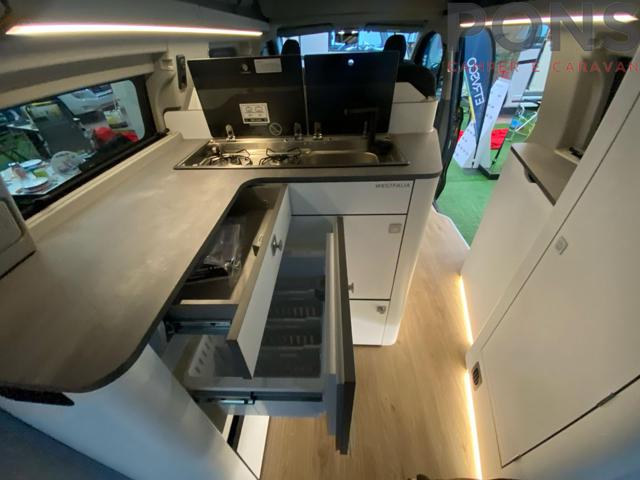 Omologato 5 posti, al suo interno troviamo una confortevole cucina ad angolo, numerosi armadi e spazi di stivaggio che caratterizzano l'intero veicolo.