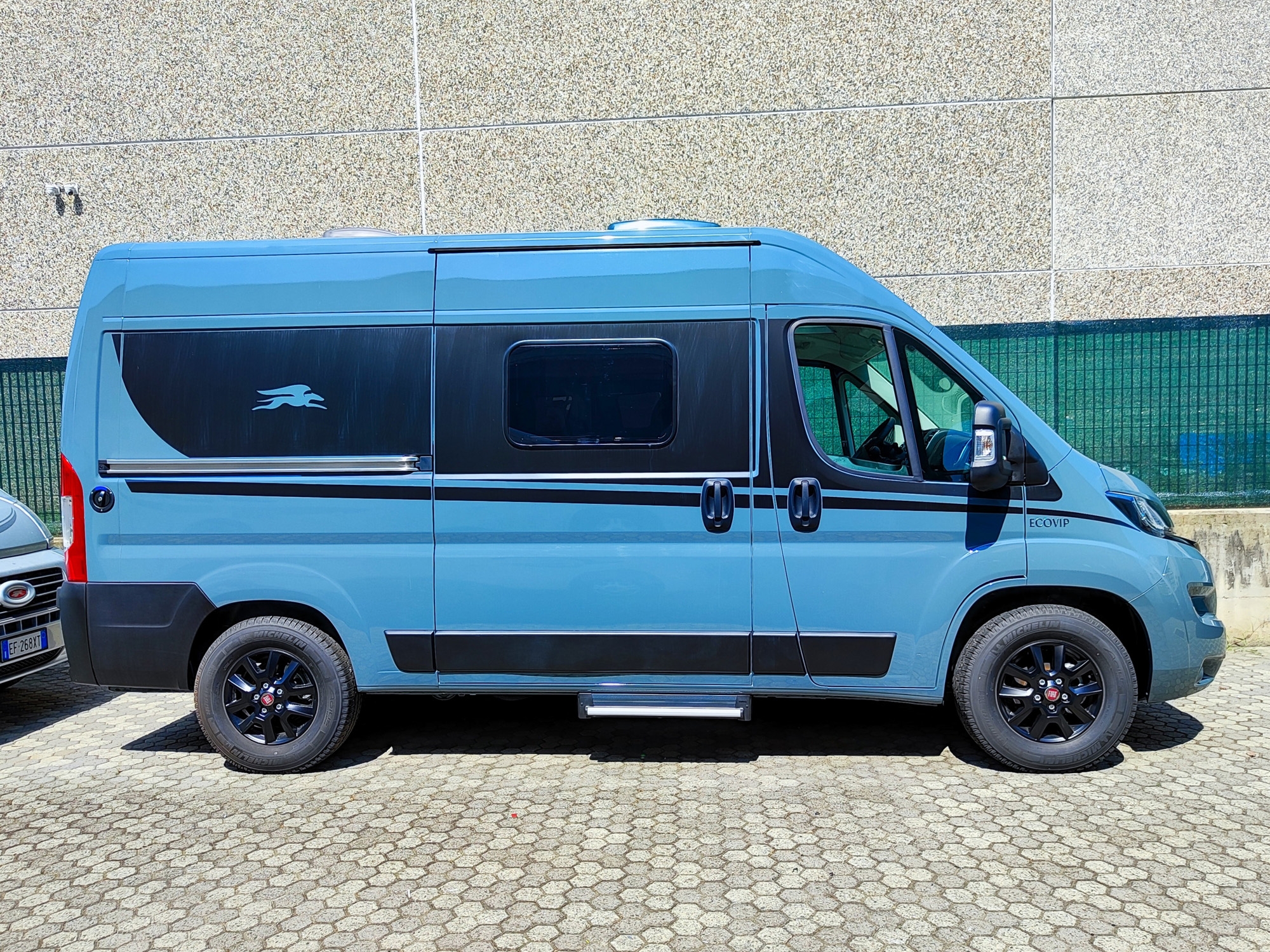 Pacchetto Chassis, Cerchi in lega da 16" nero matt, Pacchetto Chassis Design, Verniciatira esterna "Lanzarote Grey", compreso paraurti, Pacchetto Comfort Ecovip CV, Scalino d'ingresso elettrico cellula, Tappezzeria Firenze in Ecopelle, Messa su strada.