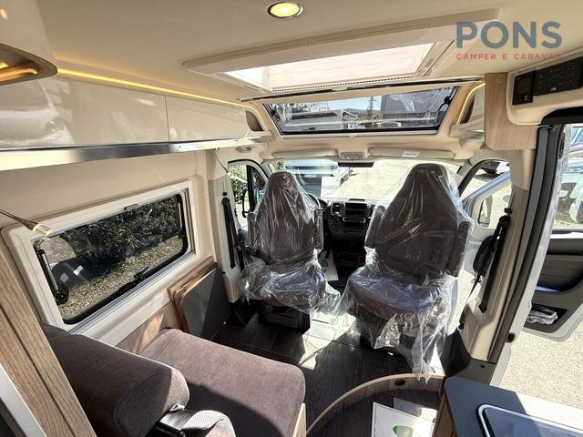 Cambio automatico, Cerchi in lega 16, Verniciatura esterna Expedition grey, Paraurti anteriore in tinta, Fari Full Led originali Fiat, Freno di stazionamento elettrico, Clima cabina automatico, Oscuranti interni plissettati in cabina, Riscaldamento Combi 6 gas+elettrico, Frigorifero a compressore 138 lt, Skyview, Scalino ingresso elettrico, Veranda, Tappezzeria tessuto Parma, Cuscini Liguria, Mobilio Pero Toscano, Pacchetto chassis, Pacchetto chassis design, Pacchetto sicurezza, Pacchetto comfort