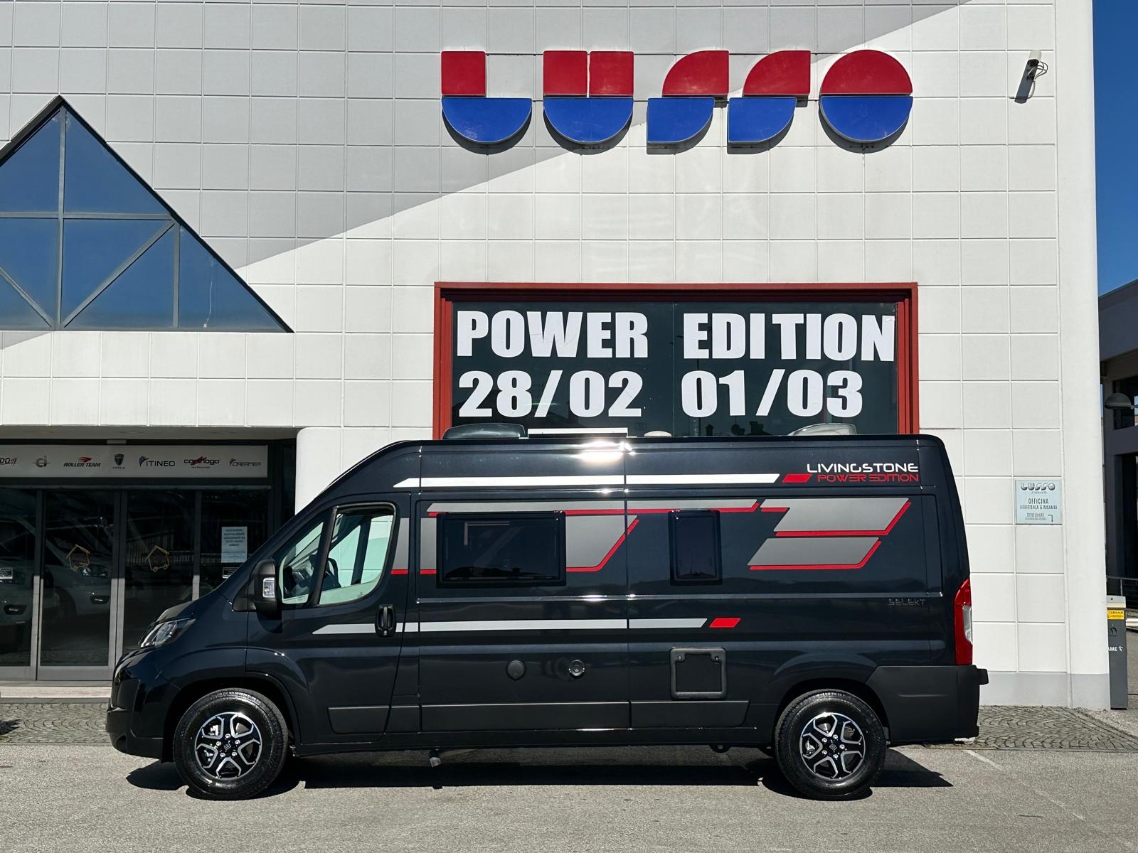 Super Novità Primavera 2026 POWER EDITION con grafiche dedicate, Motorizzazione Fiat Ducato 2.2 mj 140 cv Cambio Automatico, Vernice Nero Metallizzata, Pack Light, Pack Prestige, Pack Comfort, Pack Style, Pack Travel, Batteria al Litio 100 AH, Frigo compressore 84 litri, Serbatoio h20 chiara 90 litri, Serbatoio h20 grigia 90 litri e molto altro