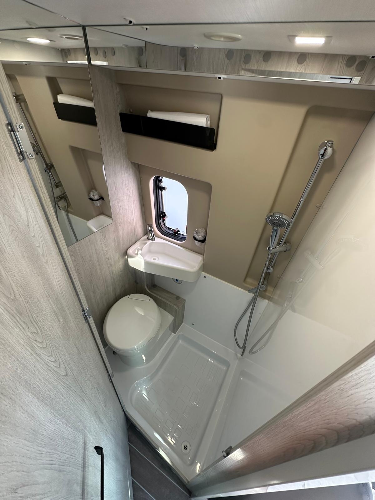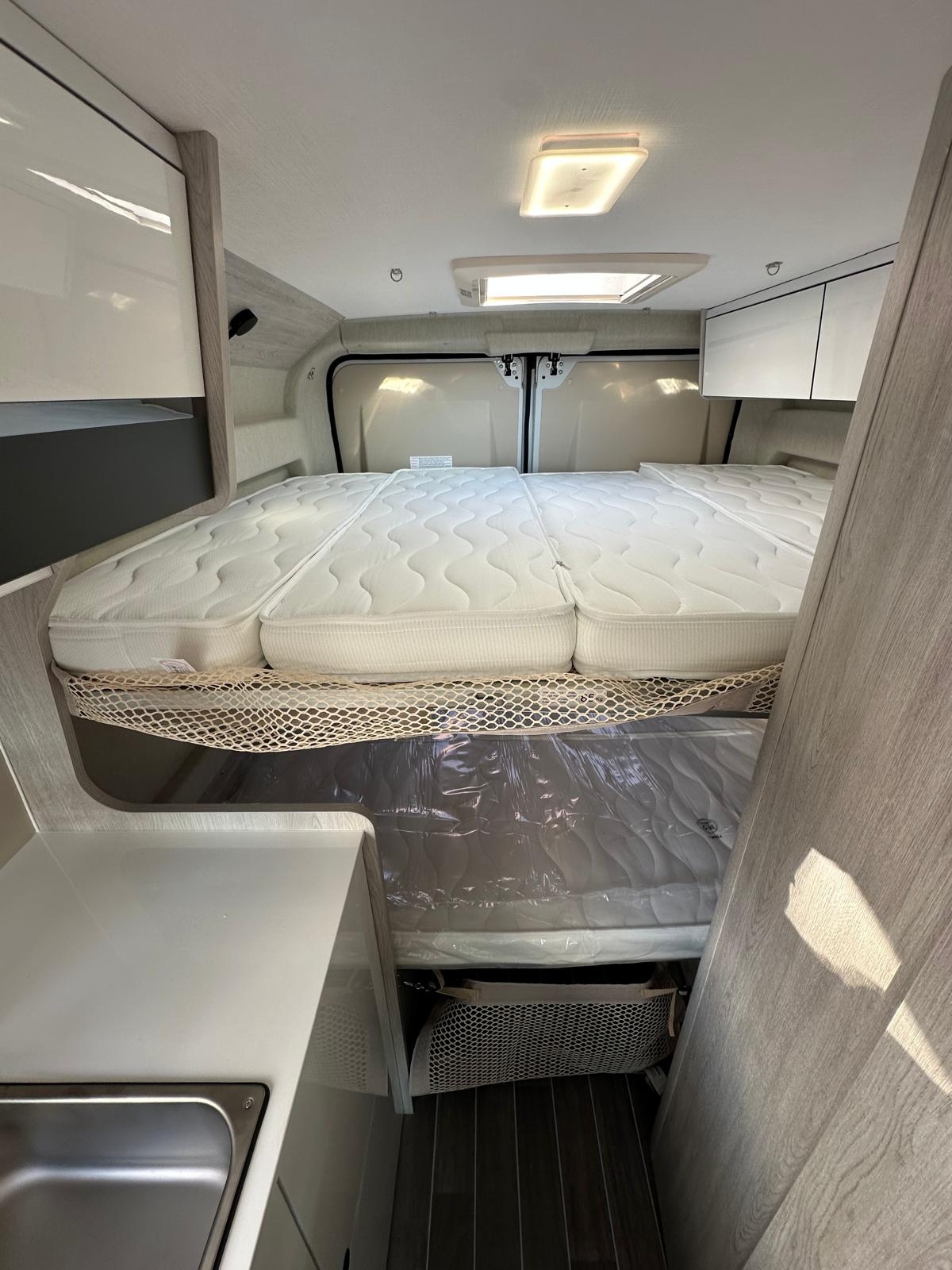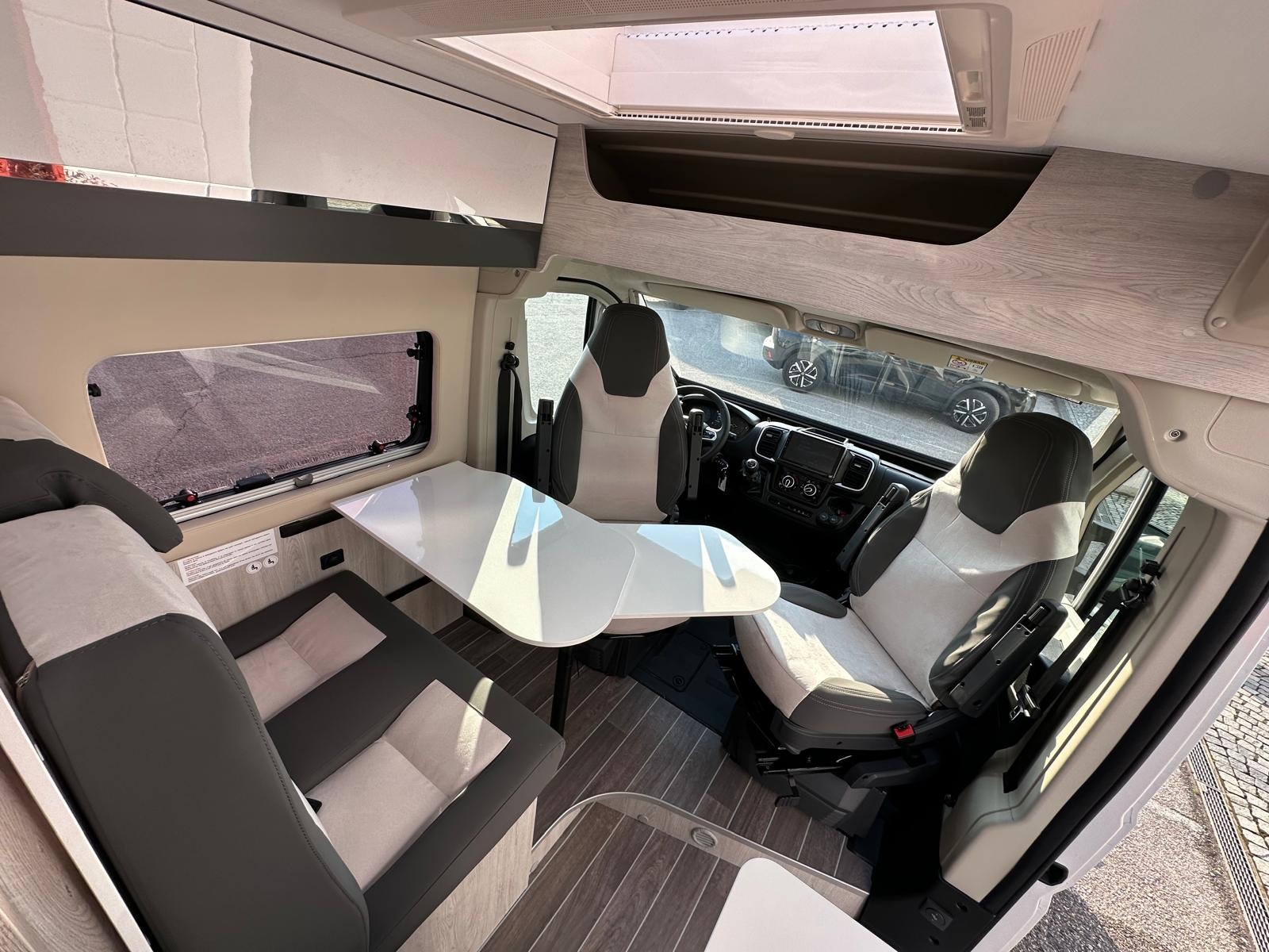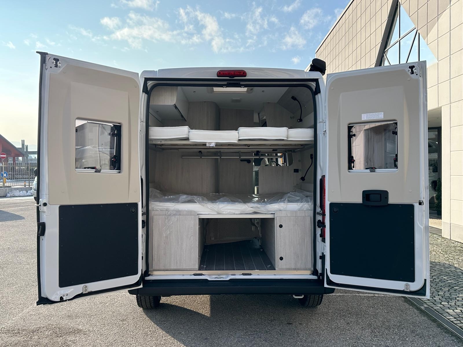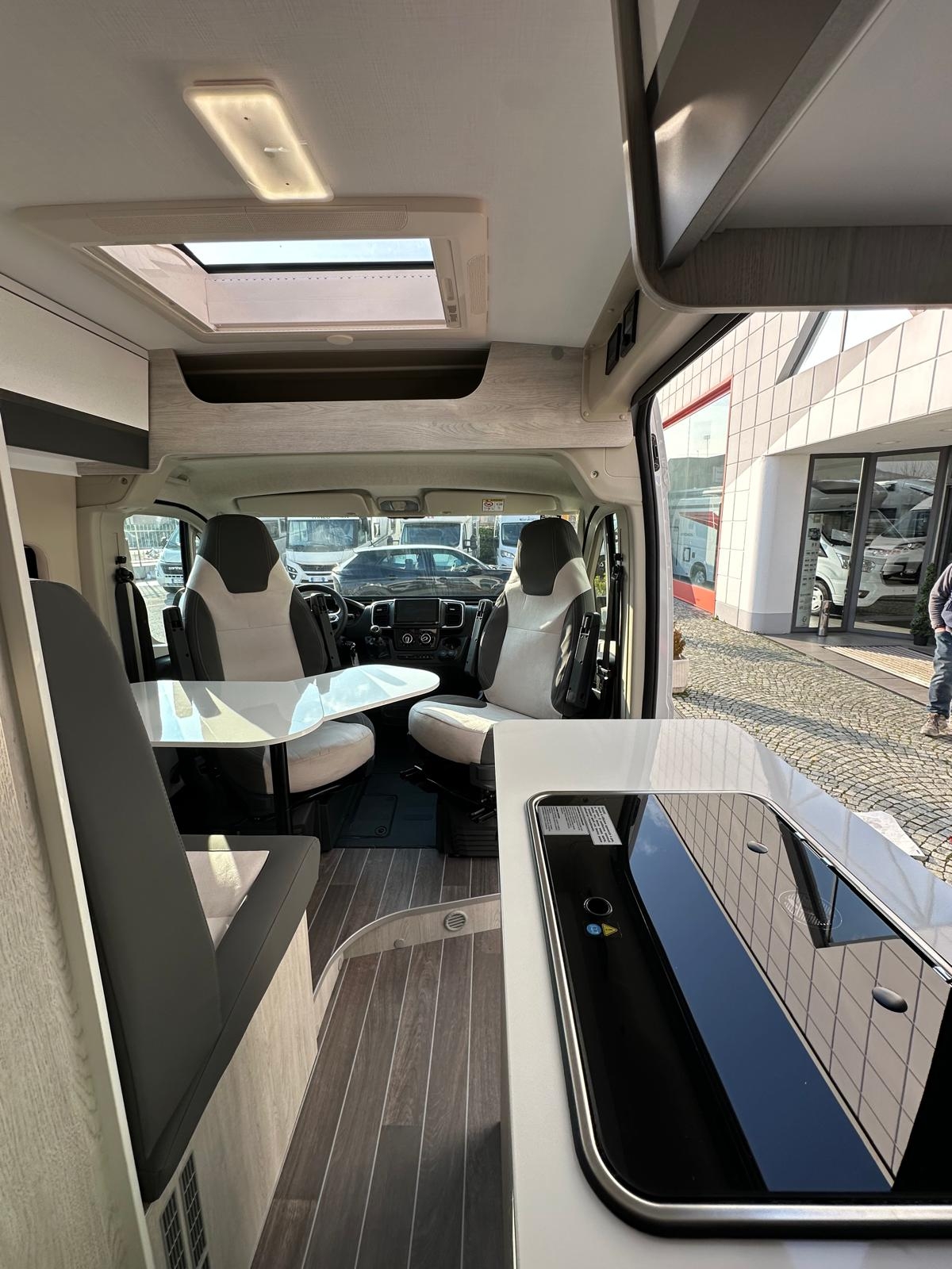 Clima cabina, Cruise control, Cerchi in lega 16', Radio App Car Play + Retrocamera, Frigo compressore 84 litri, Serbatoio H20 chiare 90 litri, Serbatoio h20 grigie 90 litri, Riscaldamento Truma Combi 4 Diesel, Zanzariera portellone, gradino elettrico, Pack Light, Pack Comfort, Pack Style, Pack Travel, Pack Prestige con Veranda e Pannello Fotovoltaico, Doppio letto matrimoniale in coda scomponibile e molto altro
