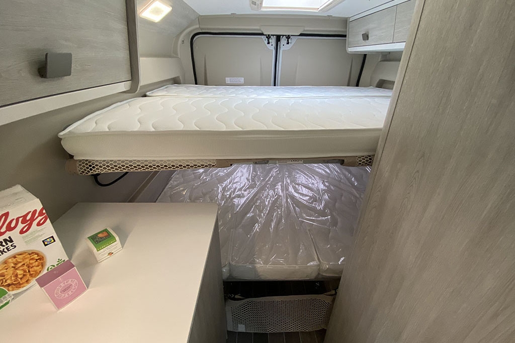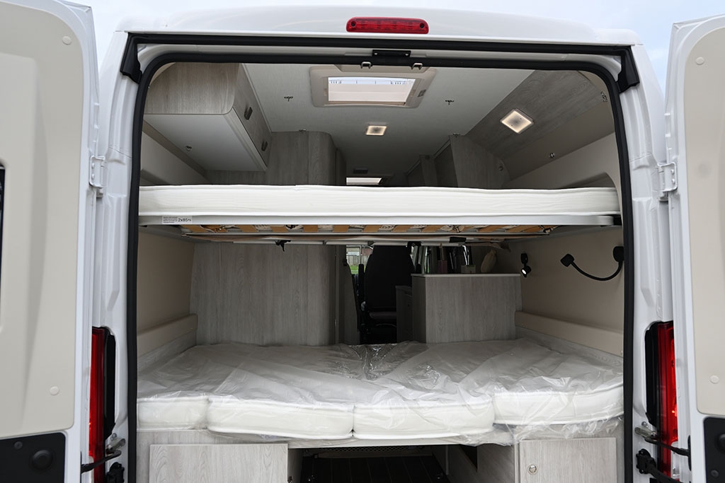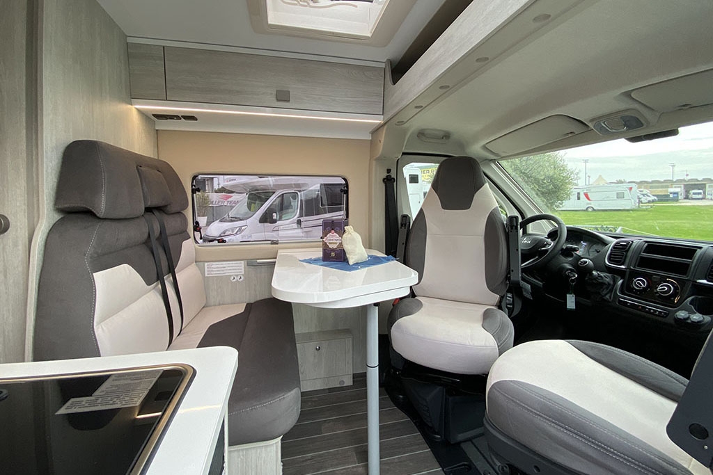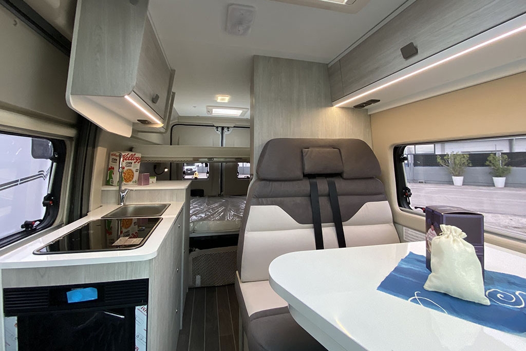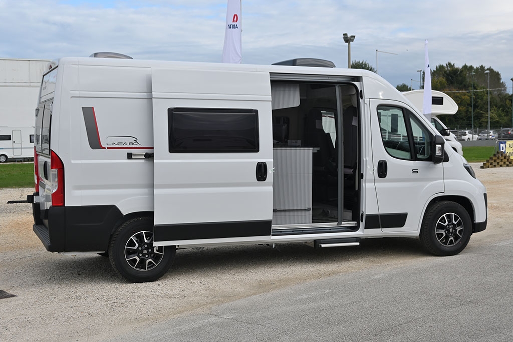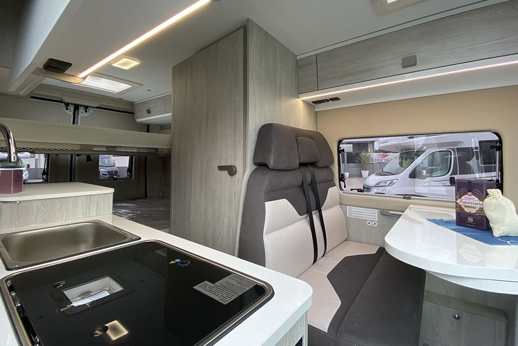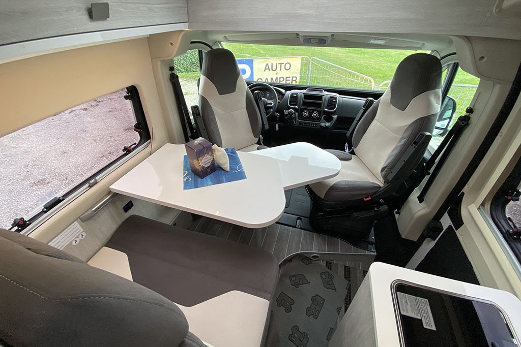 Motorizzazione Fiat Ducato 2.2 MJ 140 CV, Pacchetto Comfort (Zanzariera su portellone laterale, gradino esterno elettrico, oscuranti plissettati in cabina, oblò panoramico Midi-Heki, fodere sedili cabina in coordinato con tappezzeria), Pacchetto Two Color (Cerchi in lega da 16, volante e pomello del cambio rivestiti in pelle, cruscotto in design Techno Trim), Pacchetto Painted Bumper (Paraurti anteriore verniciato in tinta con la carrozzeria, piastra paramotore color nero, fendinebbia). Prezzo totale del veicolo in pronta consegna inclusi optional e spese di trasporto, immatricolazione e messa su strada: € 60.640,00 chiavi in mano