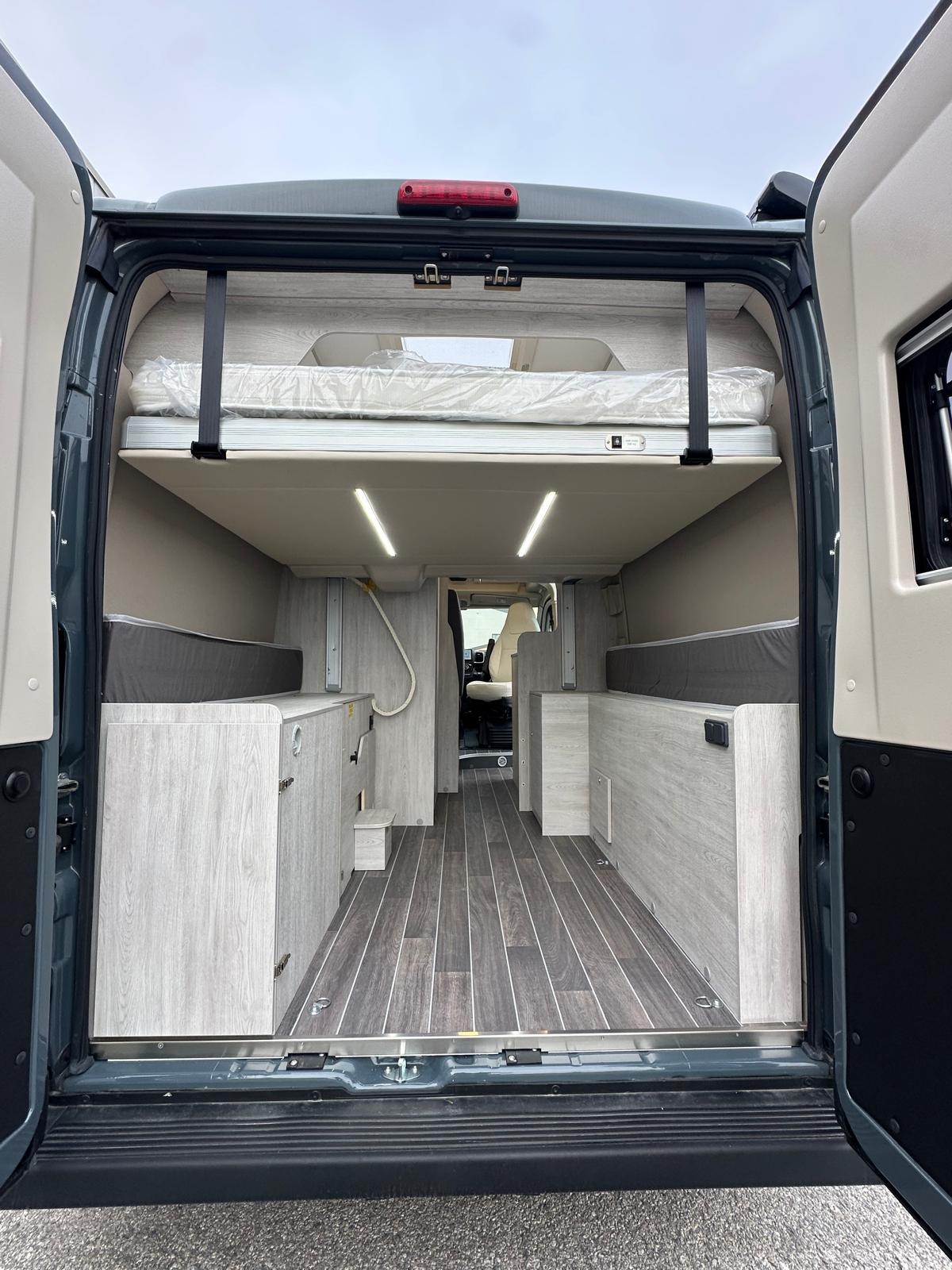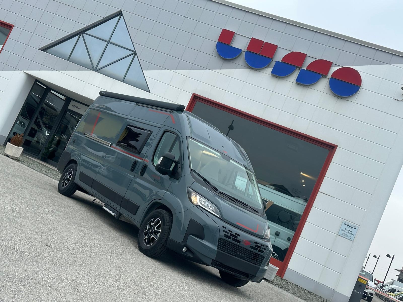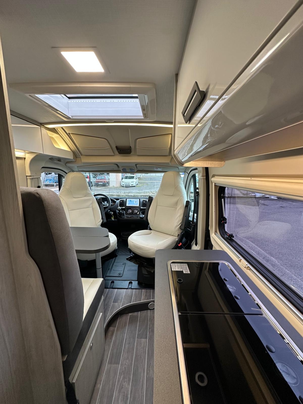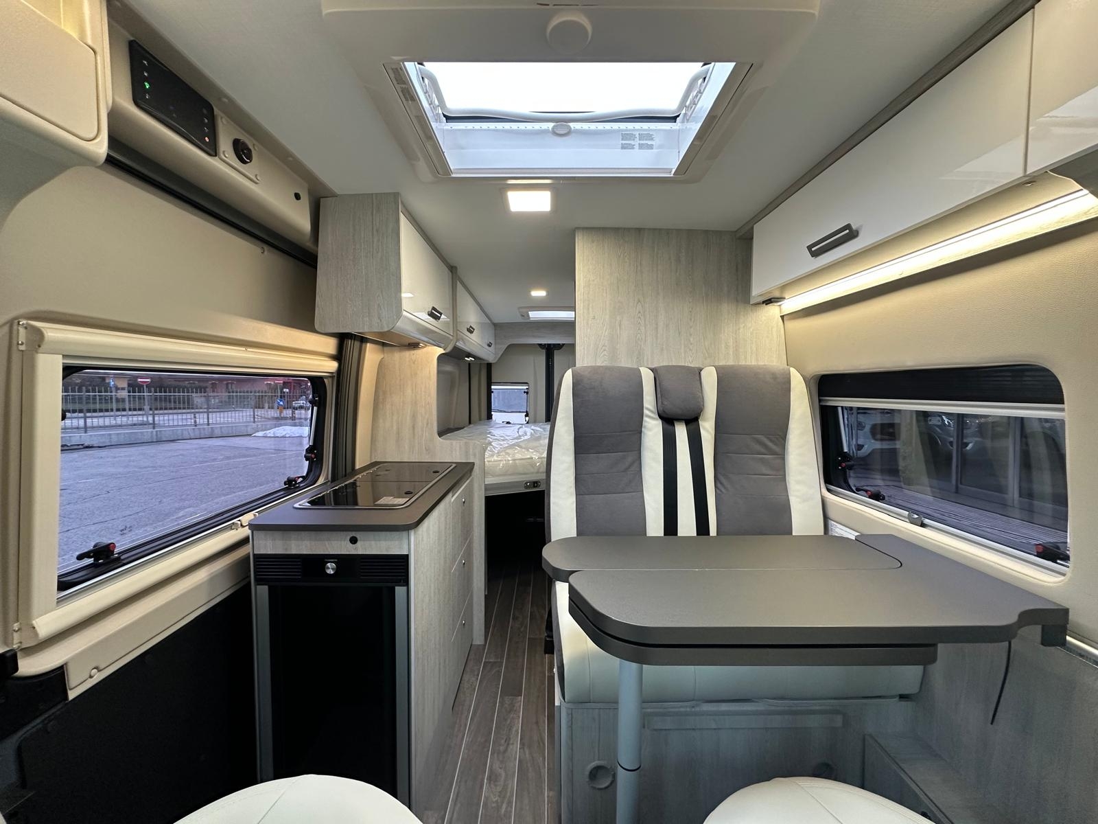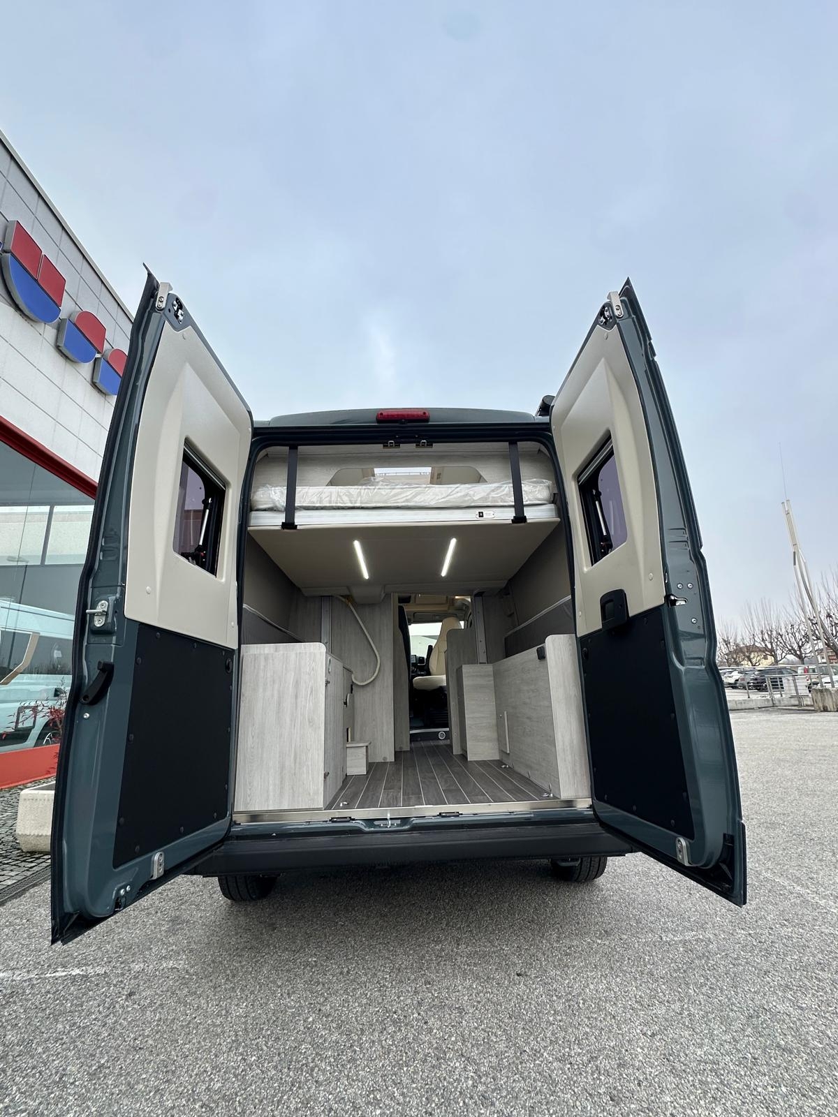 Fiat Ducato 2.2 mj 140 cv, Clima cabina, Cruise control, Cerchi in lega 16', Colorazione esterna Lanzarote Grey, Radio App Car Play + Retrocamera, Frigo compressore 80 litri, Serbatoio h20 chiare 100 litri, Zanzariera portellone, Scuri Remis cabina, gradino elettrico, Veranda, Pannello Fotovoltaico e molto altro