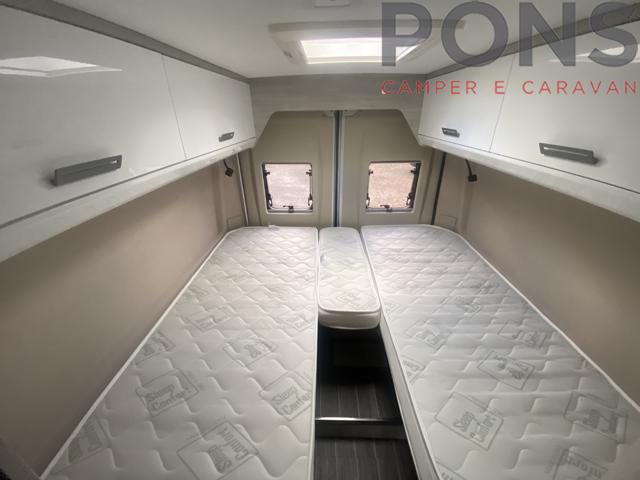 nella sua lunghezza di 6,36 mt ospita due comodissimi letti gemelli in coda con possibilità di trasformazione in matrimoniale.