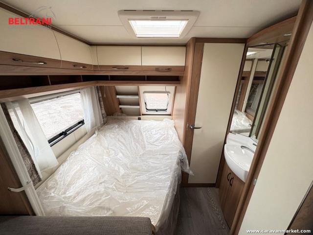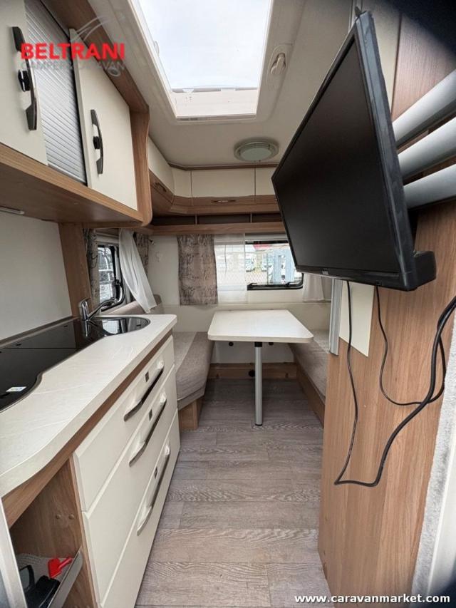 Design e comodità Questa caravan unisce eleganza tedesca a materiali di pregio: interni in legno di faggio naturale, tessuti premium resistenti e oblò, panoramici che inondano di luce gli ambienti. Il layout intelligente offre un ,letto matrimoniale francese anteriore ,spazioso e confortevole, più, un terzo posto dalla dinette convertibile &ndash, tutto in soli ,5,97 m di dimensione totale.