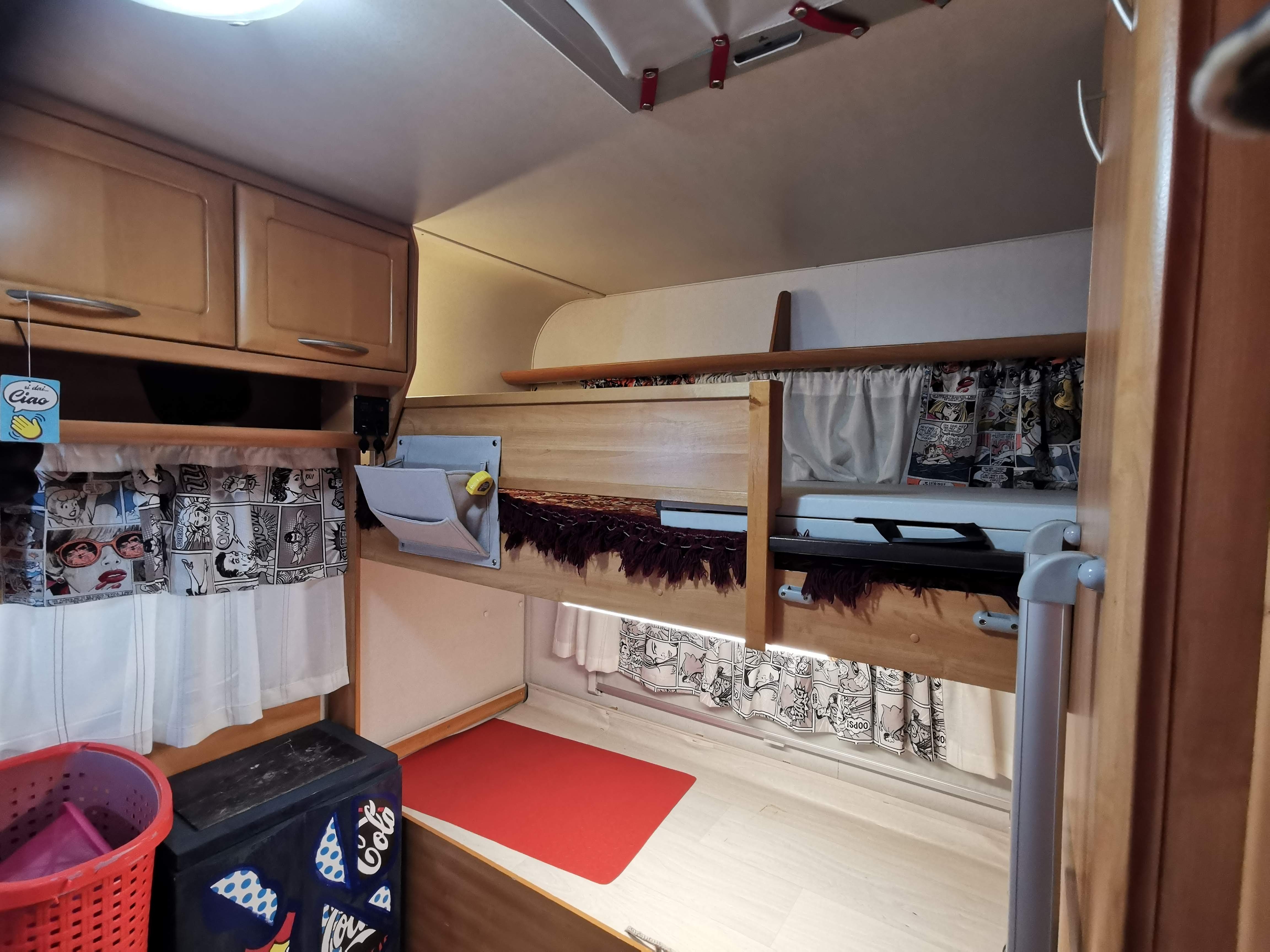 I posti letto attualmente sono 6: 1 letto matrimoniale e 2 letti a castello singoli, 2 letti nella dinette centrale. Il rimorchio è comunque omologato per 7 posti letto. La dinette nella parte posteriore è stata ristrutturata per contenere: 1 lavatrice Whirlpool TDLR 7221BS IT/N lavatrice con caricamento dall'alto di 7 kg, 1 frigorifero con freezer a compressore con capienza di 107l, 1 lavastoviglie da 6 coperti.