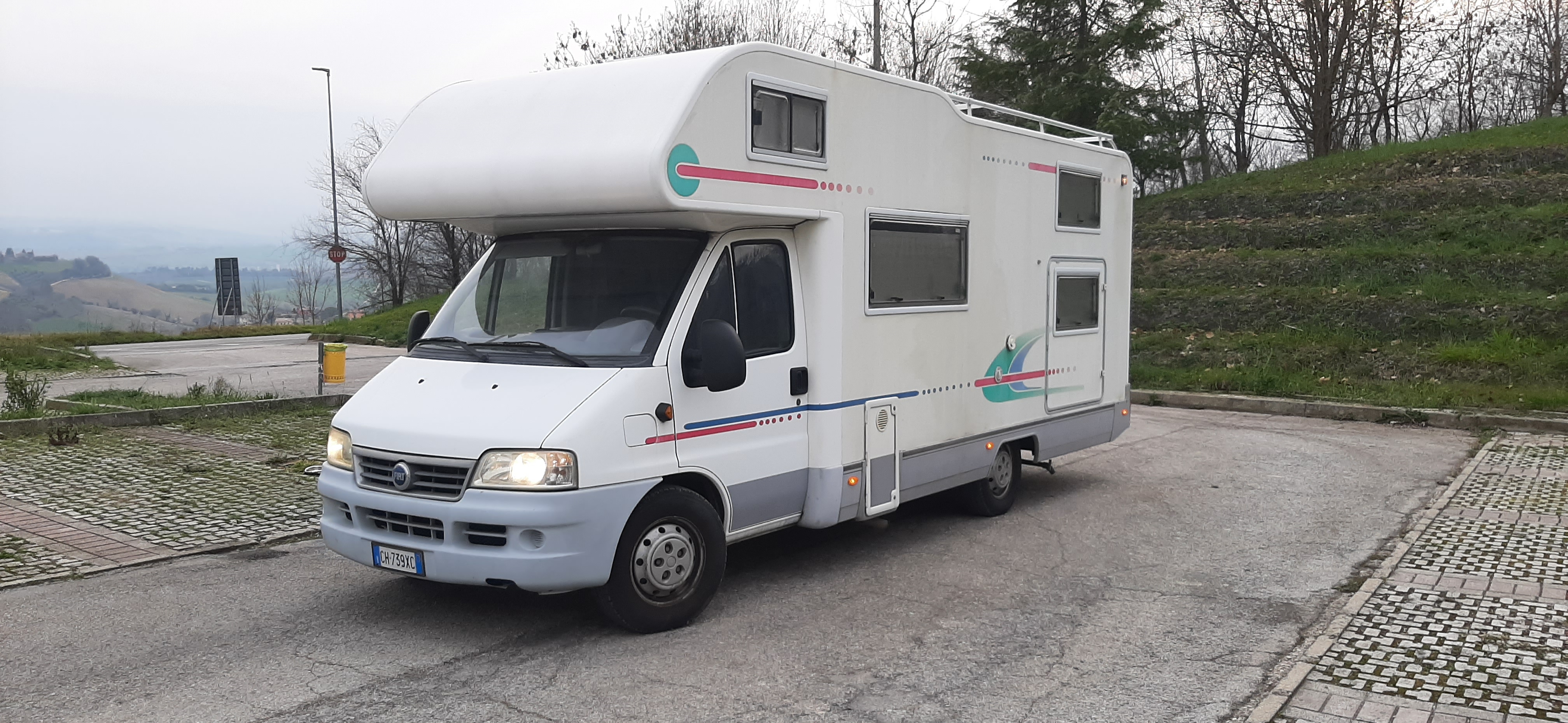 Portabici esterno, tendalino alla massima lunghezza con ombreggiante addizionale. Si tratta di un camper in condizioni eccellenti sempre curato e trattato con riguardo, meccanica con tagliandi senza mai un problema.