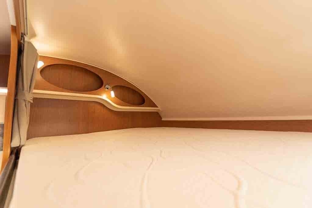 La zona notte è composta dal letto matrimoniale in mansarda, letto matrimoniale trasversale posteriore e la dinette che si trasforma in un'ulteriore zona notte per 2 persone.
